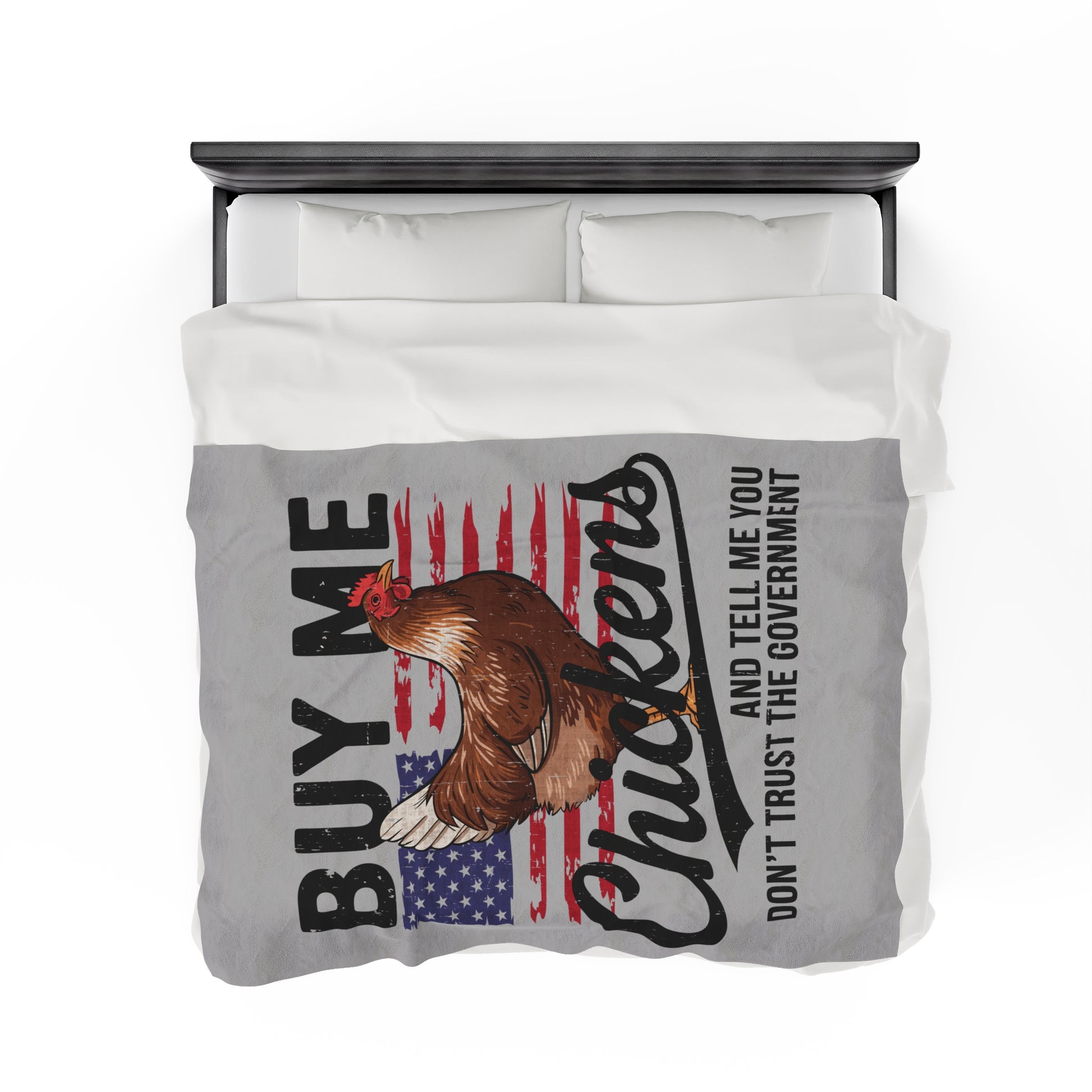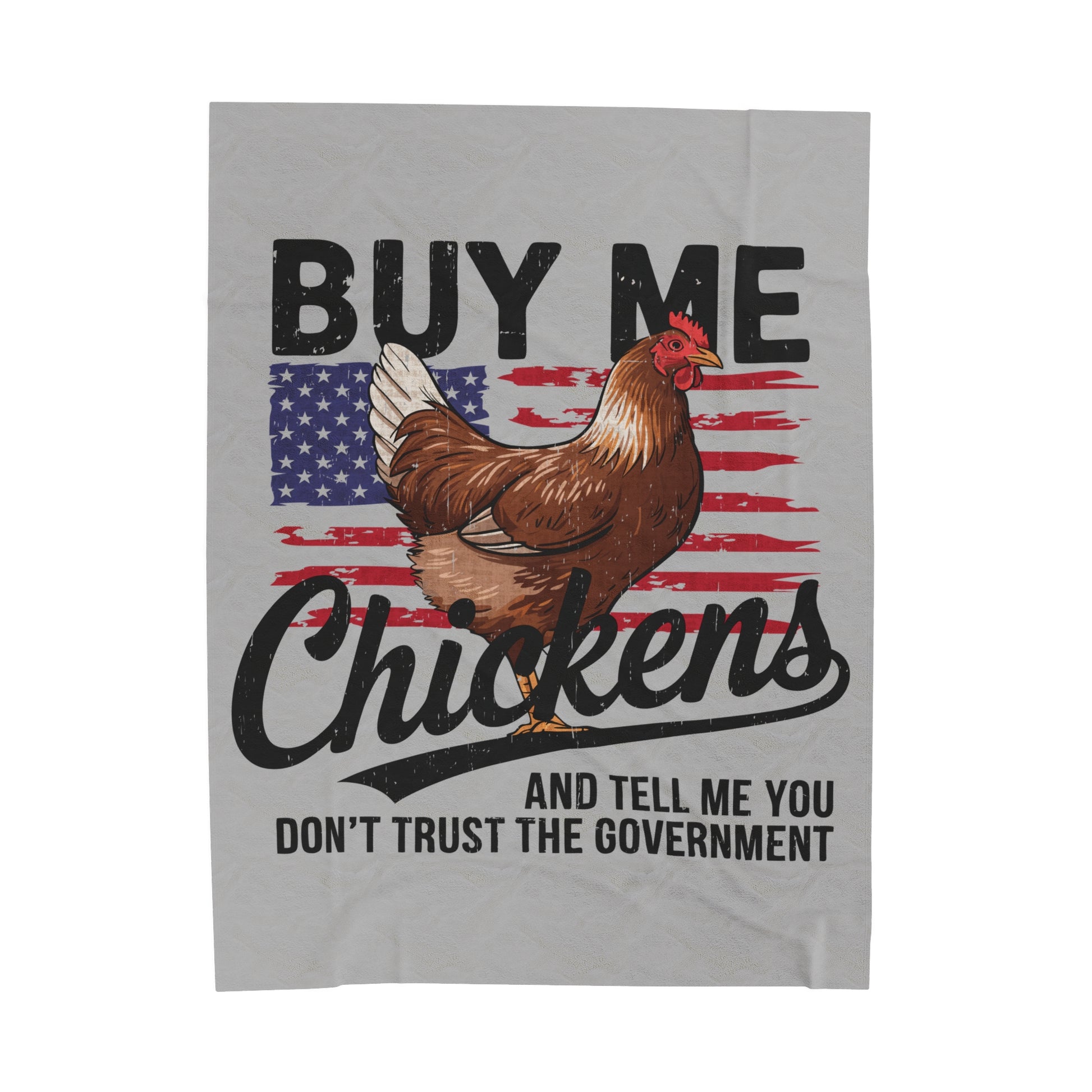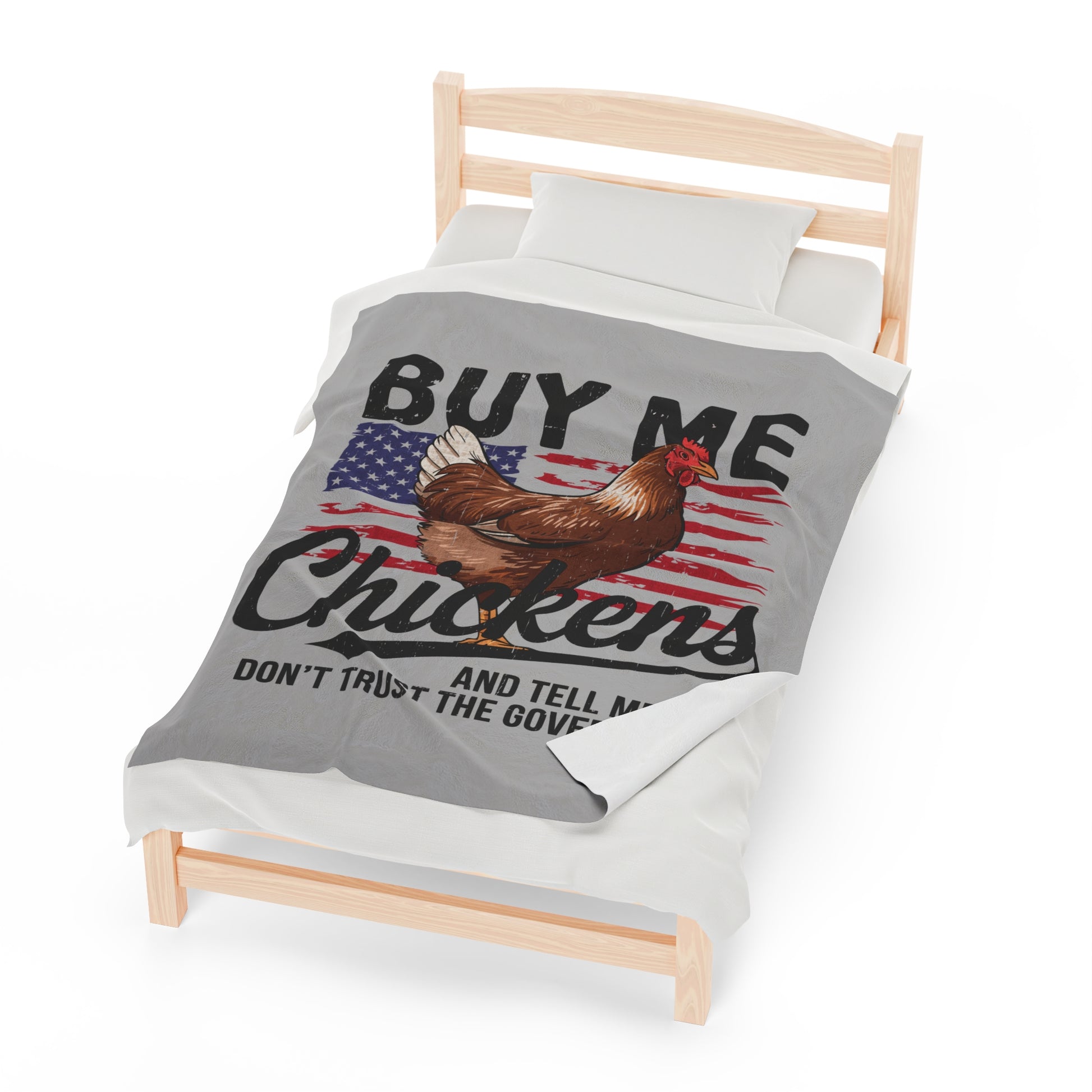 Buy Me Chickens Velveteen Plush Throw Blanket | Funny Chicken Conspiracy Cozy Blanket Homesteader Jokes Chicken Lover Gift Chicken Decor