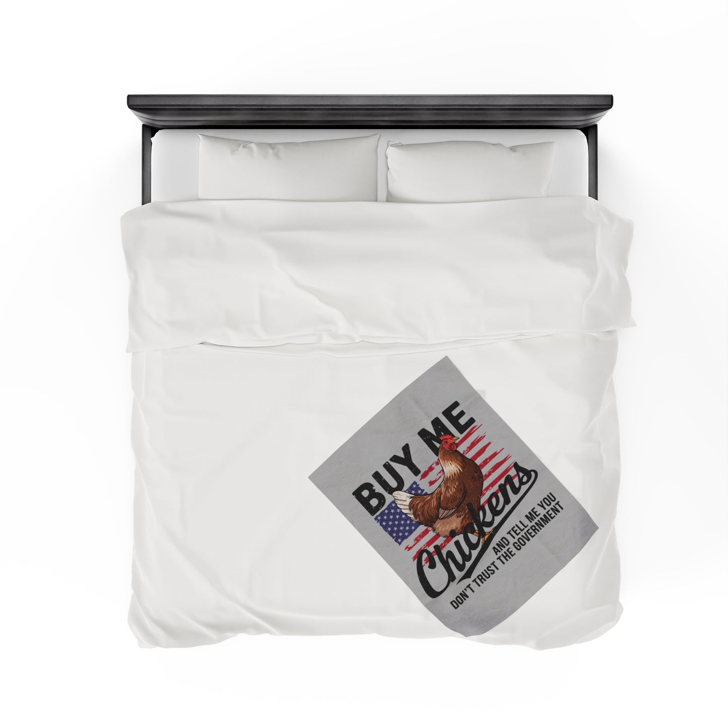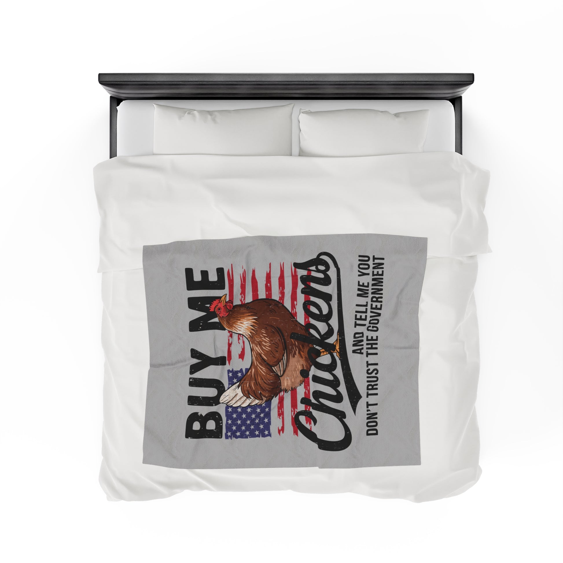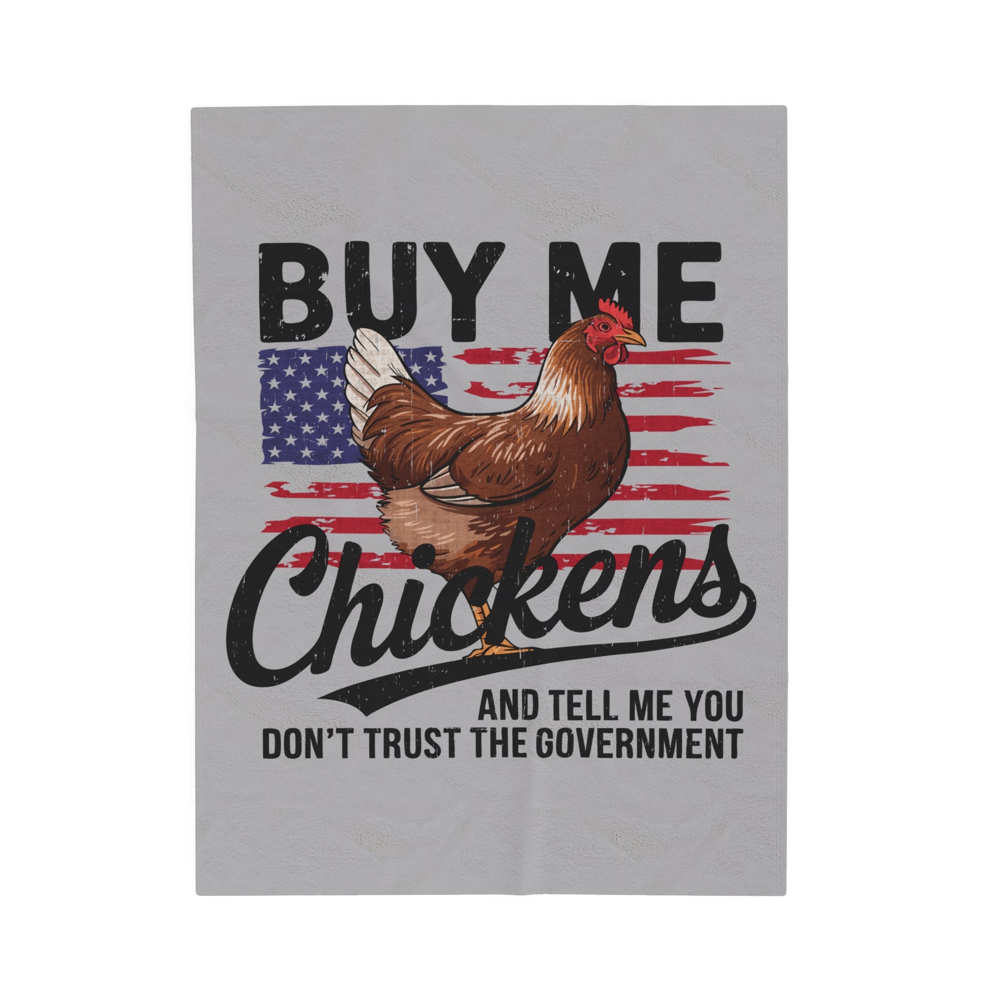 Buy Me Chickens Velveteen Plush Throw Blanket | Funny Chicken Conspiracy Cozy Blanket Homesteader Jokes Chicken Lover Gift Chicken Decor