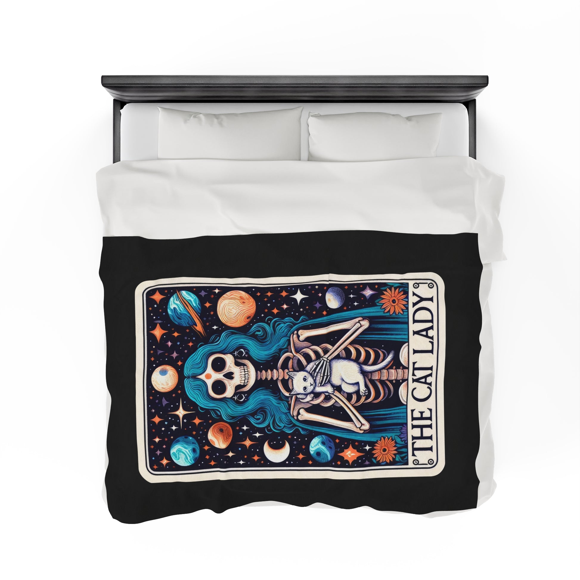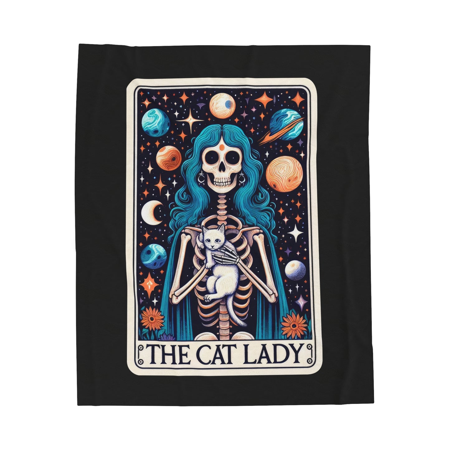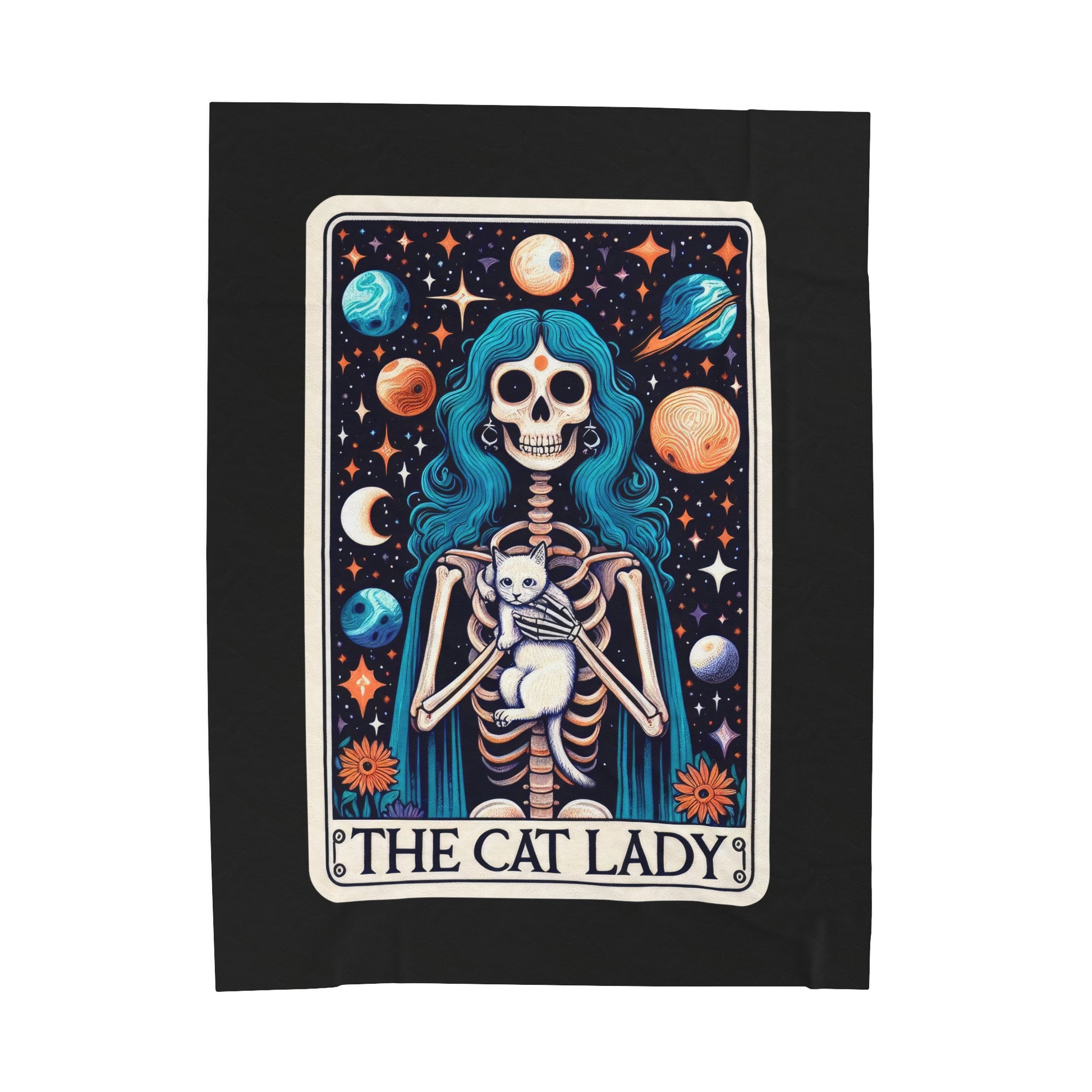 Cat Lady Tarot Card Velveteen Plush Throw Blanket | Cat Lover Gift Cute Feline Witch Cozy Blanket for Cat Enthusiasts Tarot-Inspired Decor