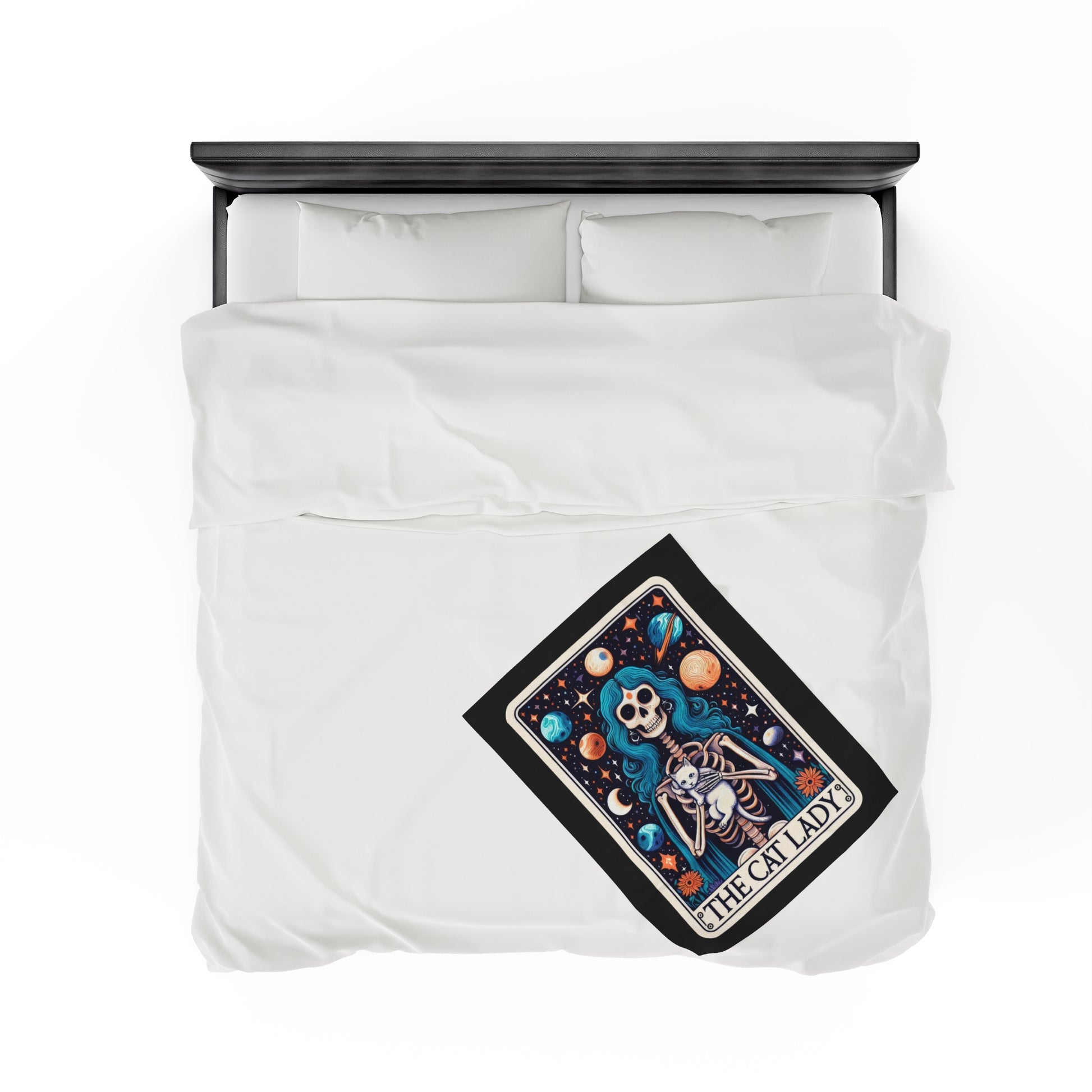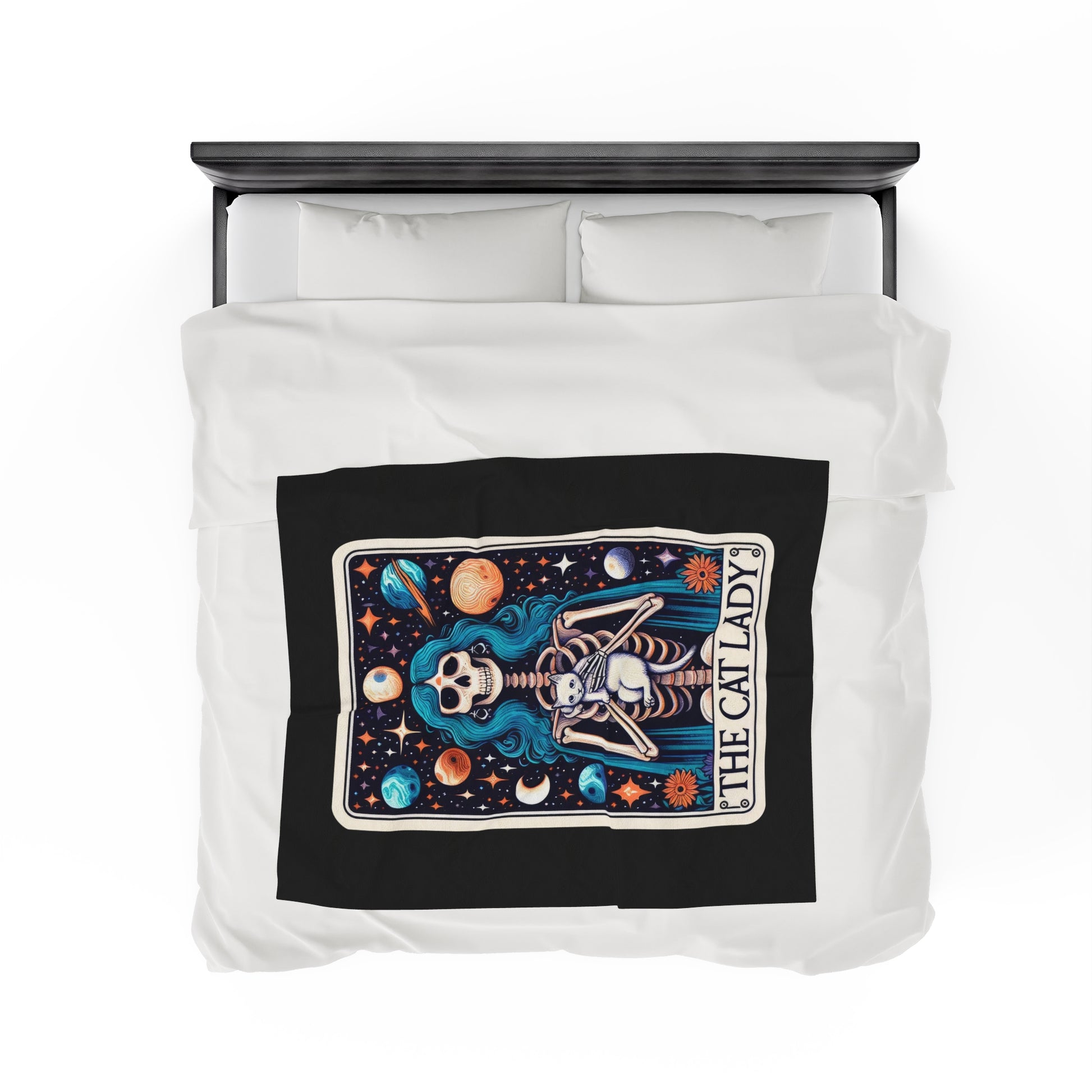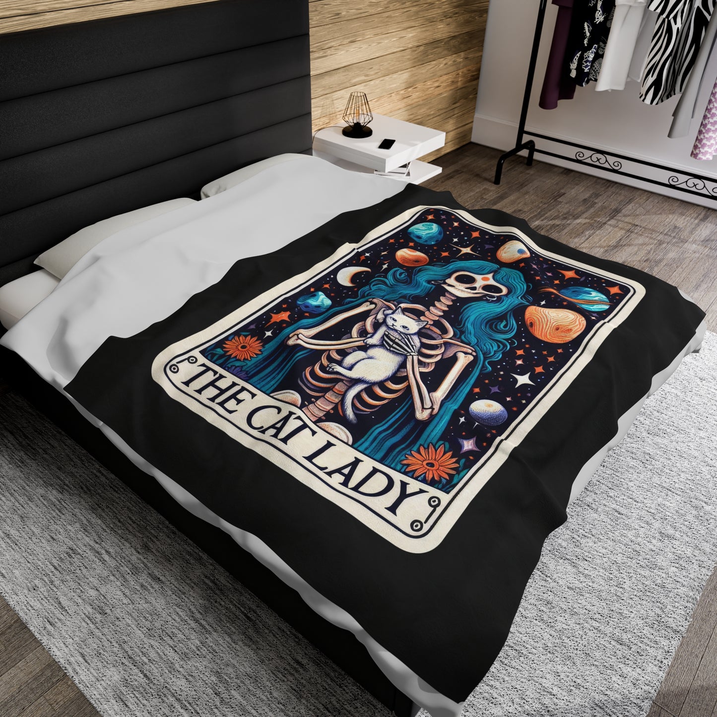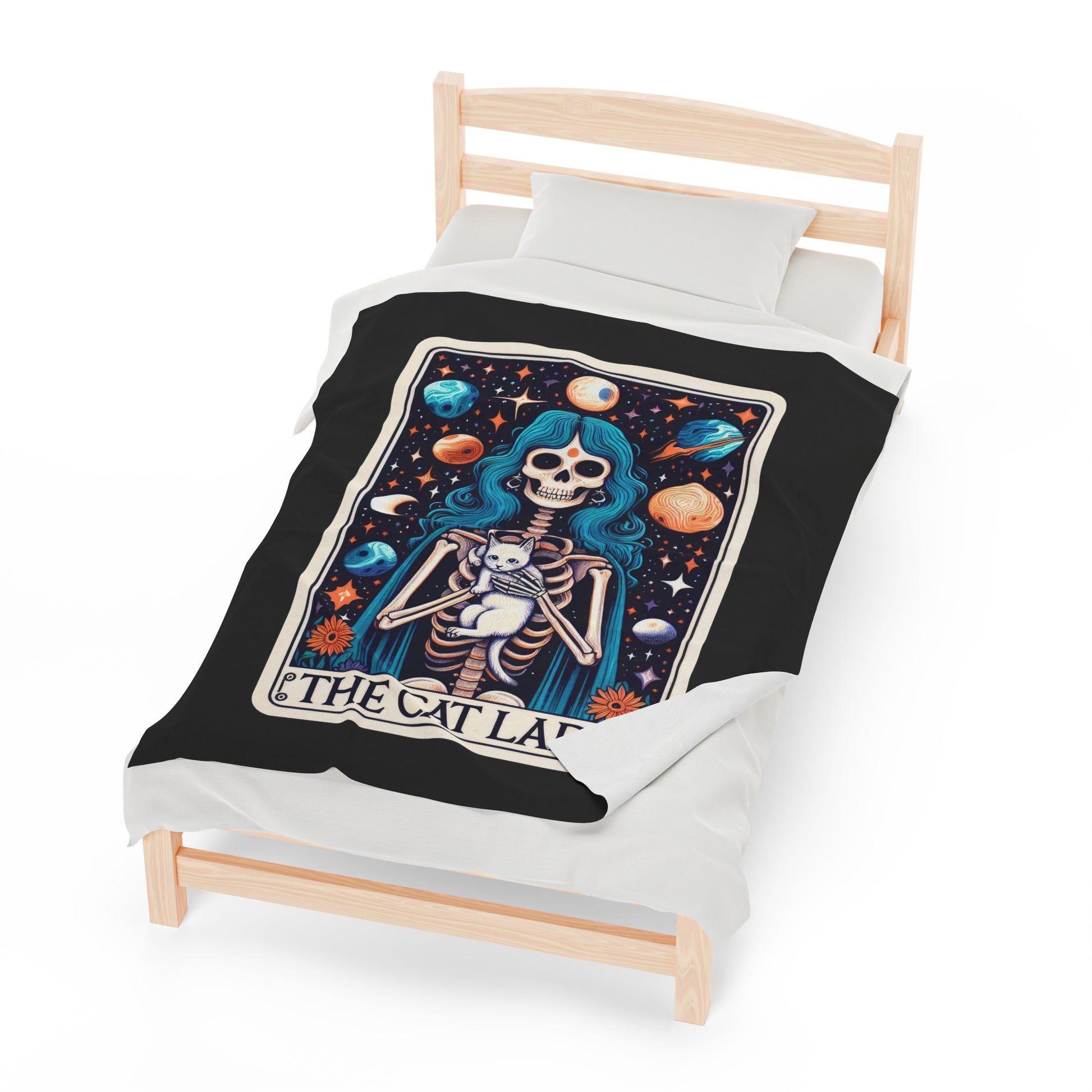 Cat Lady Tarot Card Velveteen Plush Throw Blanket | Cat Lover Gift Cute Feline Witch Cozy Blanket for Cat Enthusiasts Tarot-Inspired Decor
