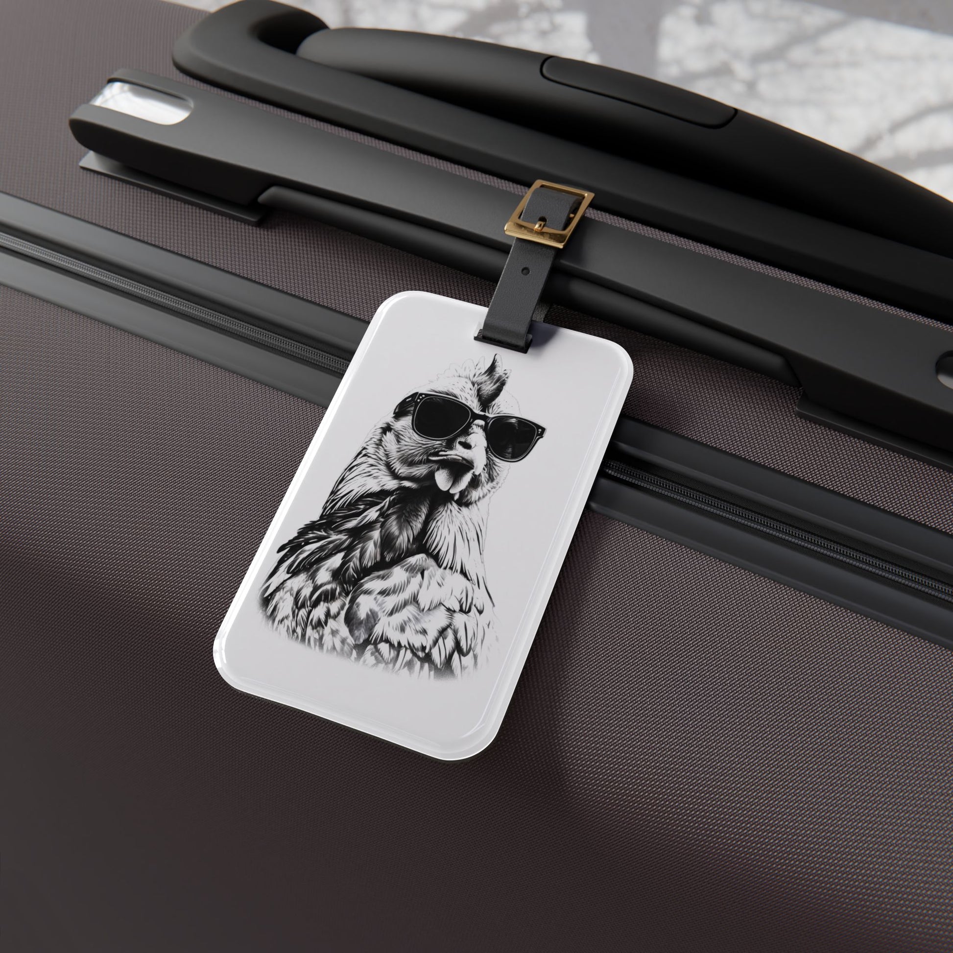 Classic Chicken with Sunglasses Luggage Tag - Black and White Drawn Style - Perfect Travel Accessory for Chicken Lovers & Funny Gift