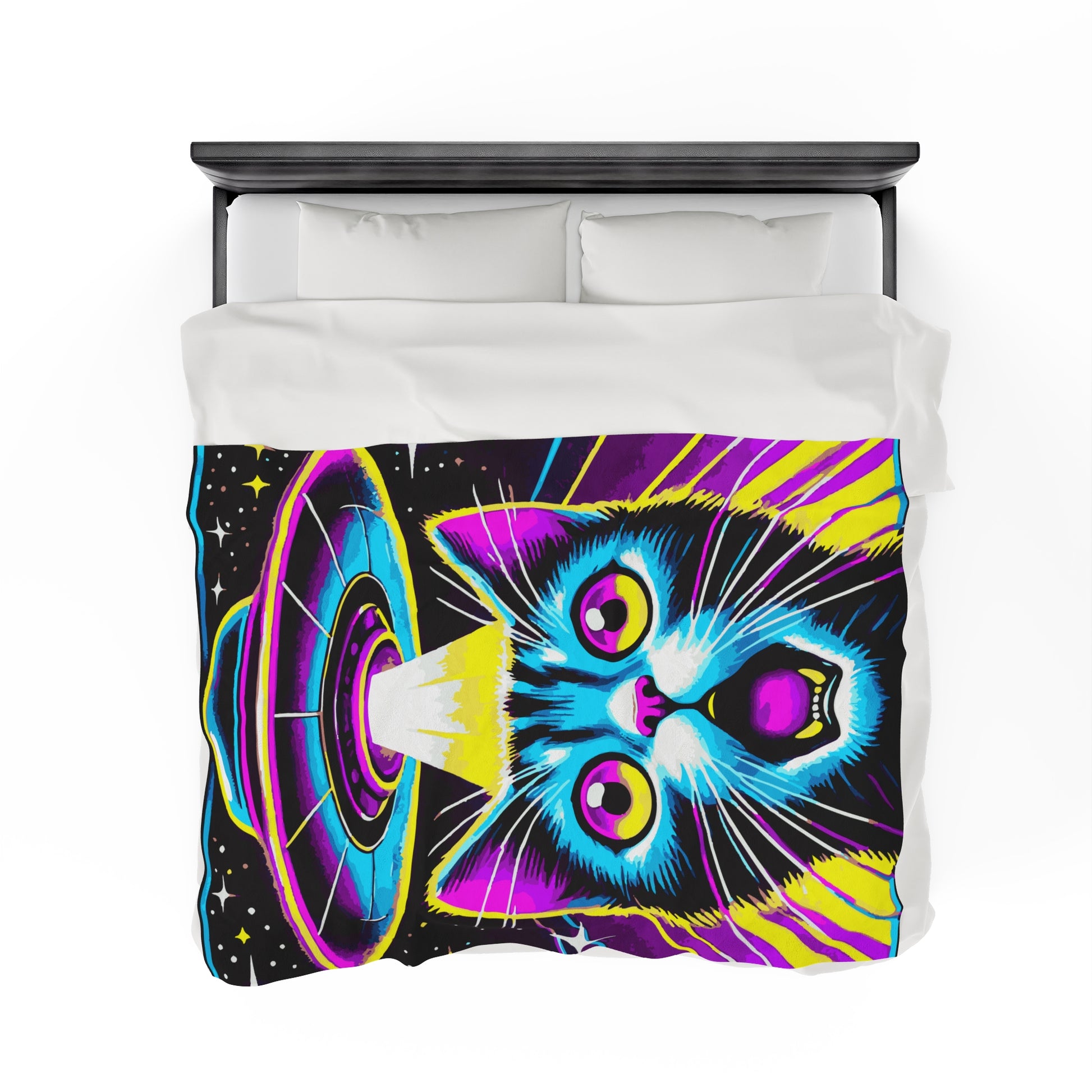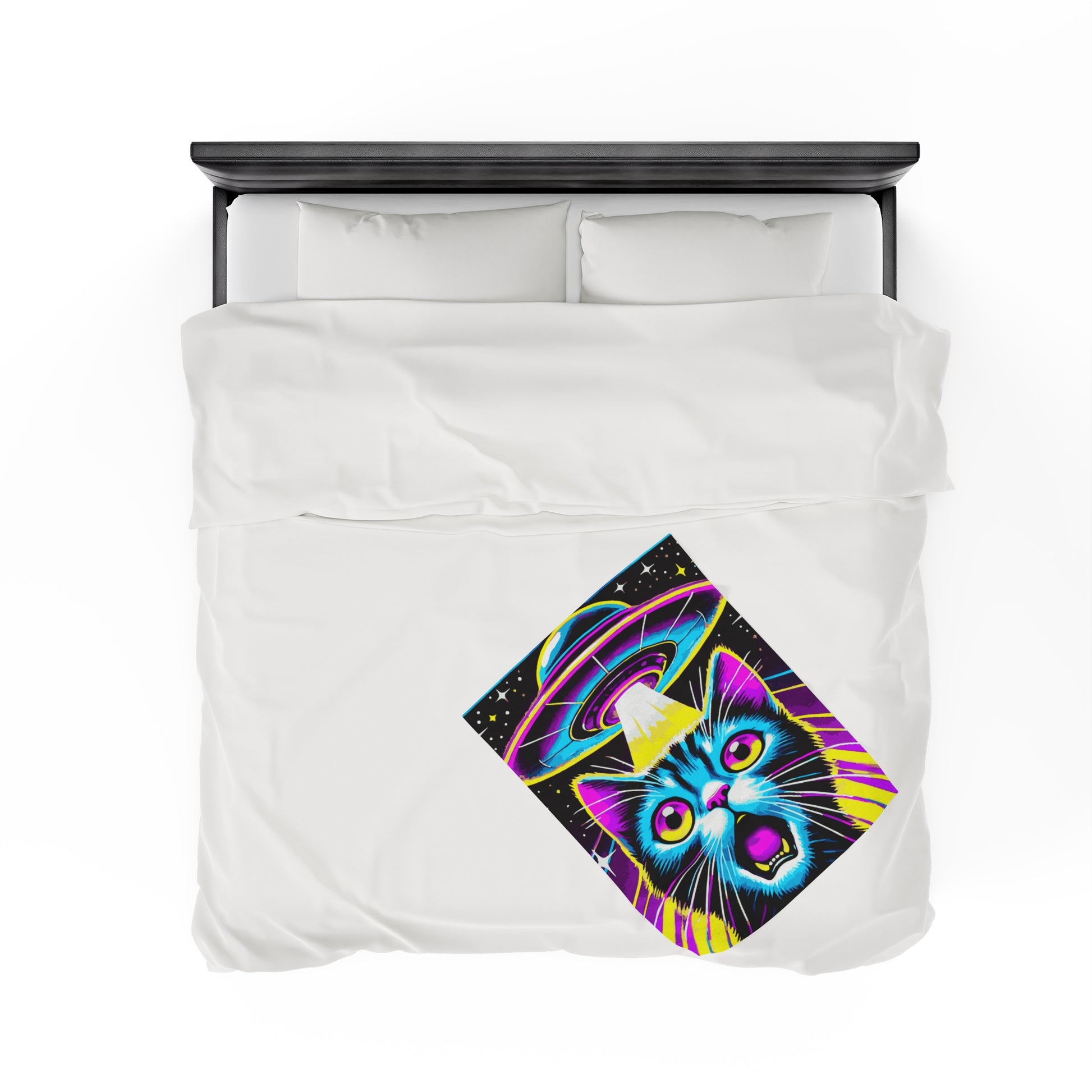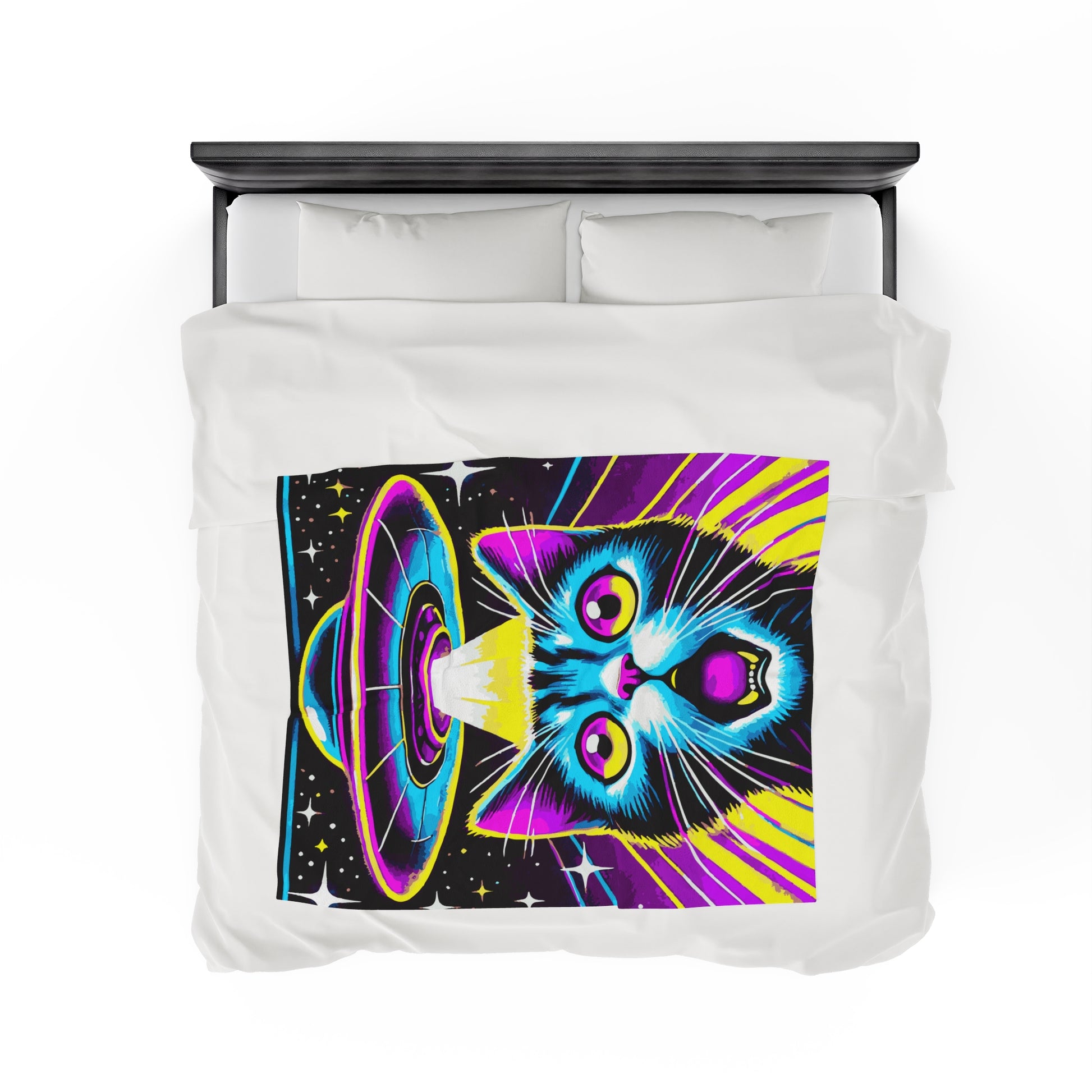 Colorful Cat Abduction Velveteen Plush Throw Blanket | Cool Cat Picked Up by Spaceship | Trippy Alien Decor Cat Lovers Cozy Fun Blanket Gift