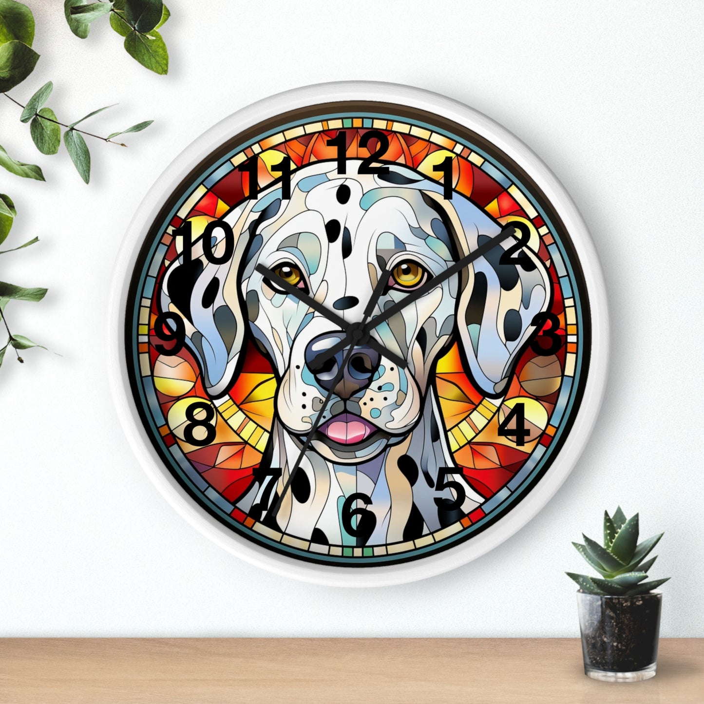 Colorful Stained Glass Dalmatian Wall Clock | Battery Operated | Charming Dog Lover Decor Perfect Gift Dalmatian Fans Whimsical Home Accent