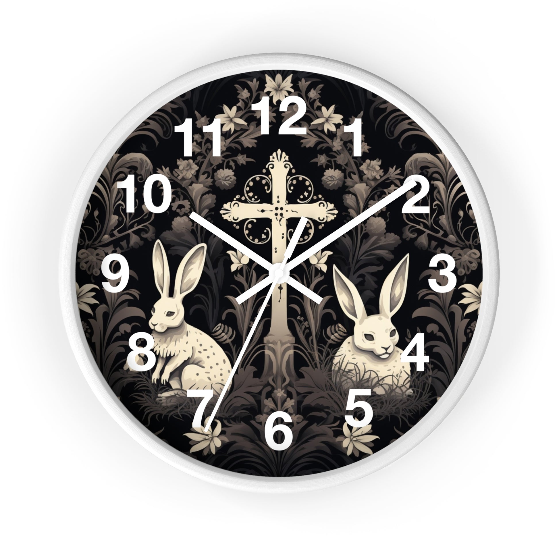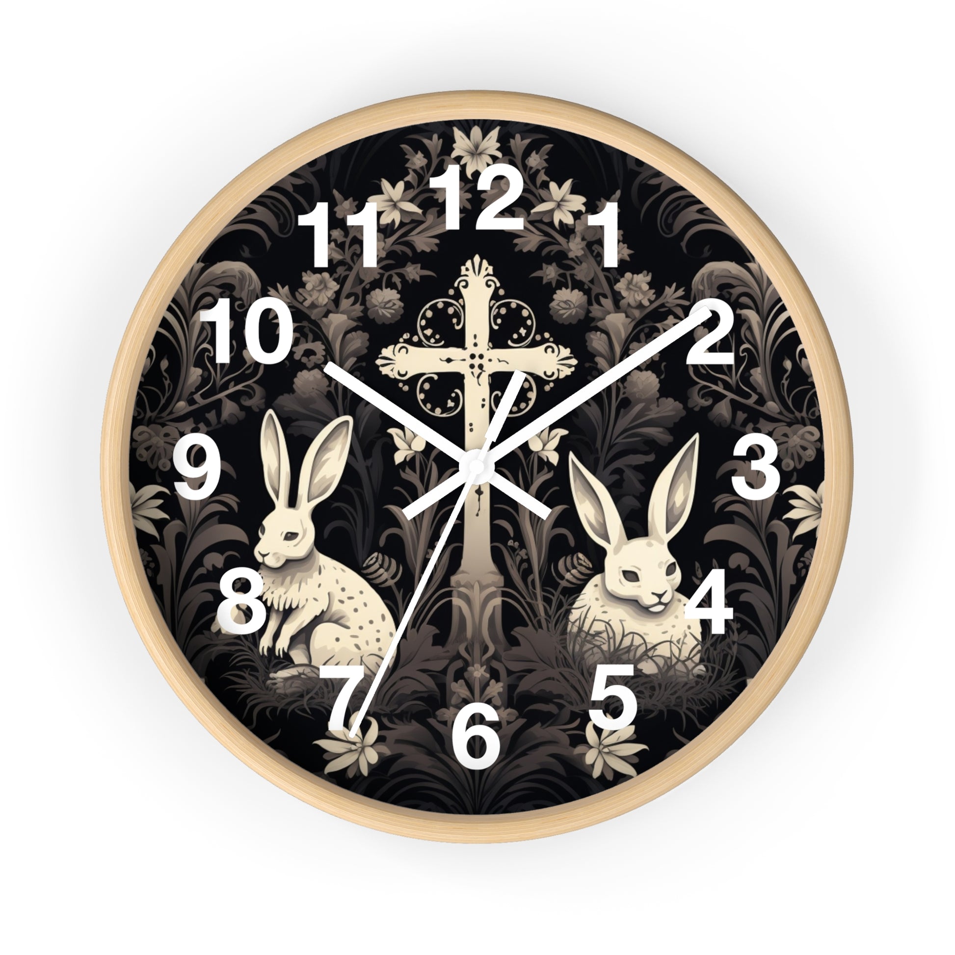 Dark Bunny Cross Gothic House Wall Clock | Haunted Home Decor | Gothic & Eerie Vibes | Battery Operated | Unique Halloween Gift
