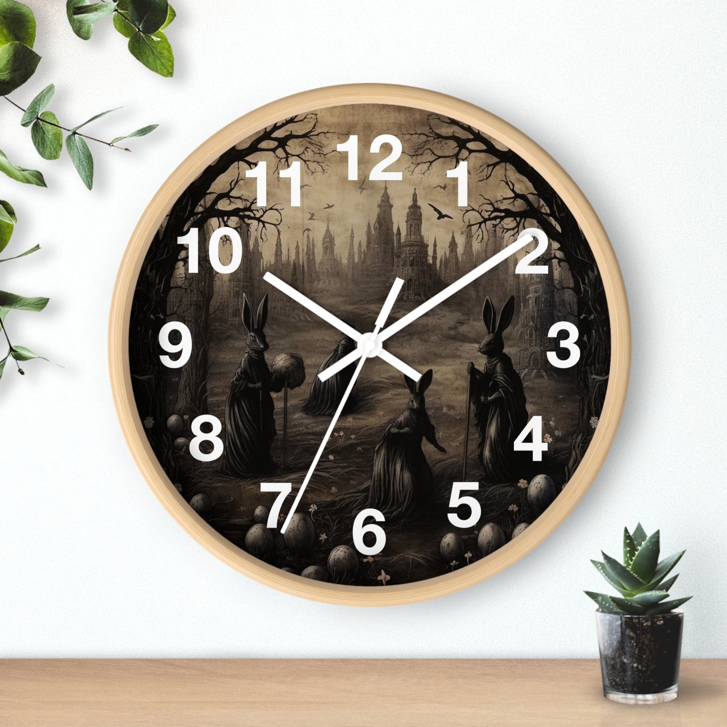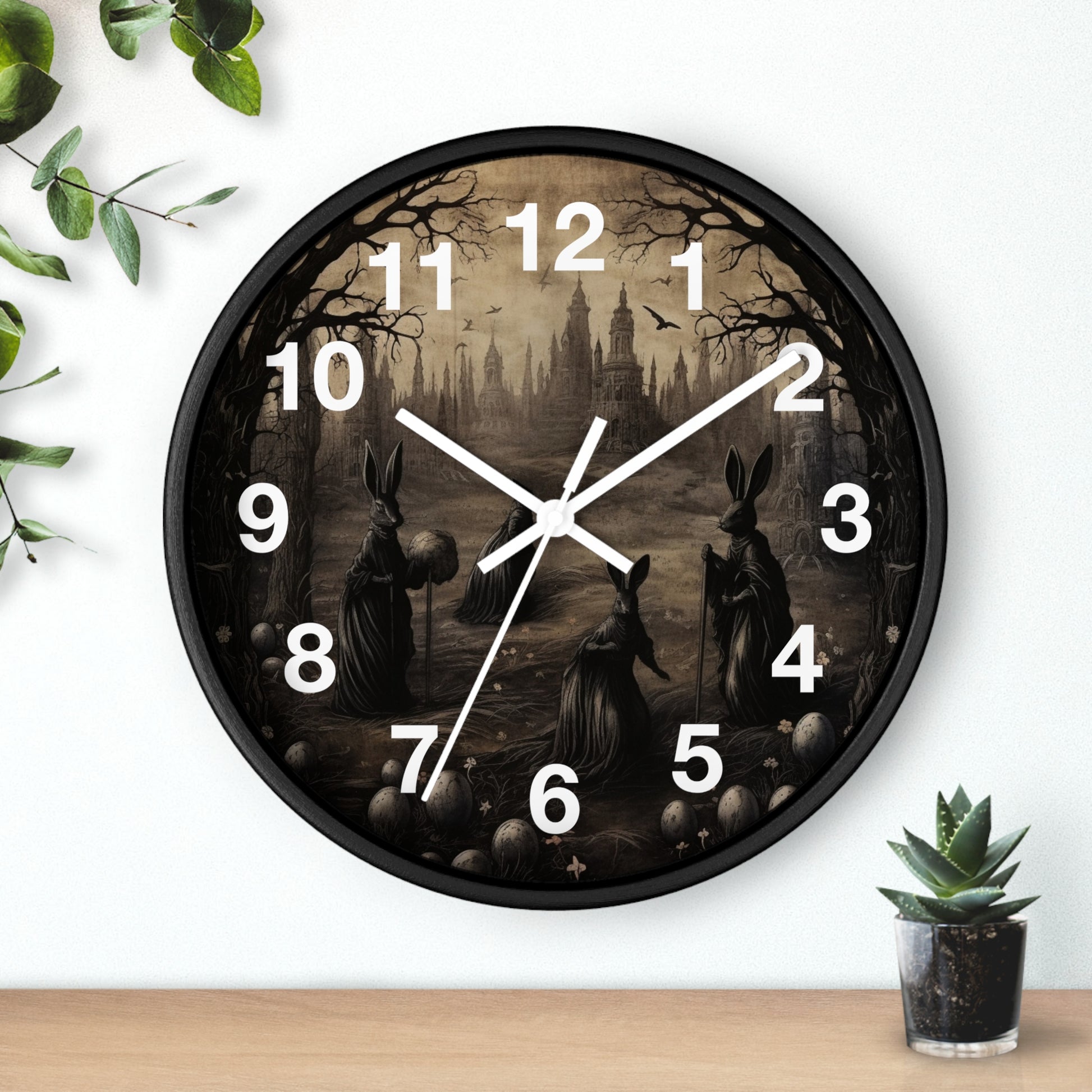 Add a touch of eerie elegance to your home with the Dark Eerie Bunny Gothic Wall Clock—perfect for Halloween