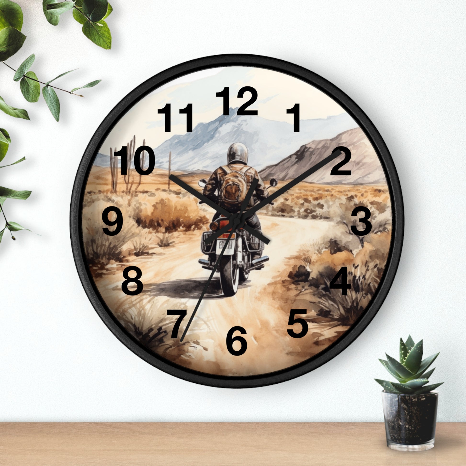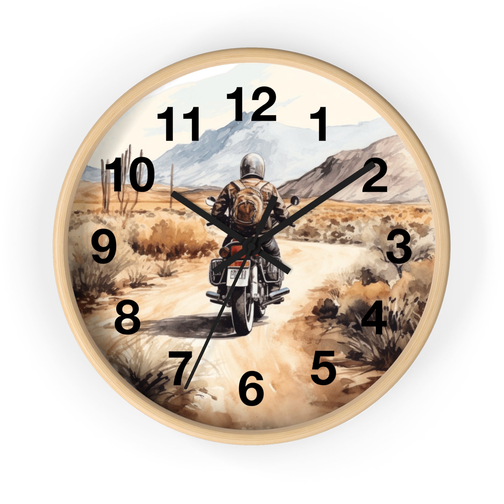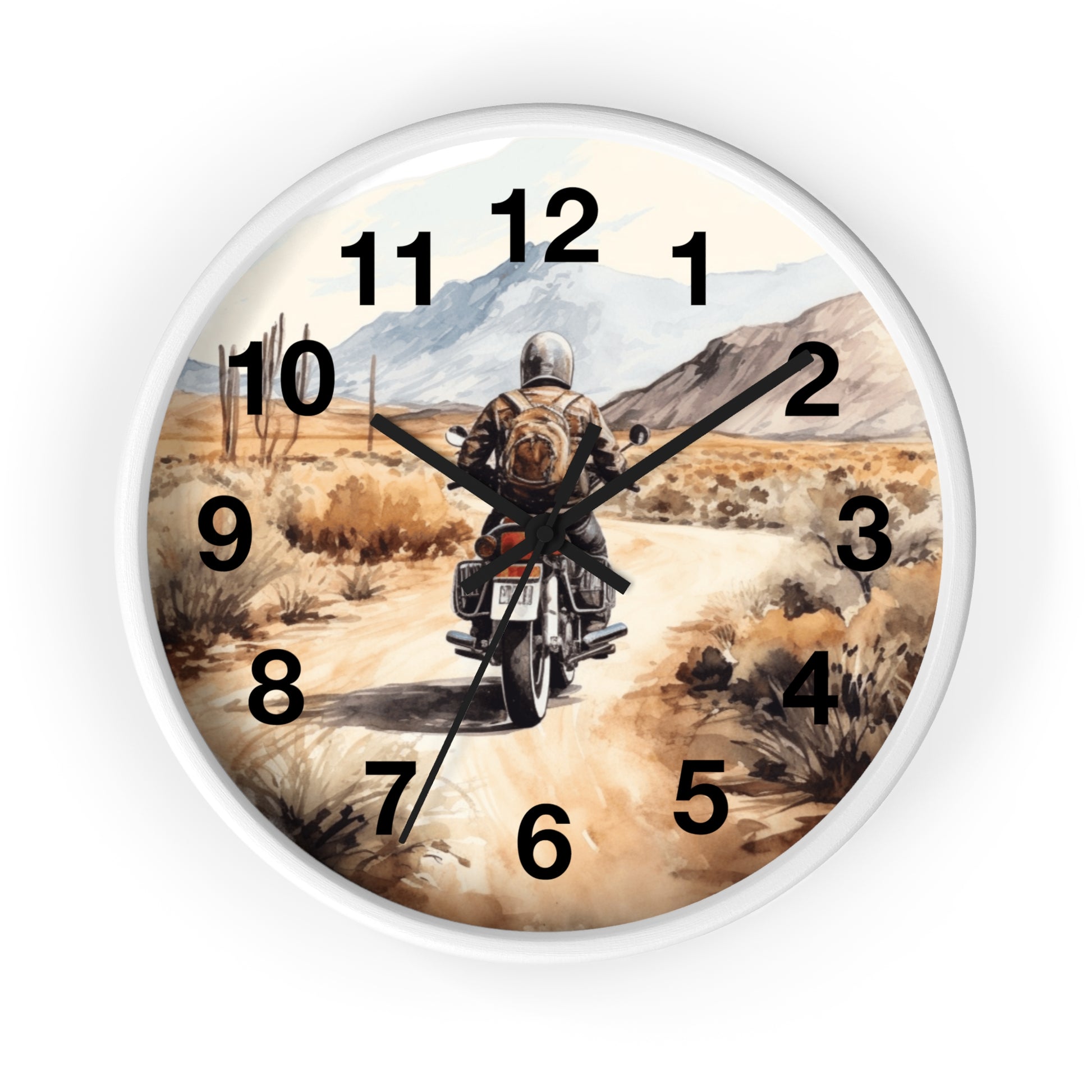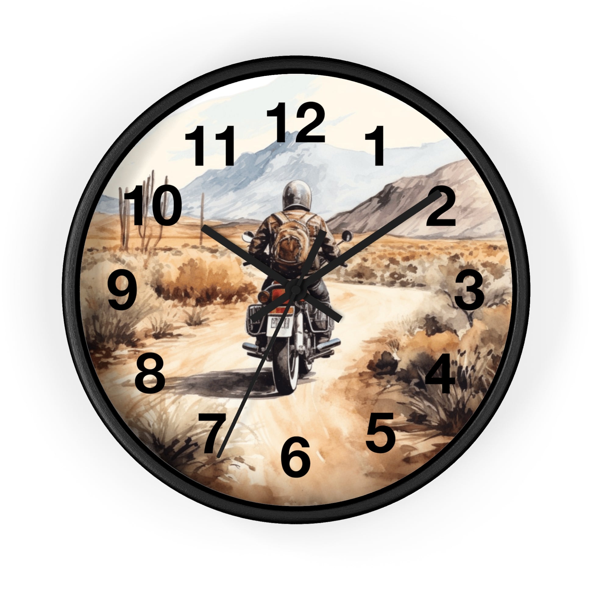 Desert Open Dirt Road Motorcycle Wall Clock | Scenic Biker Decor | Battery Operated | Unique Gift for Motorcycle Enthusiast Motorcycle Decor