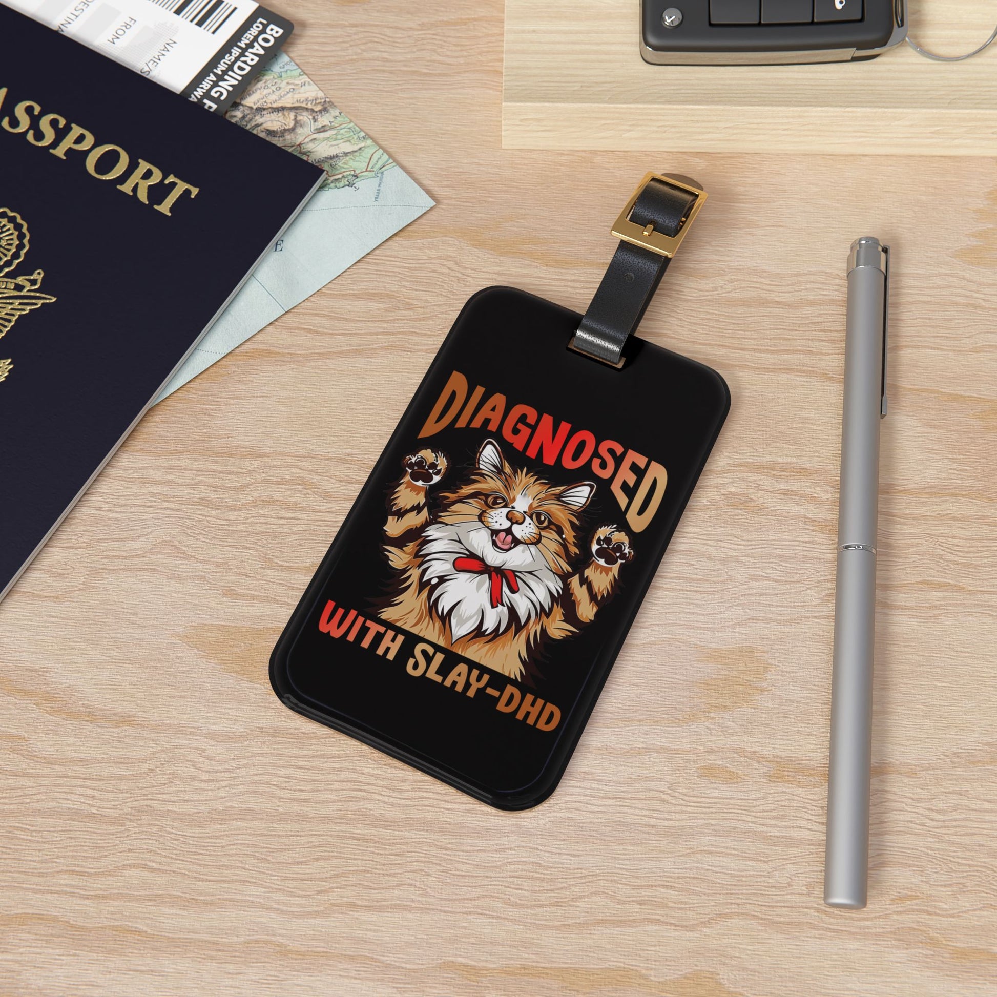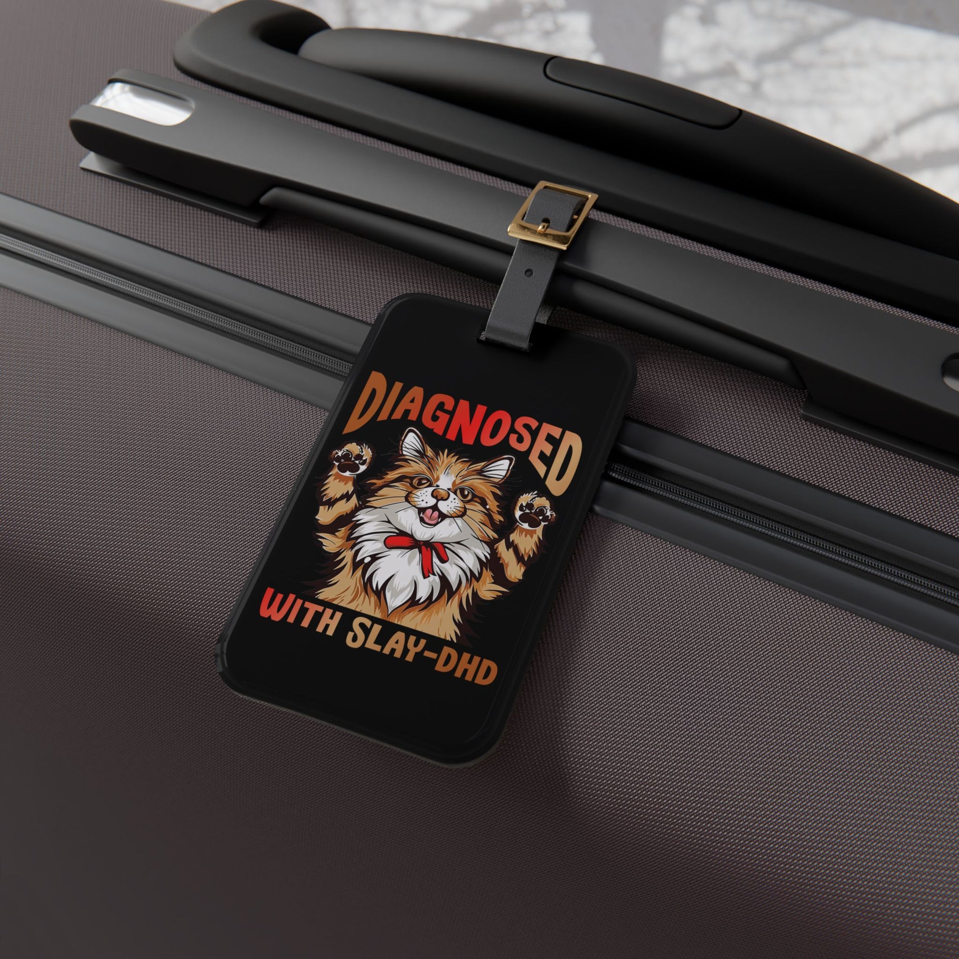 Diagnosed with Slay-DHD Luggage Tag | Funny Cat Baggage ID | Gen Z Quotes | Snarky Cat Lover Humor | Quirky Travel Accessory Cute Cat GIft