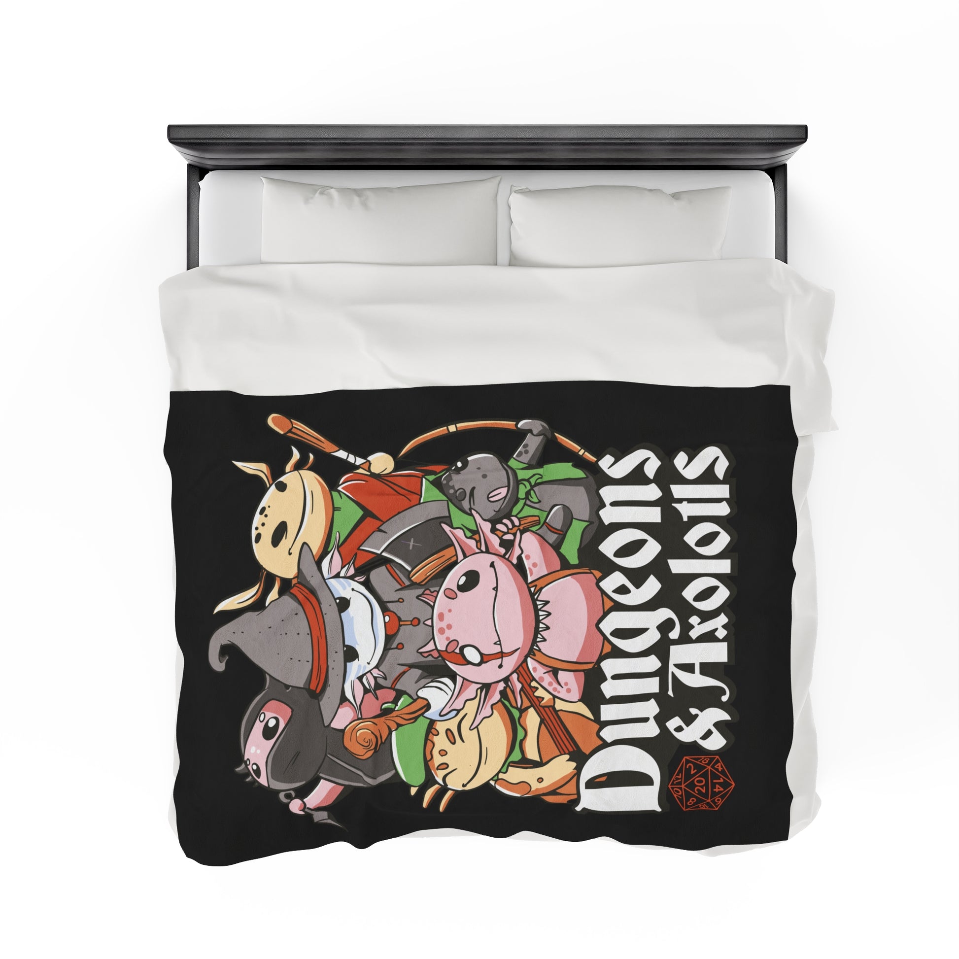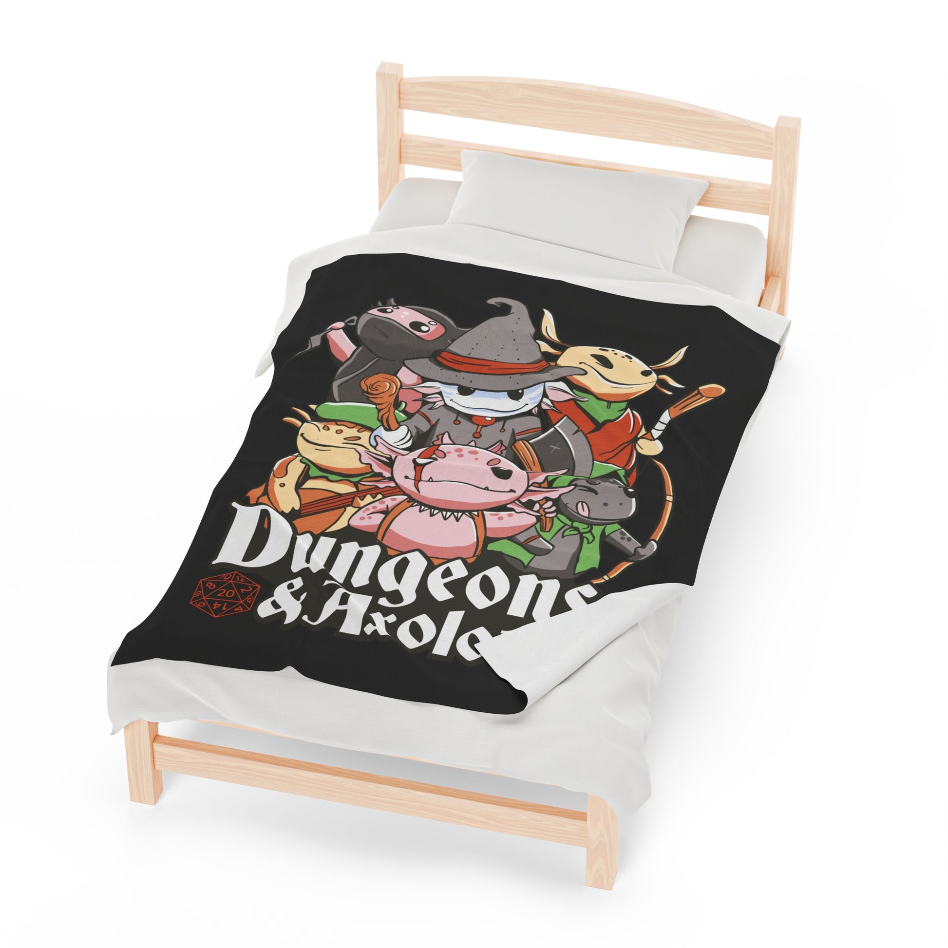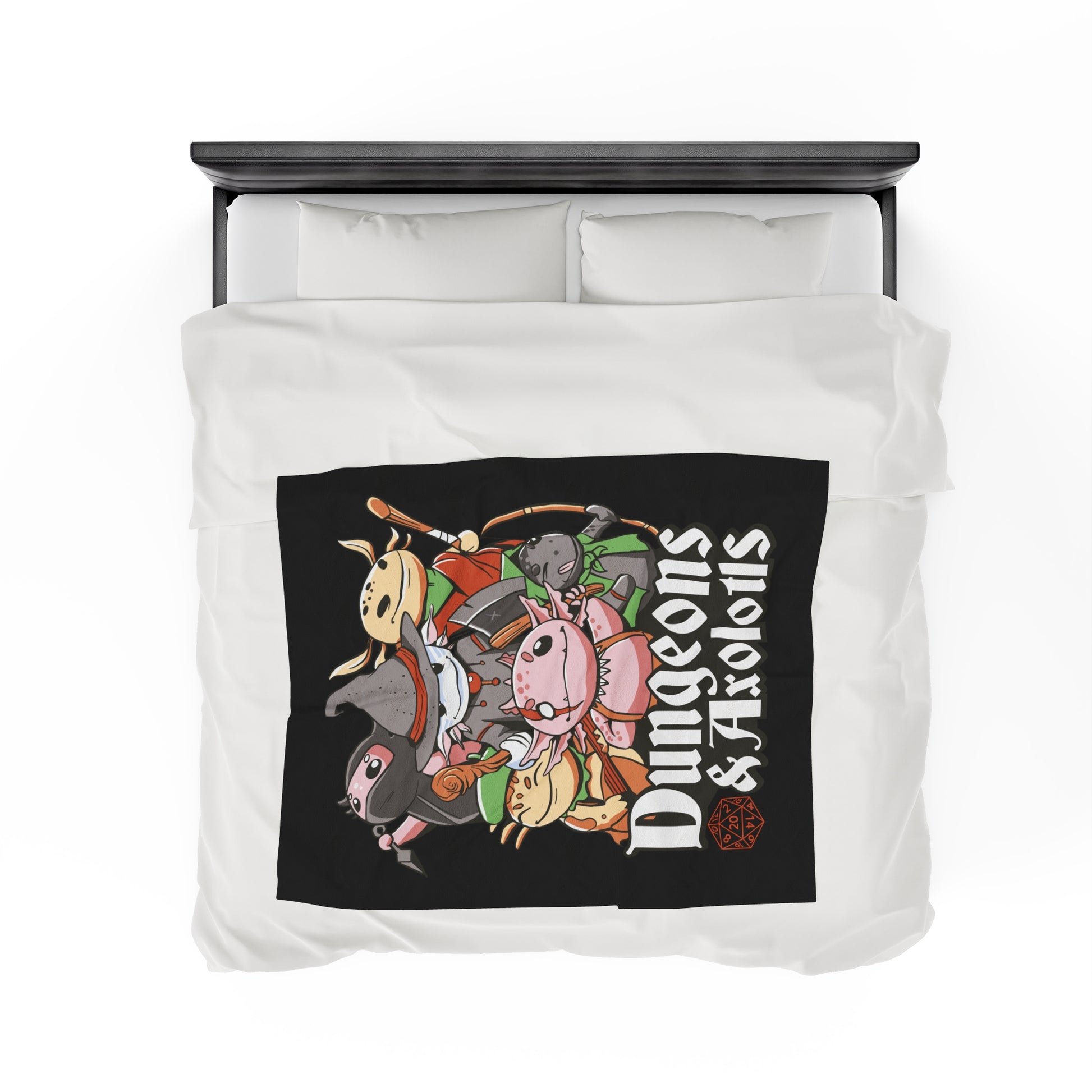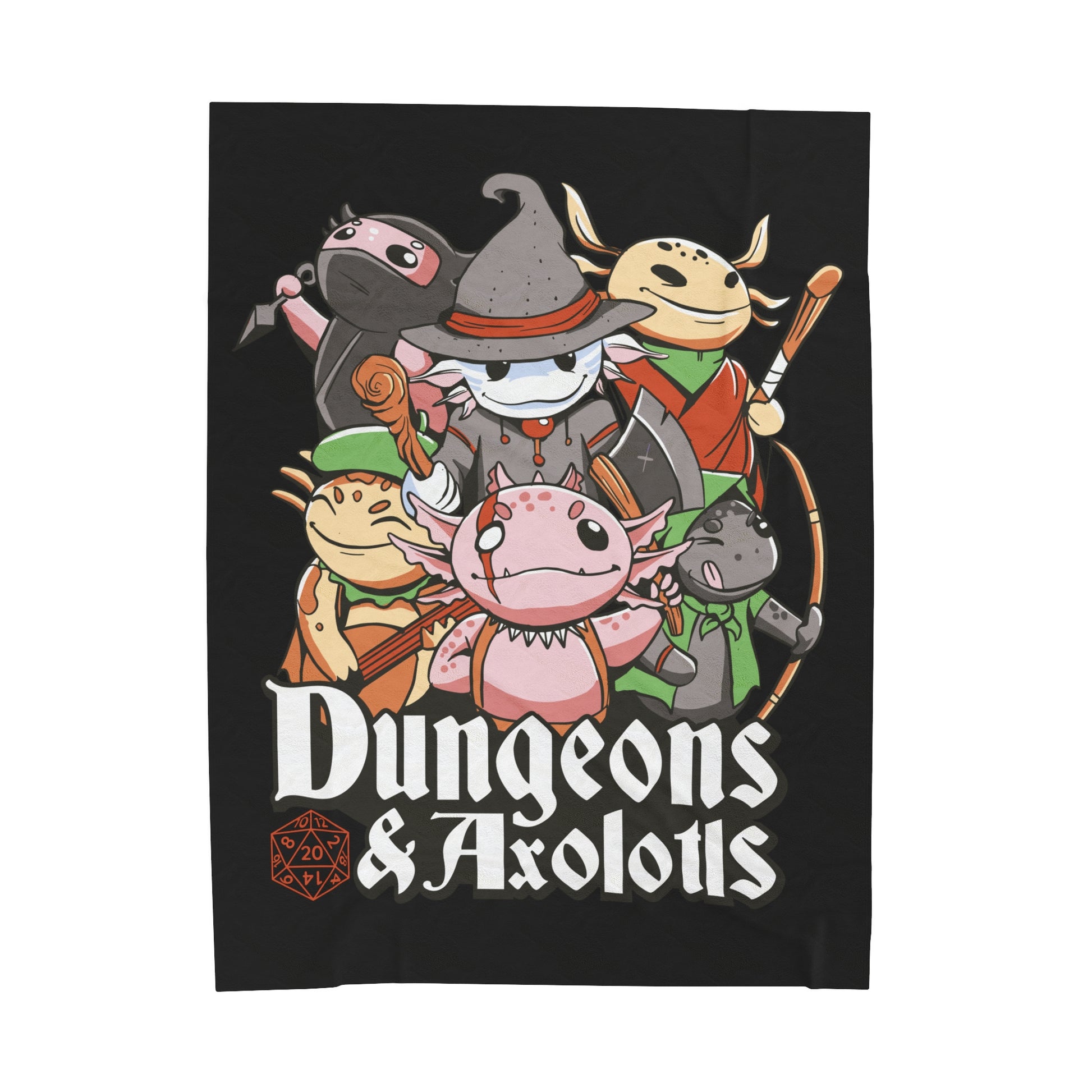 Dungeons and Axolotls Velveteen Plush Throw Blanket | Funny Axolotl Lover Gift | Nerdy Parody Blanket Fantasy Roleplaying Cozy Aquatic Decor