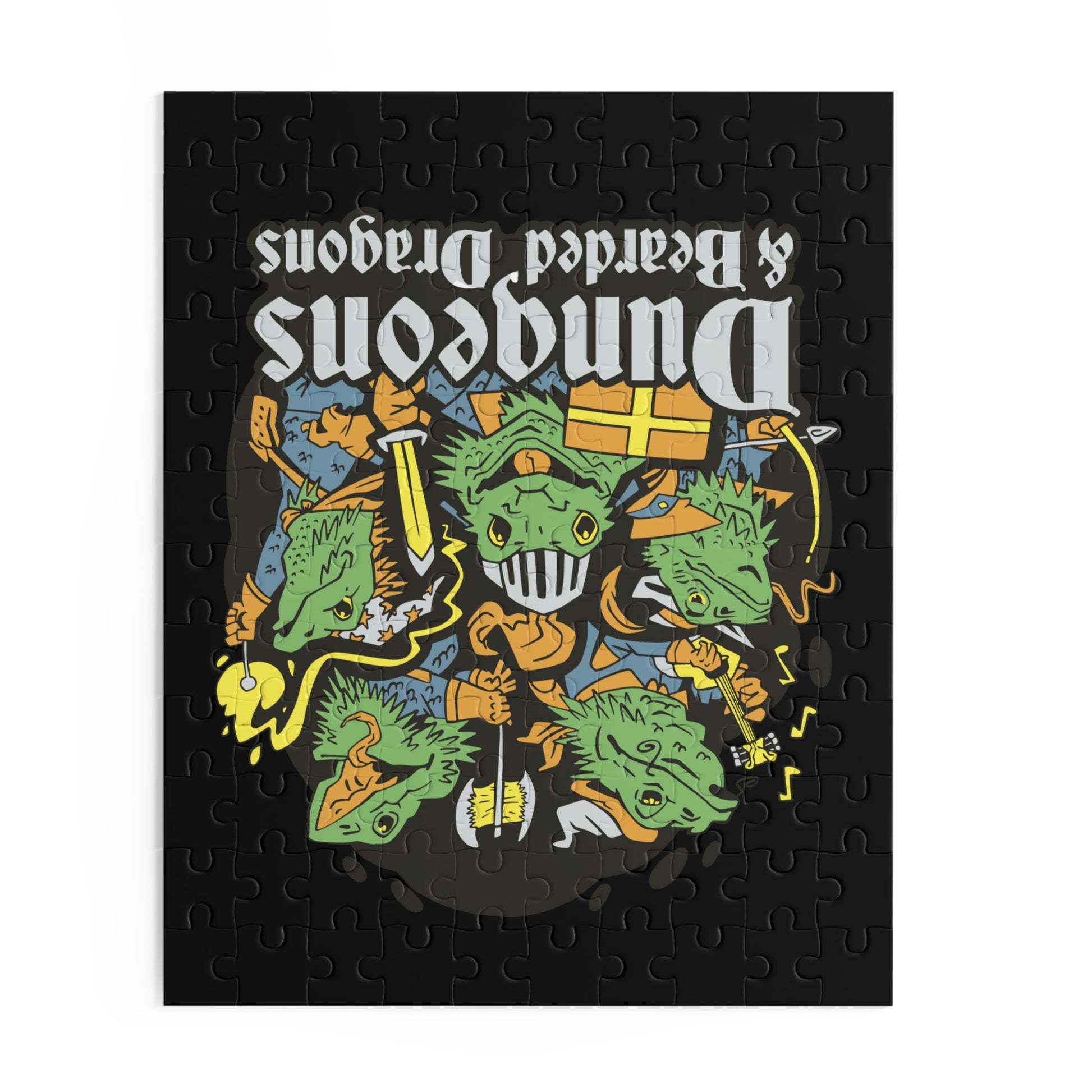 Dungeons and Bearded Dragons Jigsaw Puzzle Funny D&D Parody 120-500 Pieces Nerdy Fantasy Game Fans and Bearded Dragon Lover RPG Style Puzzle