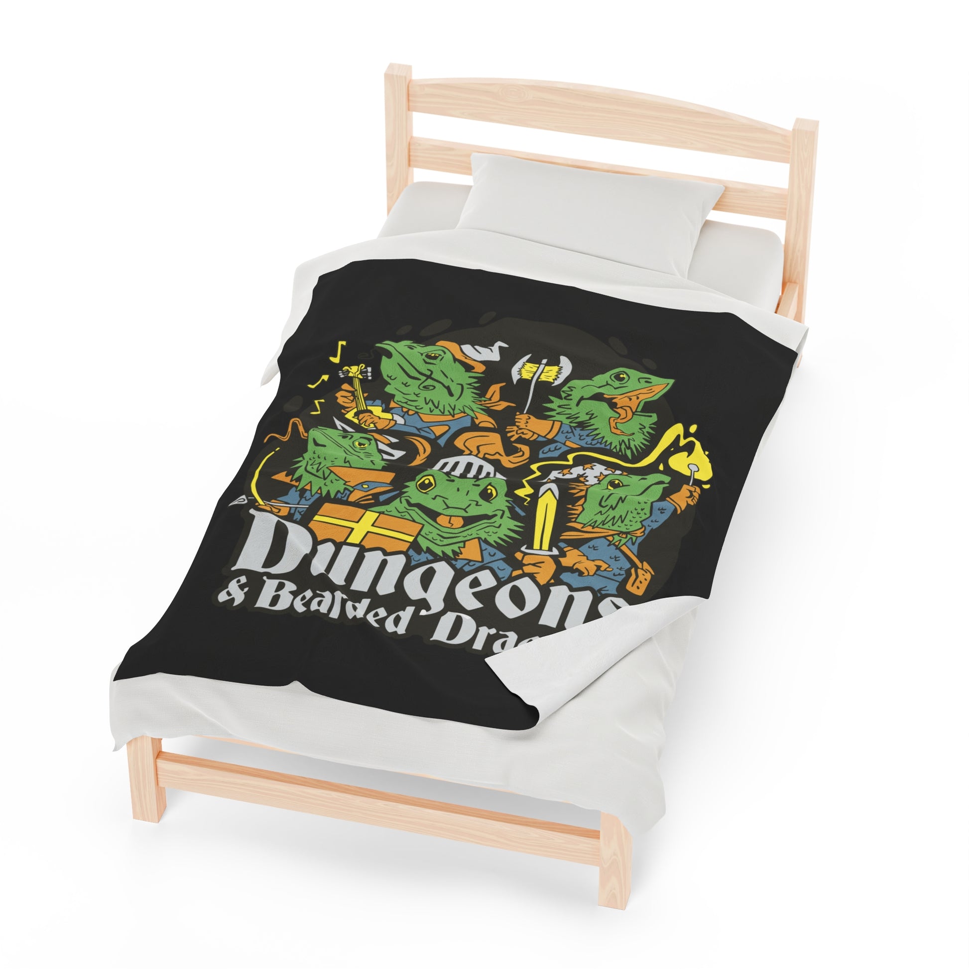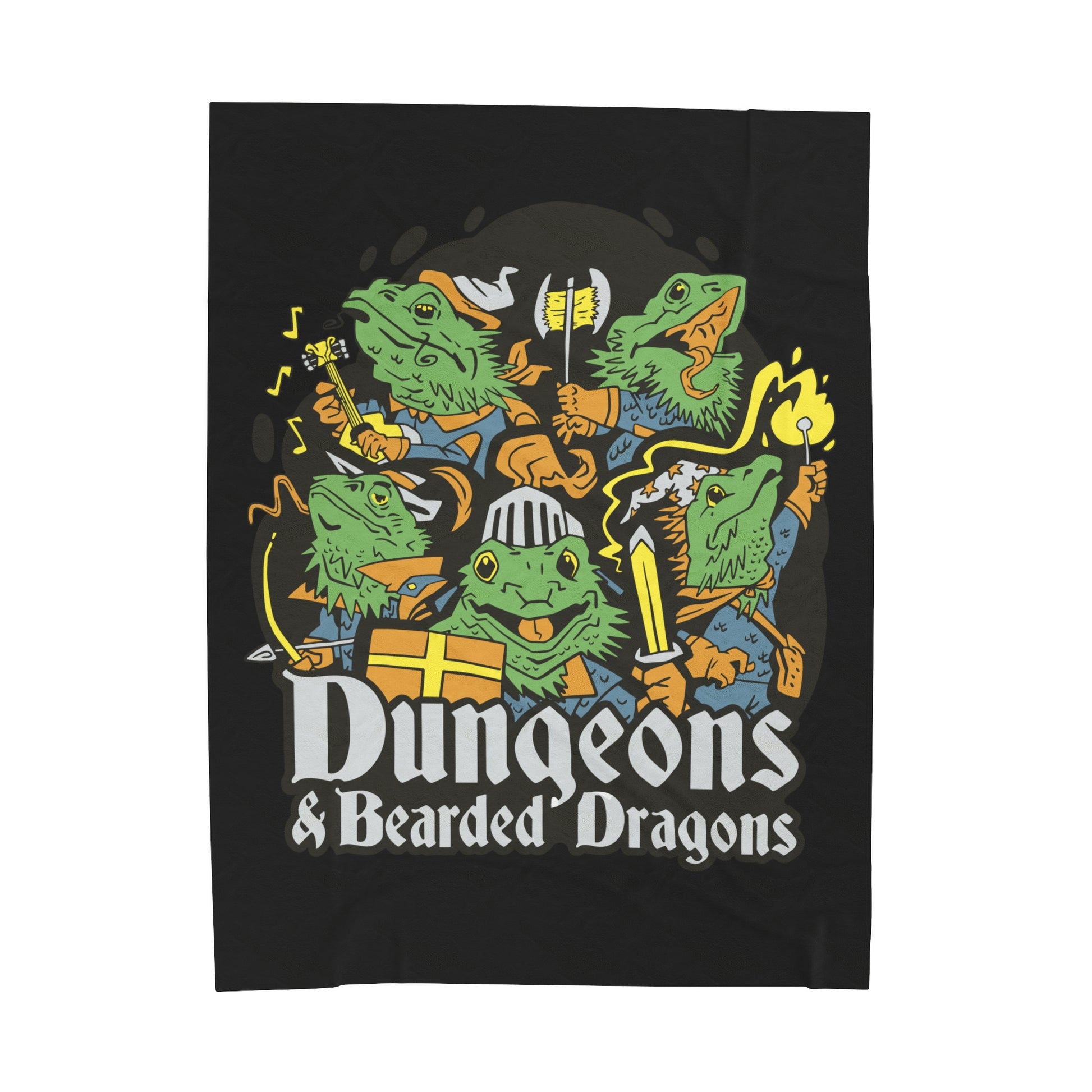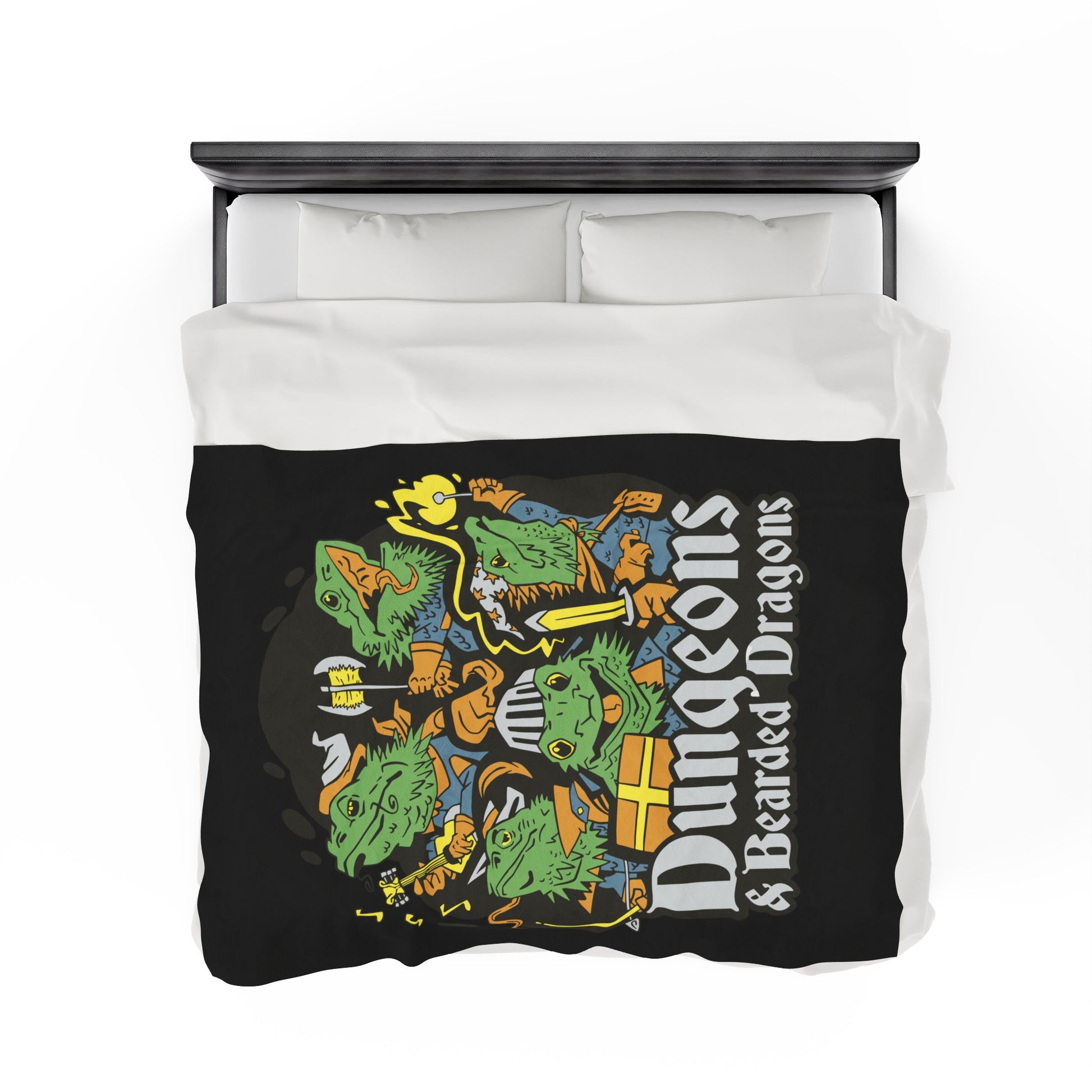 Dungeons and Bearded Dragons Velveteen Plush Throw Blanket Funny Reptile Gift Nerdy Parody Blanket Fantasy Roleplaying Cozy Dragon Decor
