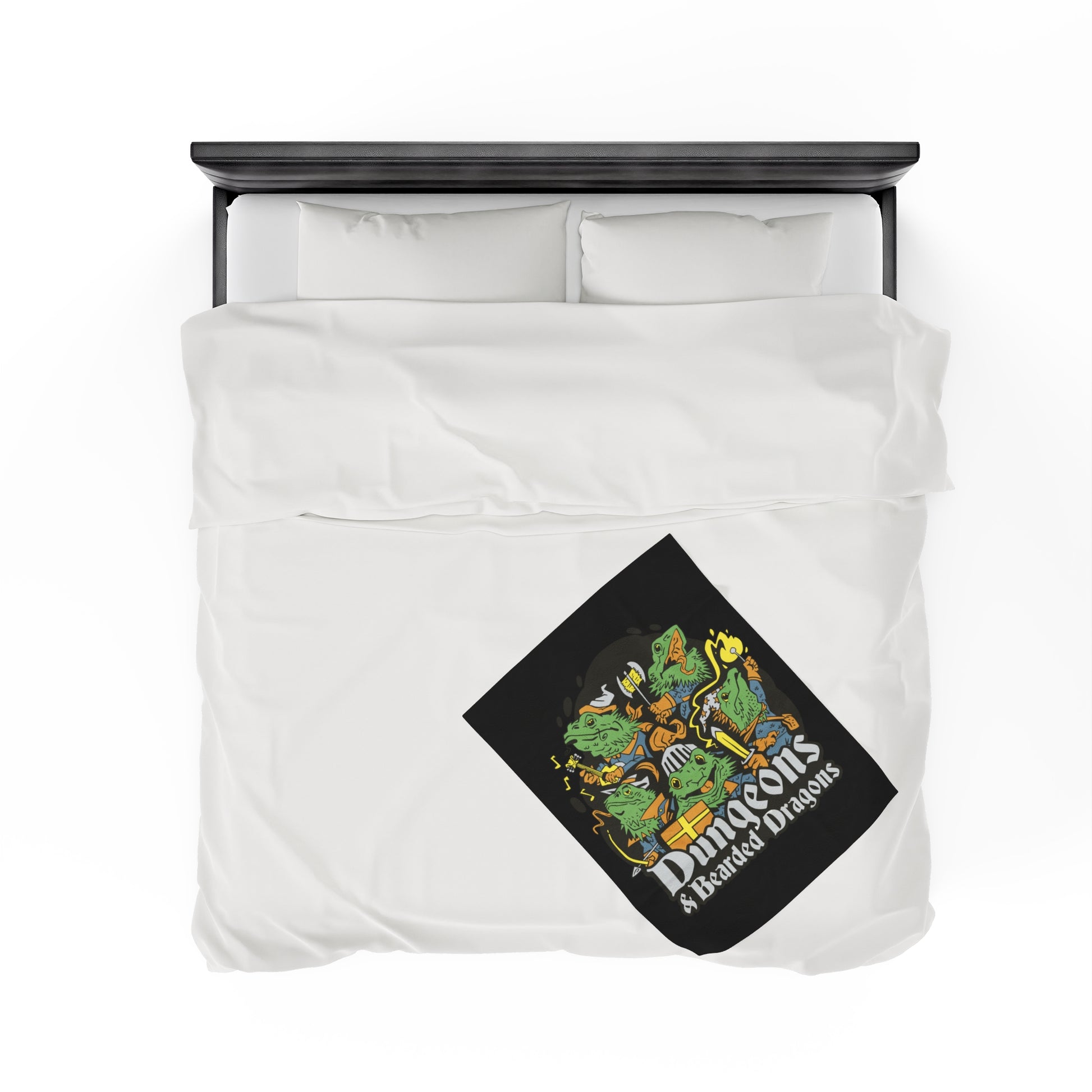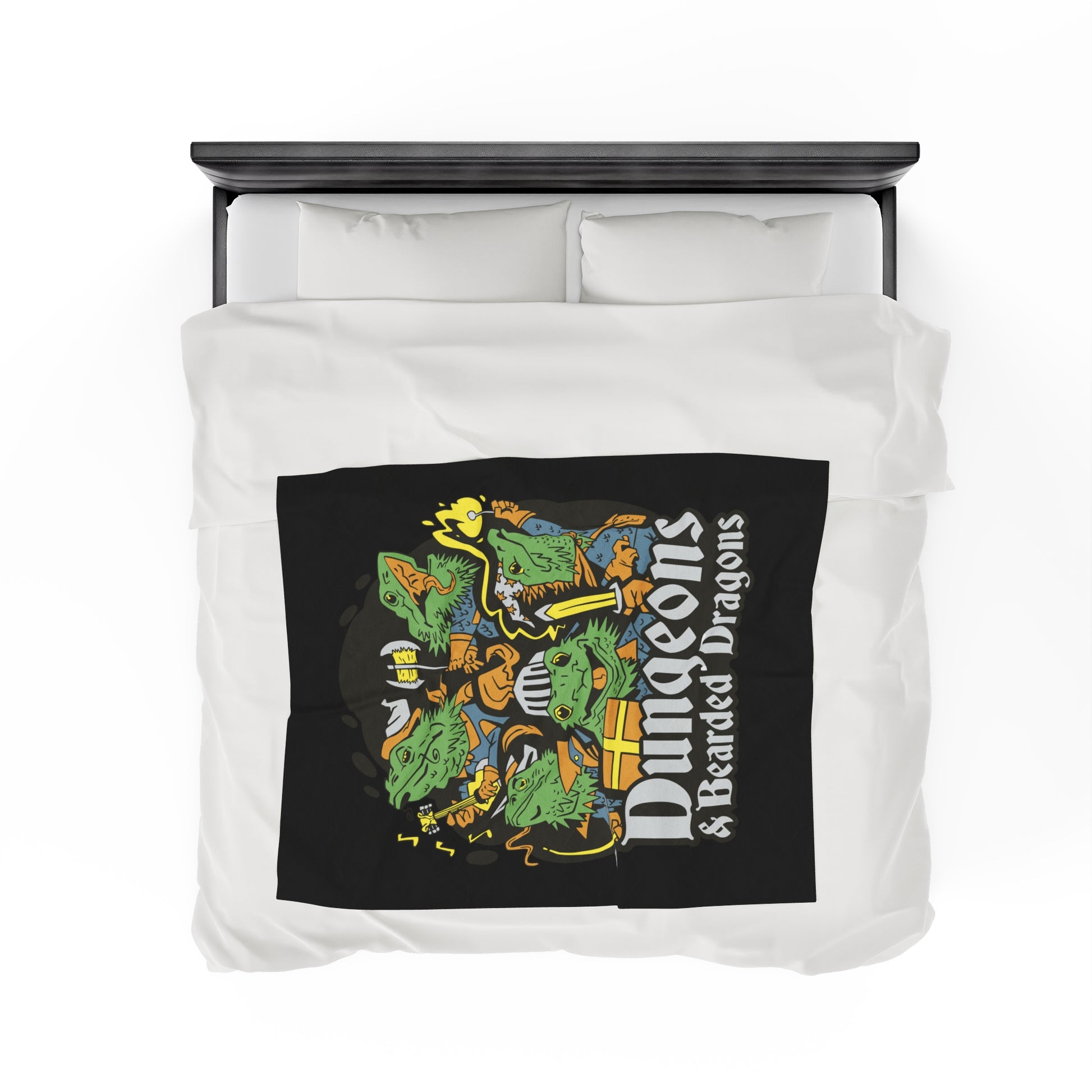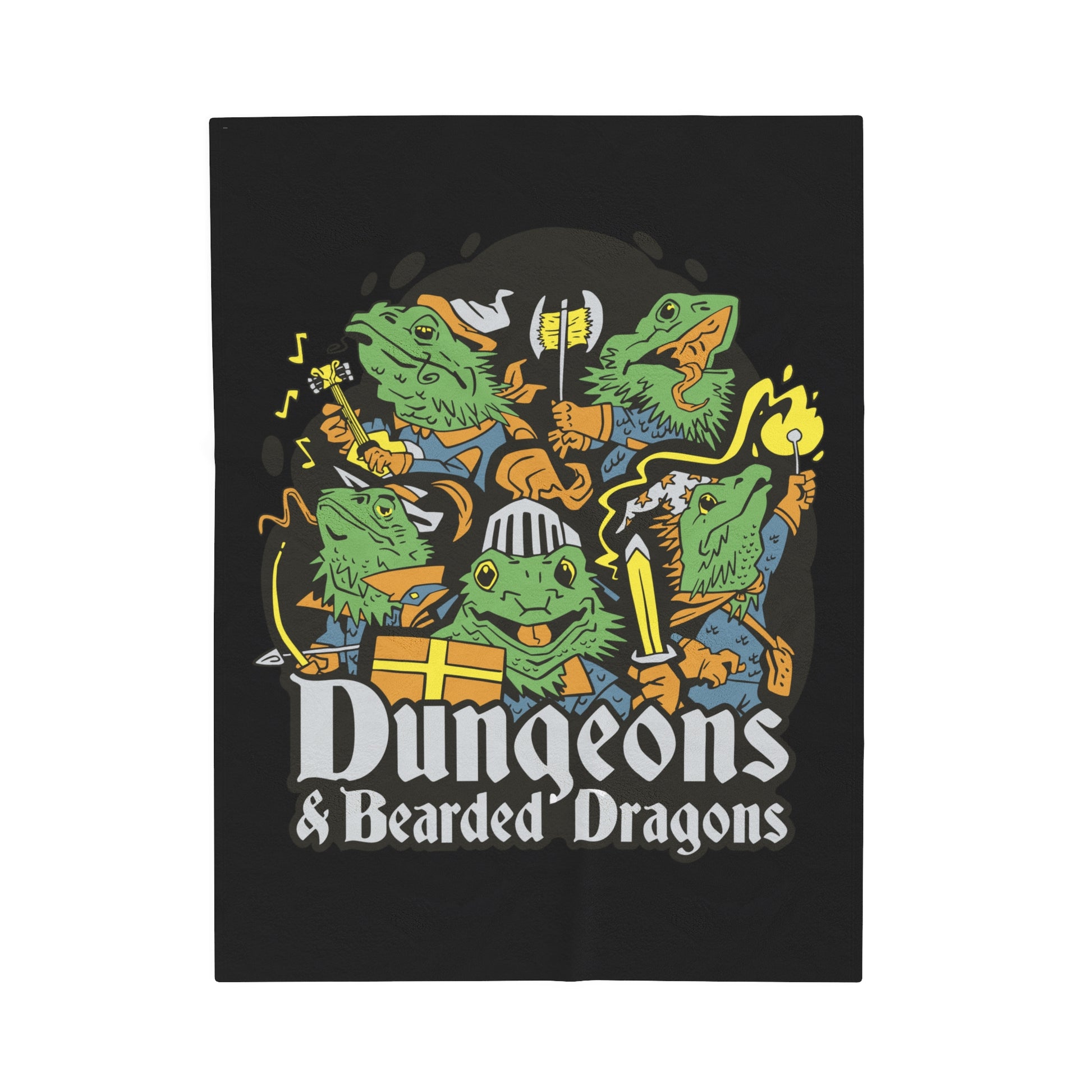 Dungeons and Bearded Dragons Velveteen Plush Throw Blanket Funny Reptile Gift Nerdy Parody Blanket Fantasy Roleplaying Cozy Dragon Decor