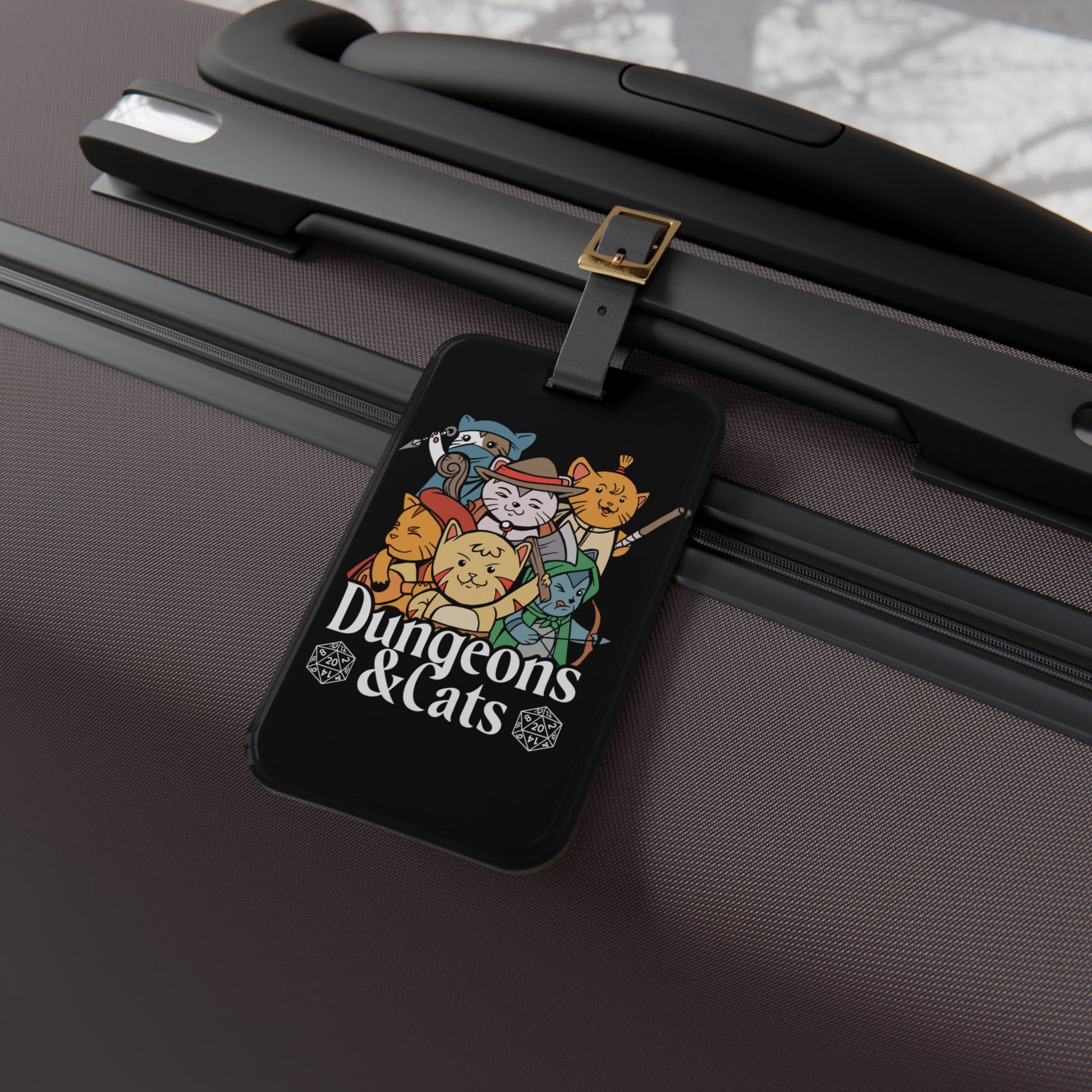 Dungeons and Cats Luggage Tag | Funny Cat Lover Baggage ID | Nerdy Parody Travel Accessory | Fantasy Roleplaying Gift for Feline Fans