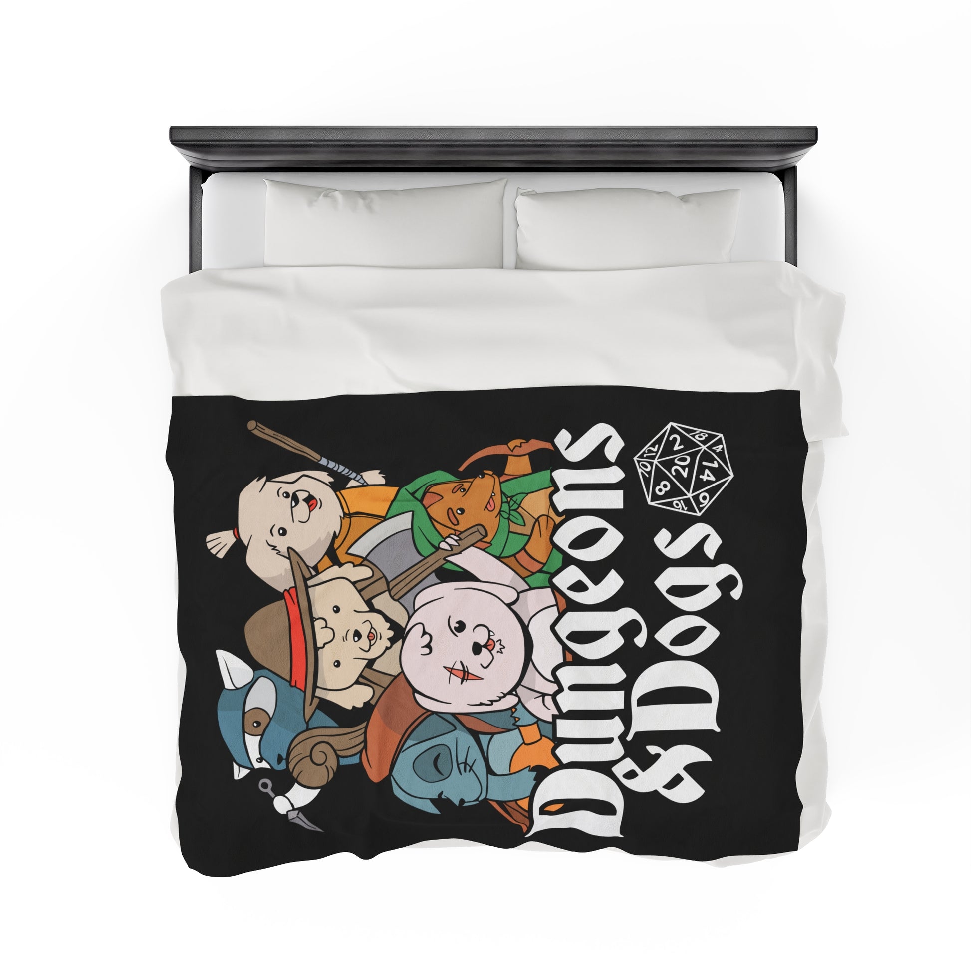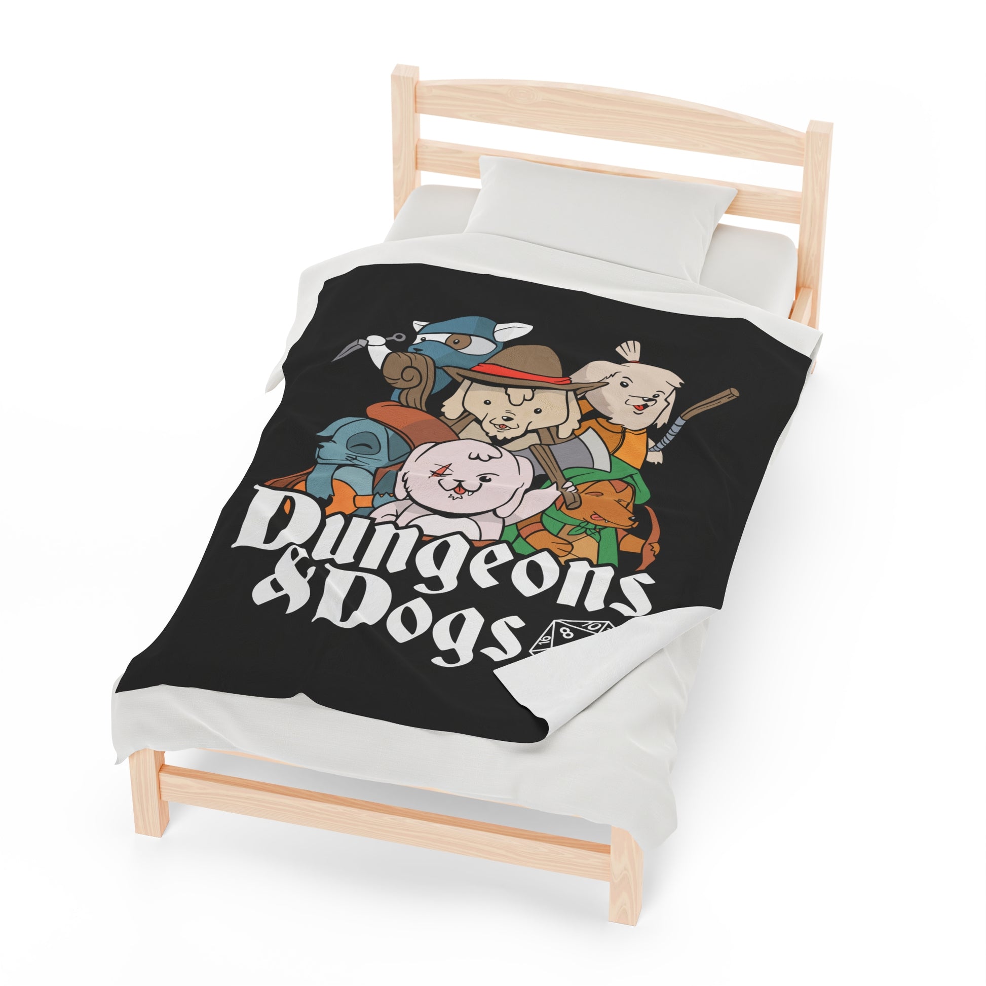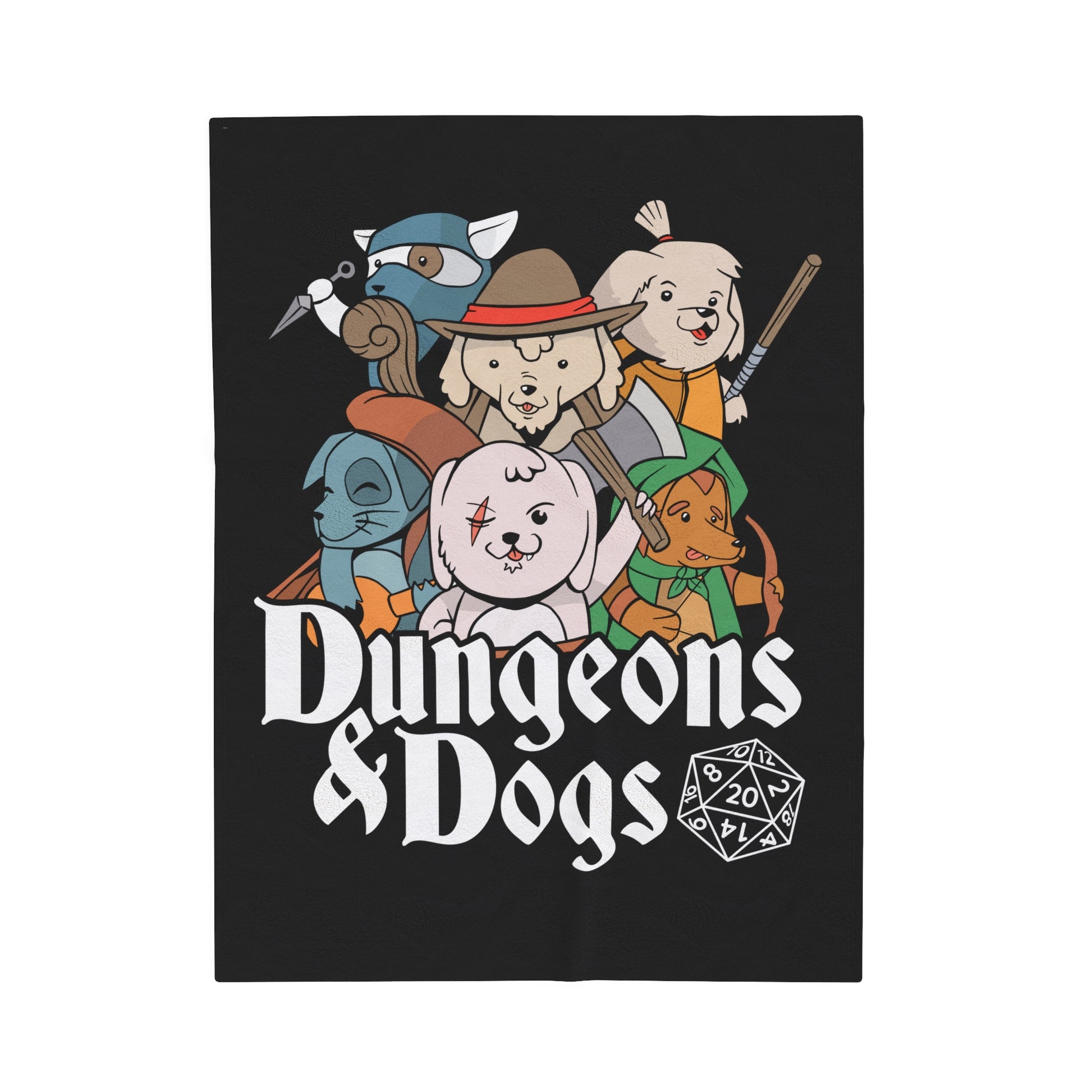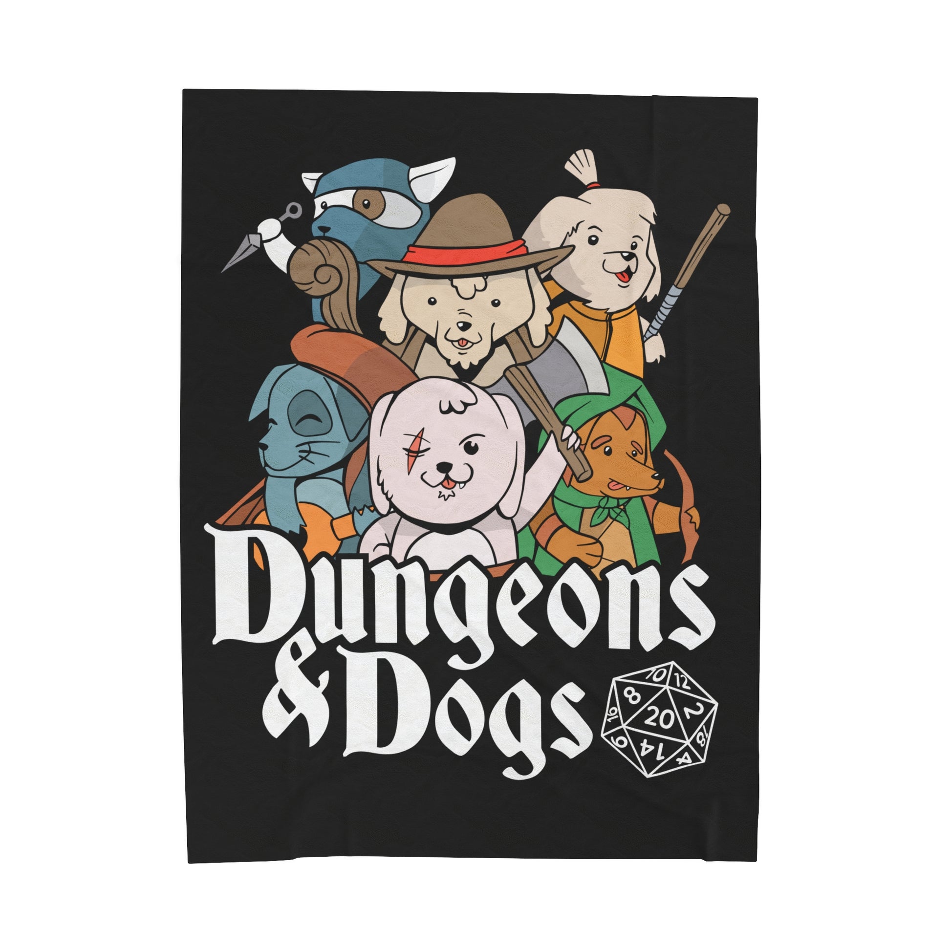 Dungeons and Dogs Velveteen Plush Throw Blanket | Funny Dog Lover Gift | Nerdy Parody Blanket | Fantasy Roleplaying Cozy Canine Decor