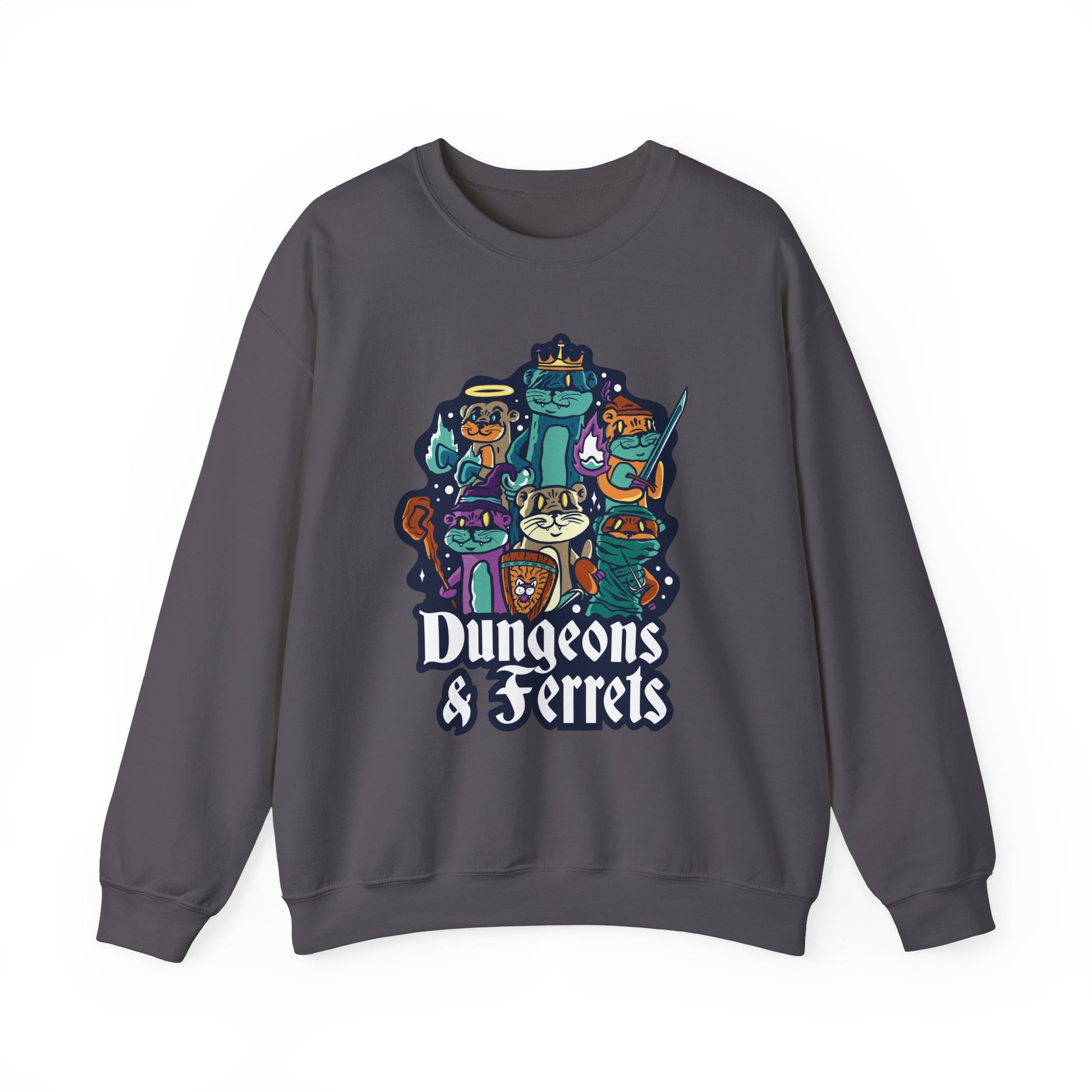 Dungeons and Ferrets Funny D&D Parody Sweatshirt | Nerdy Fantasy Game Sweater Ferret Lovers Unique Winter Gift | Cozy Fun Sweatshirt Gamers