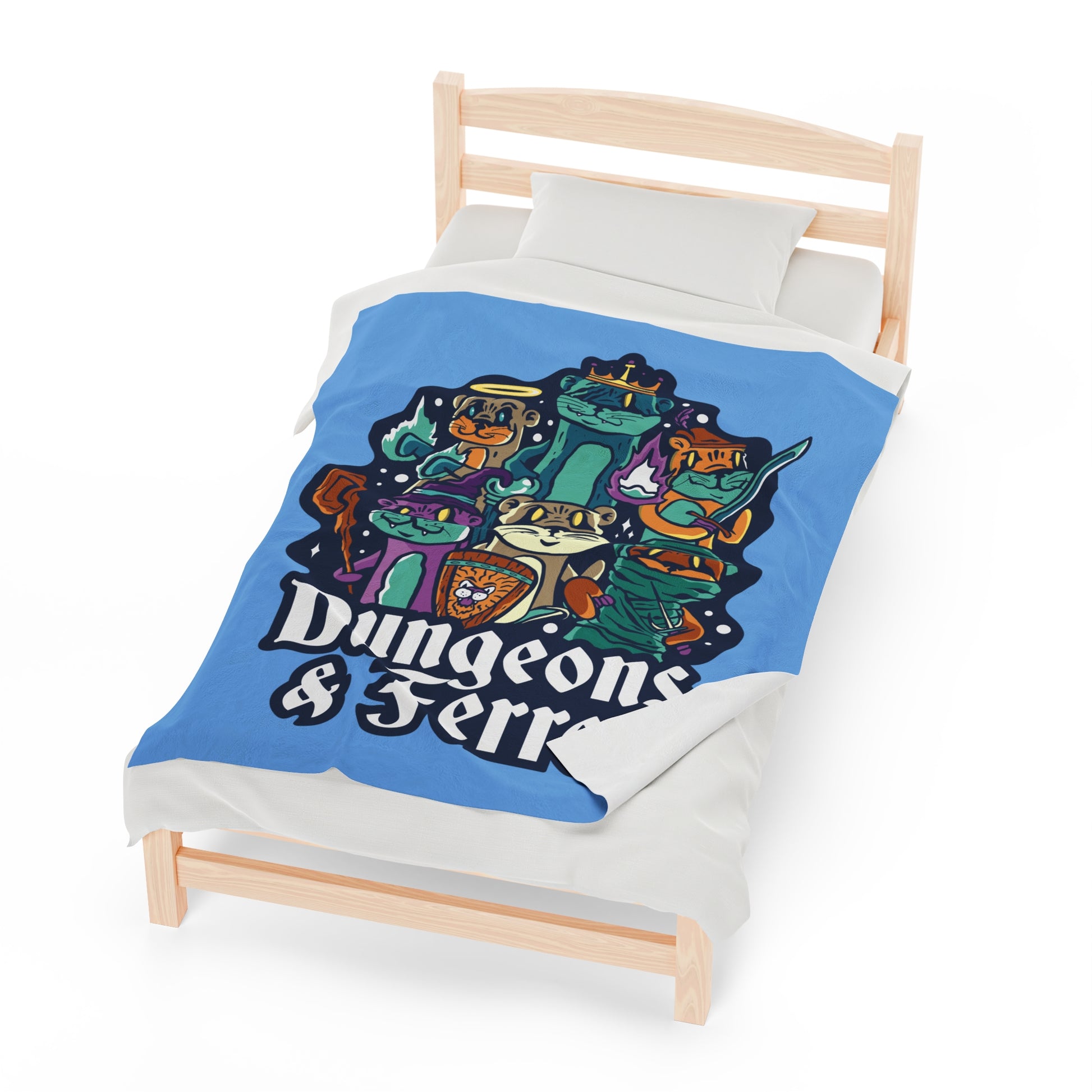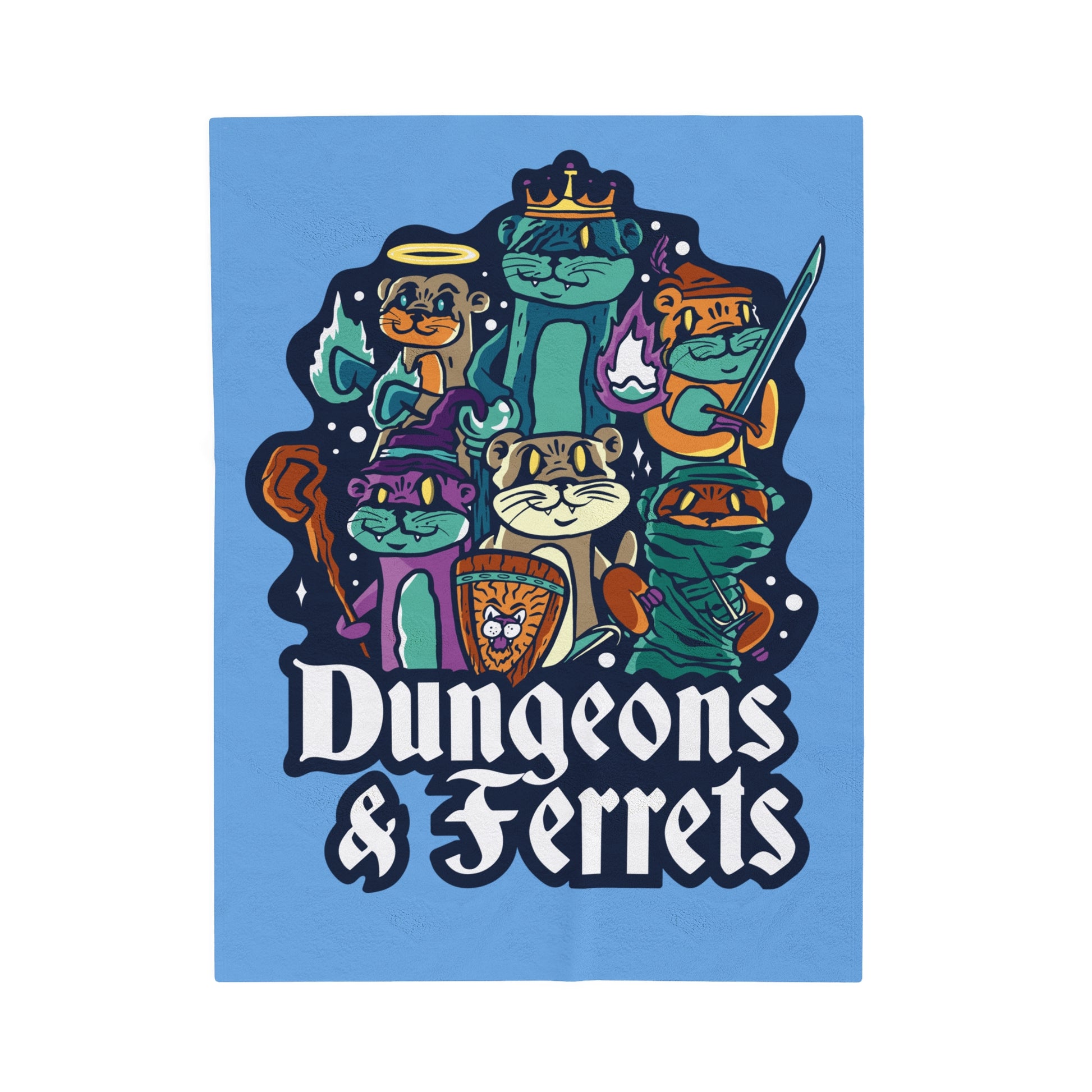 Dungeons and Ferrets Velveteen Plush Throw Blanket | Funny Ferret Lover Gift | Nerdy Parody Blanket | Fantasy Roleplaying Cozy Ferret Decor