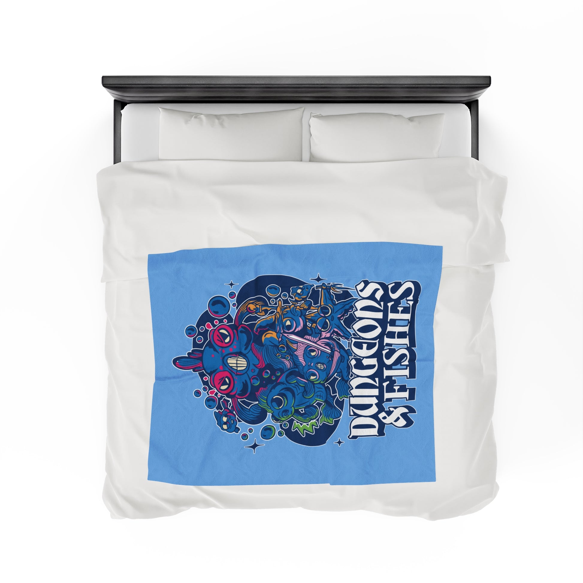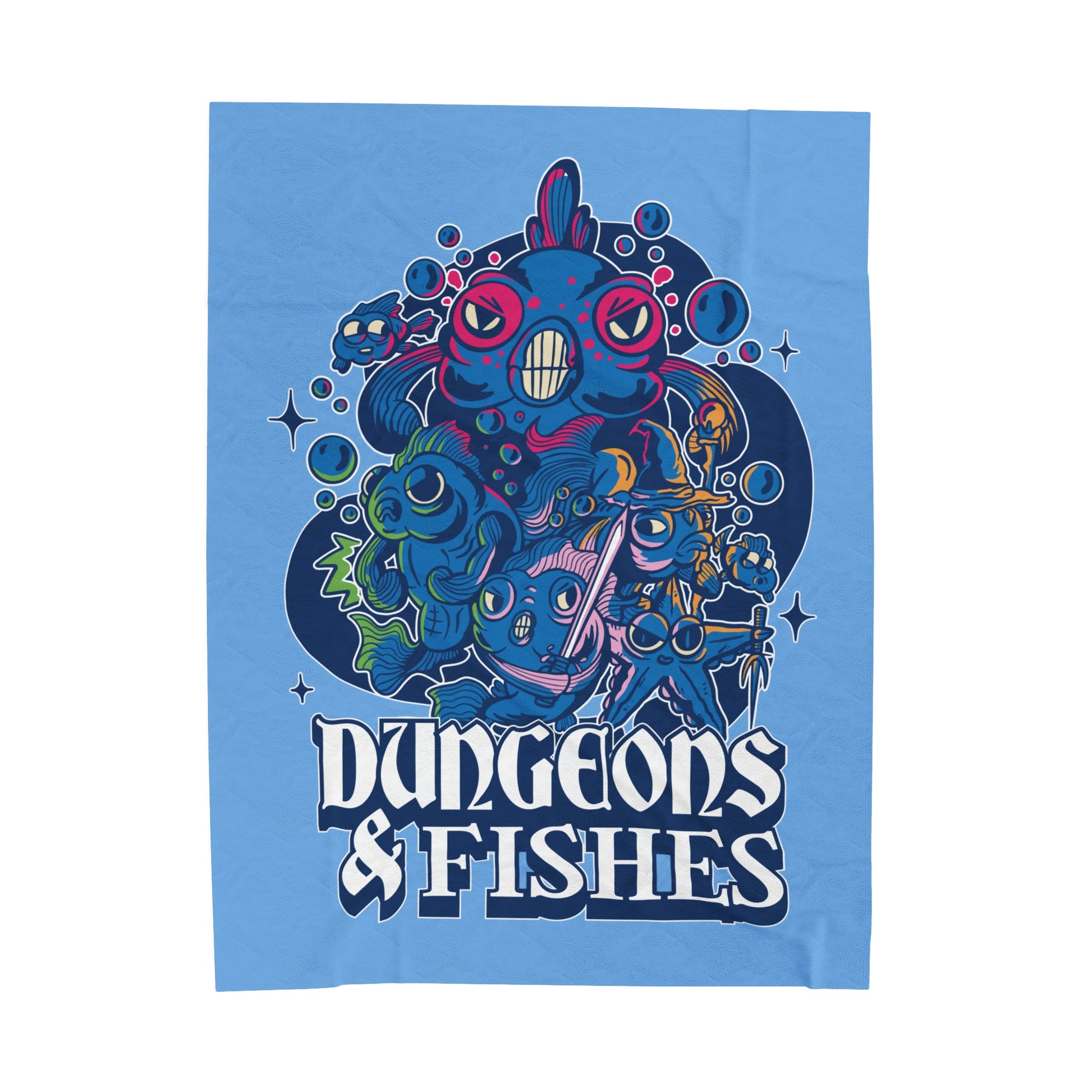 Dungeons and Fishes Velveteen Plush Throw Blanket | Funny Fish Lover Gift | Nerdy Parody Blanket | Fantasy Roleplaying Cozy Aquatic Decor