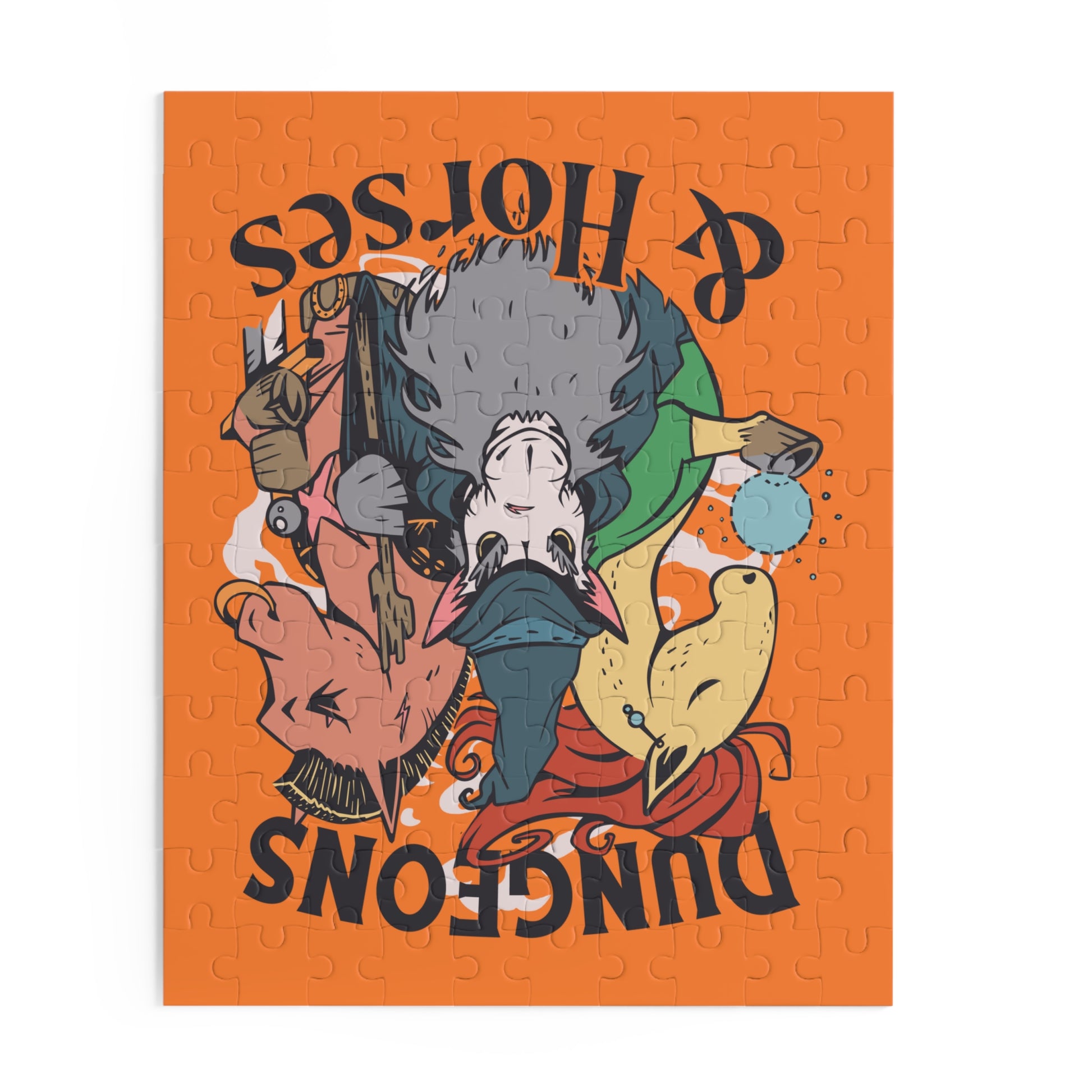 Dungeons and Horses Jigsaw Puzzle Funny D&D Parody 120-500 Pieces for Nerdy Fantasy Game Fans and Horse Lovers RPG Style Puzzle