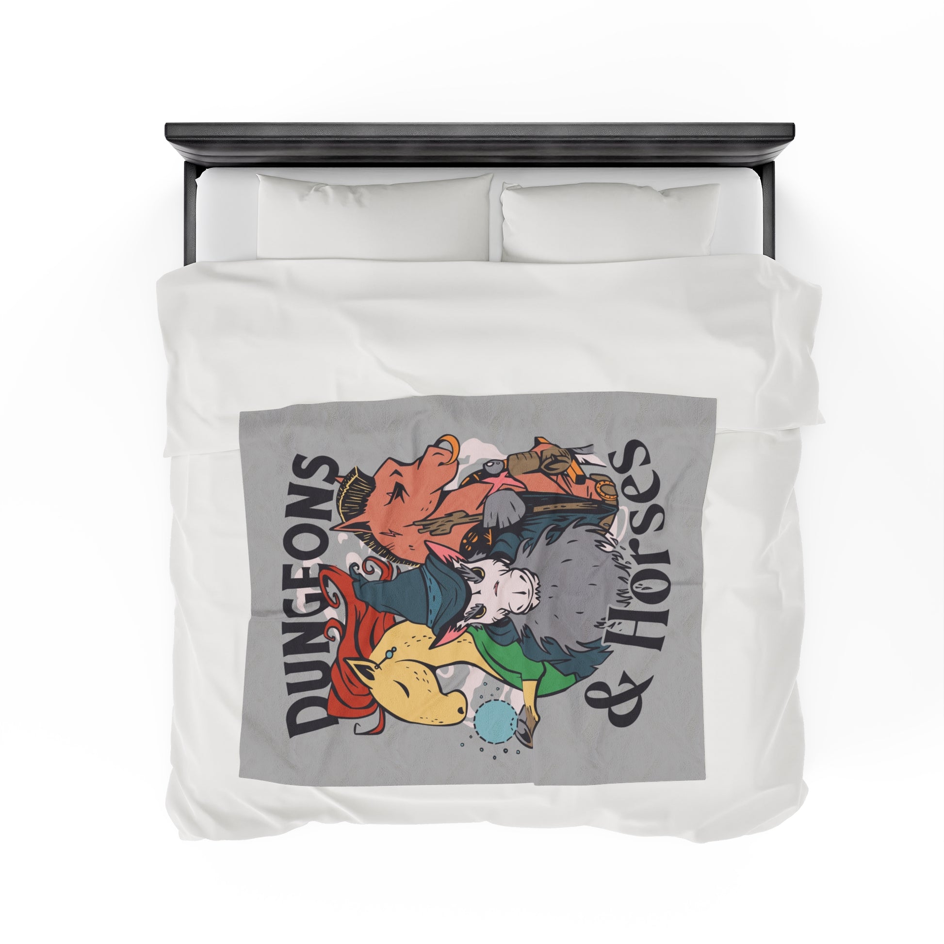 Dungeons and Horses Velveteen Plush Throw Blanket | Funny Horse Lover Gift | Nerdy Parody Blanket Fantasy Roleplaying Cozy Equestrian Decor
