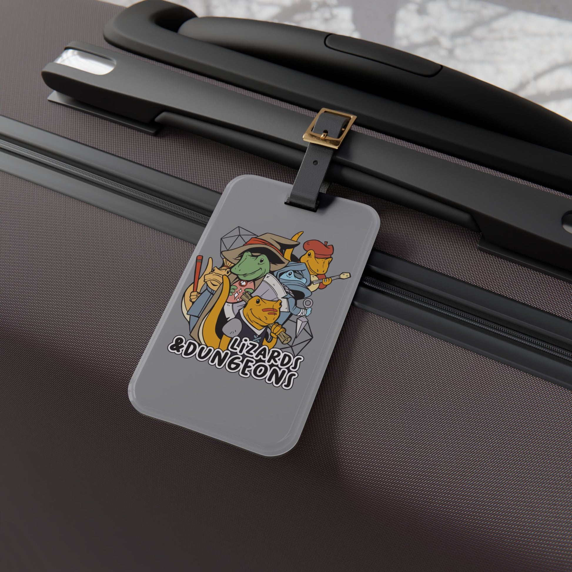 Dungeons and Lizards Luggage Tag | Funny Lizard Lover Baggage ID | Nerdy Parody Travel Accessory | Fantasy Roleplaying Gift for Reptile Fans