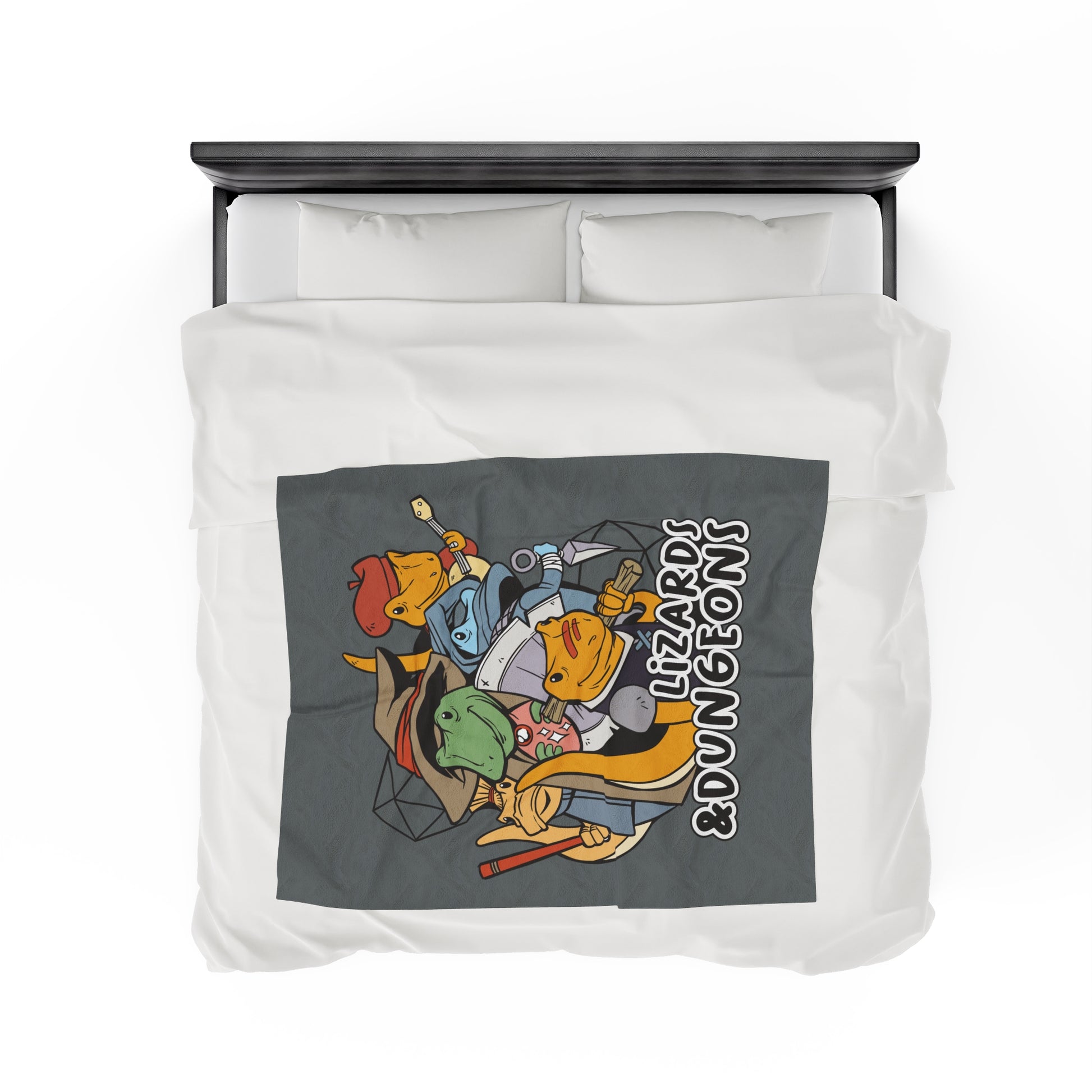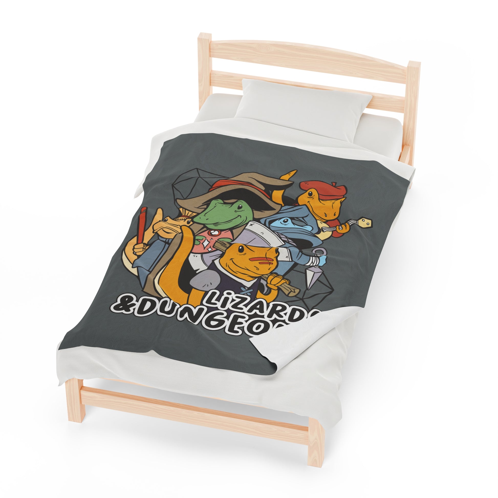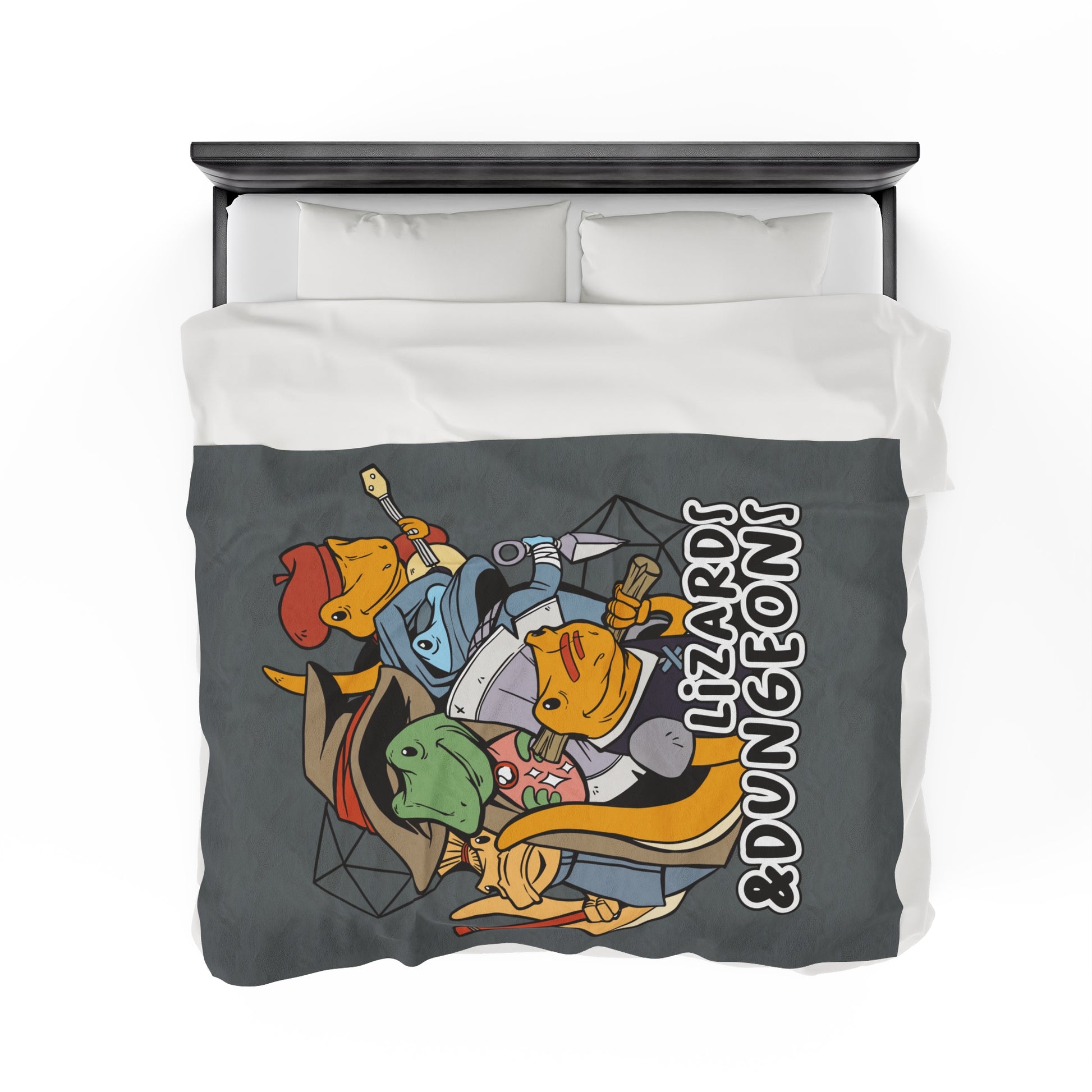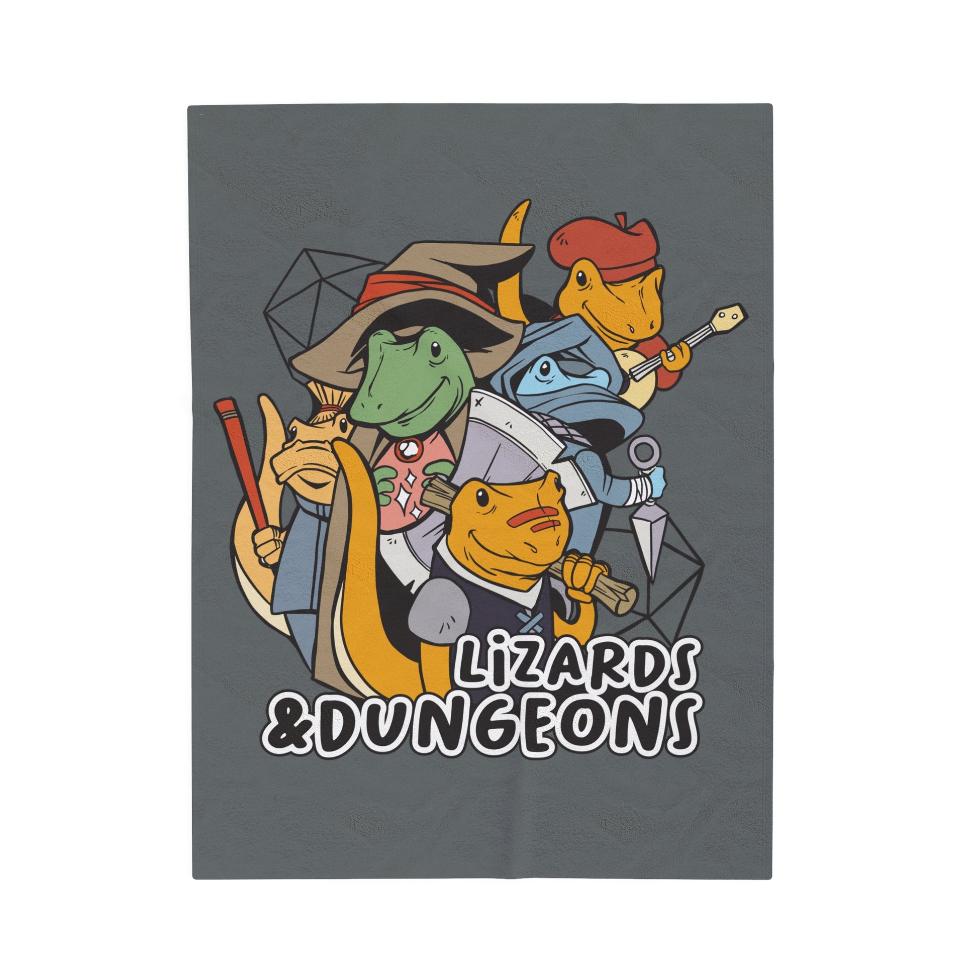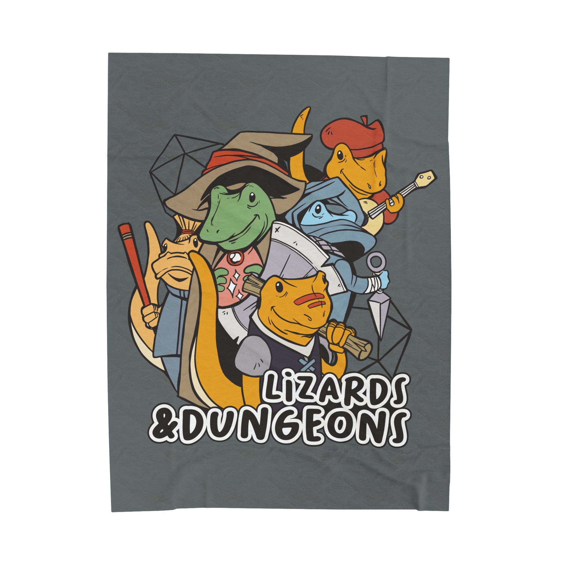 Dungeons and Lizards Velveteen Plush Throw Blanket | Funny Lizard Lover Gift | Nerdy Parody Blanket | Fantasy Roleplaying Cozy Reptile Decor
