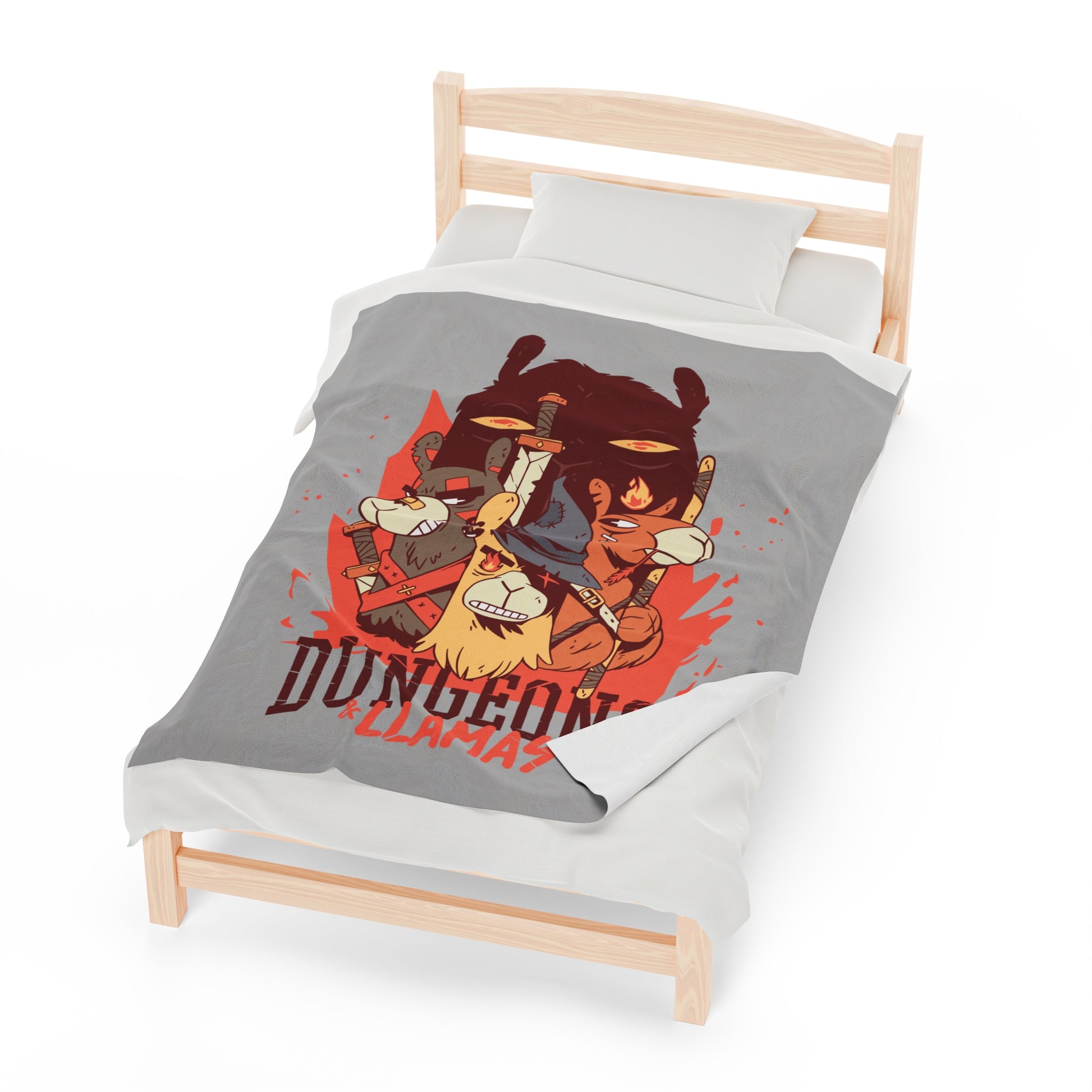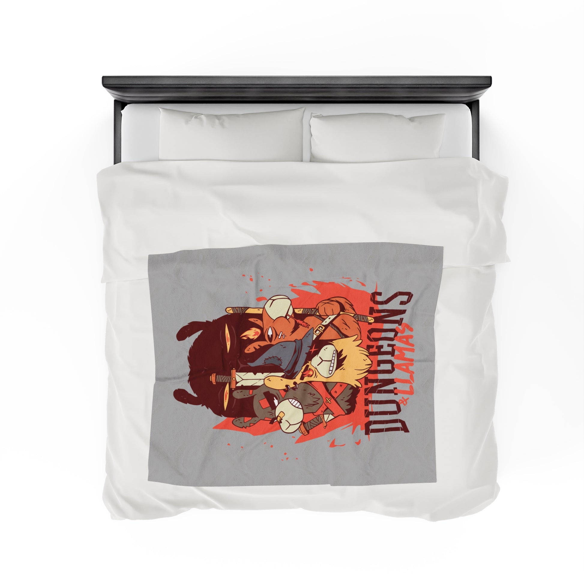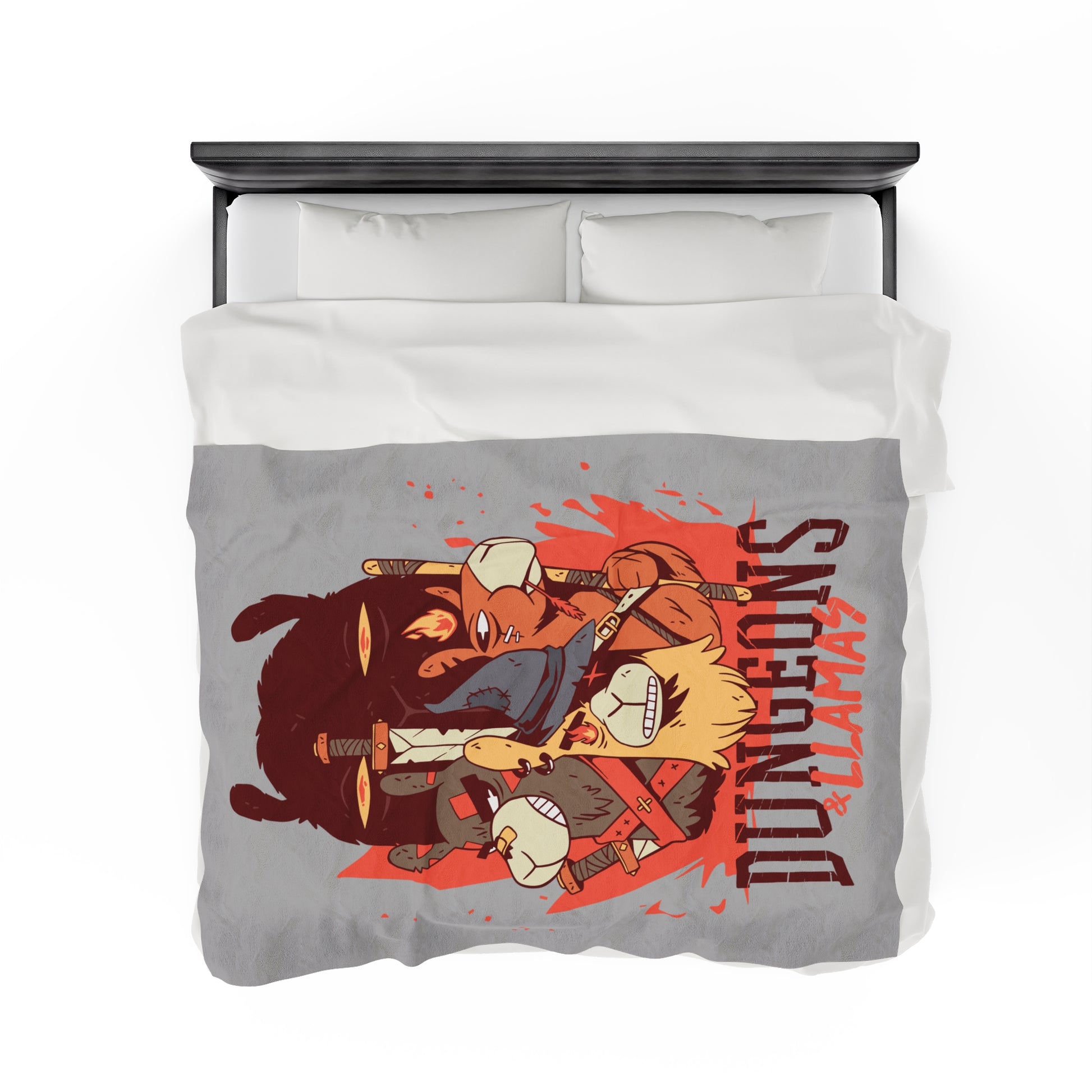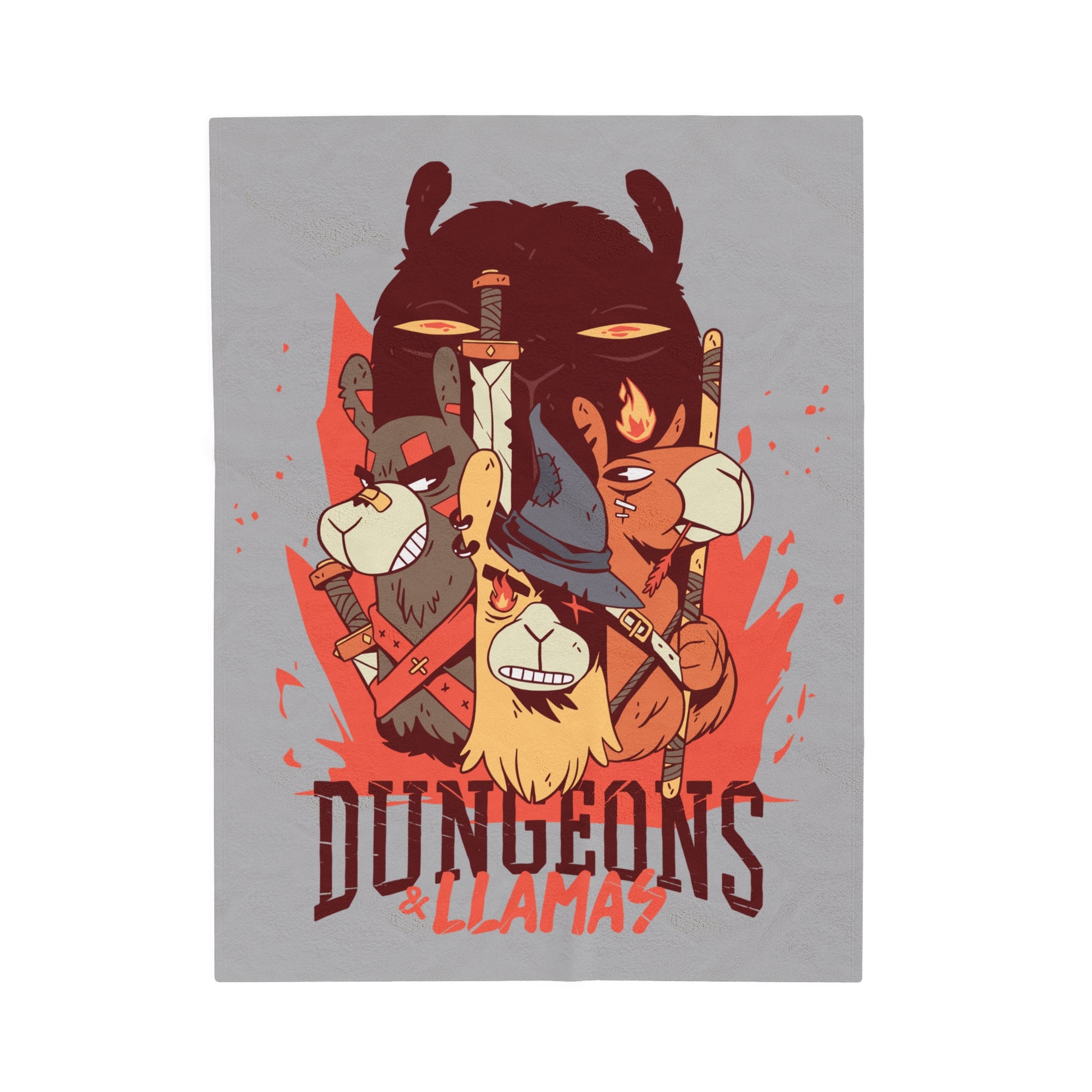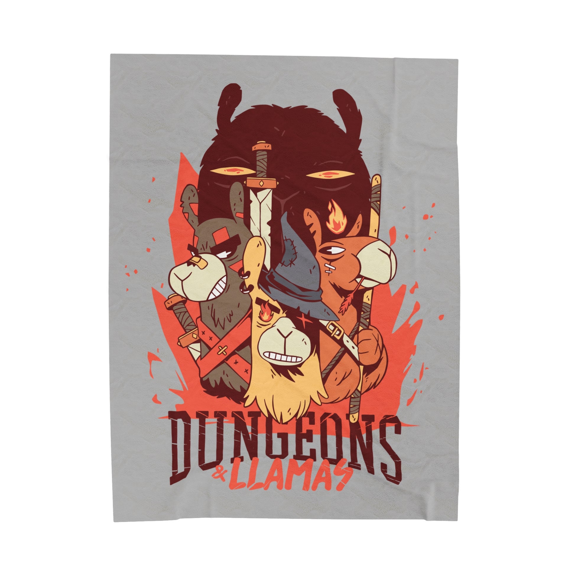 Dungeons and Llamas Velveteen Plush Throw Blanket | Funny Llama Lover Gift | Nerdy Parody Blanket | Fantasy Roleplaying Cozy Alpaca Decor