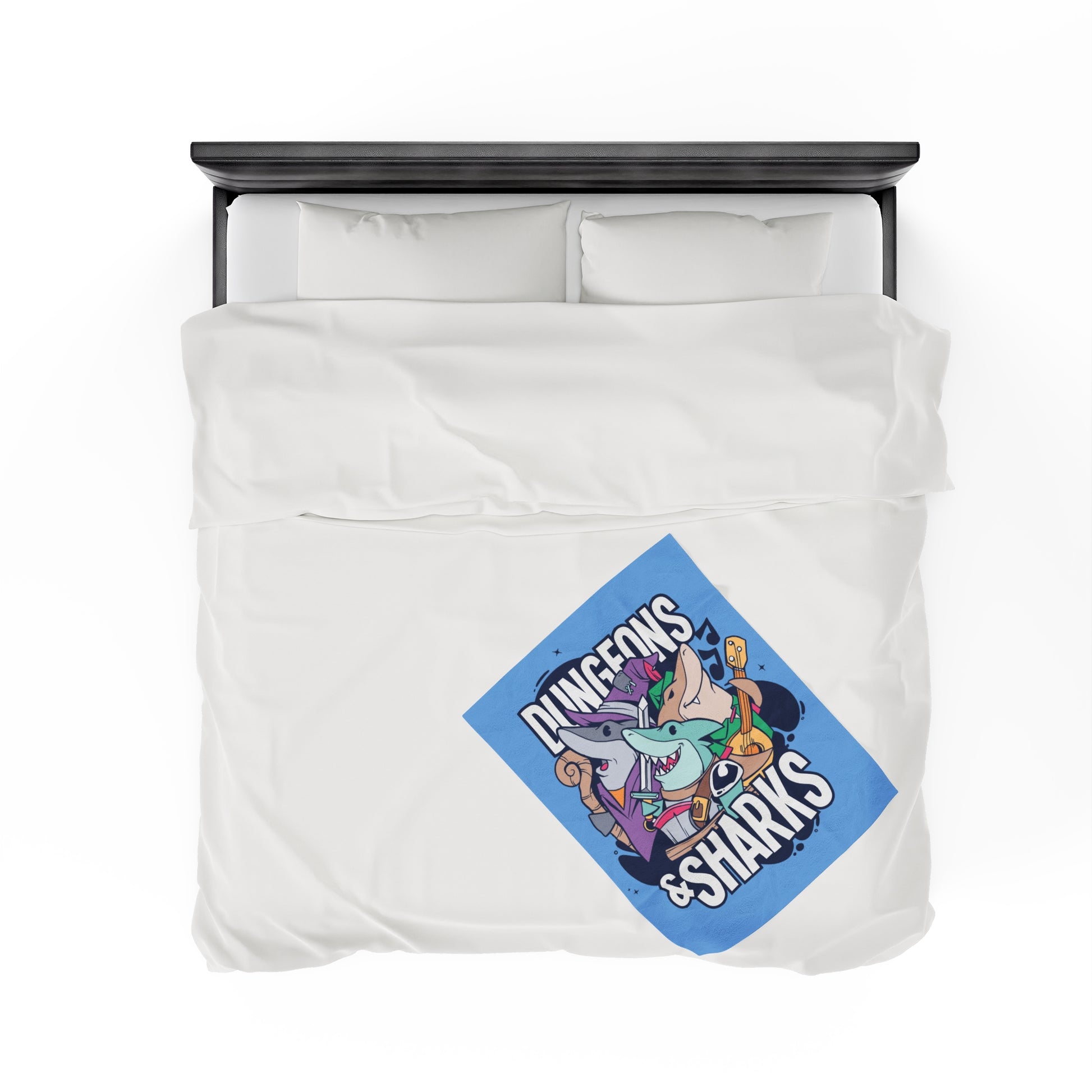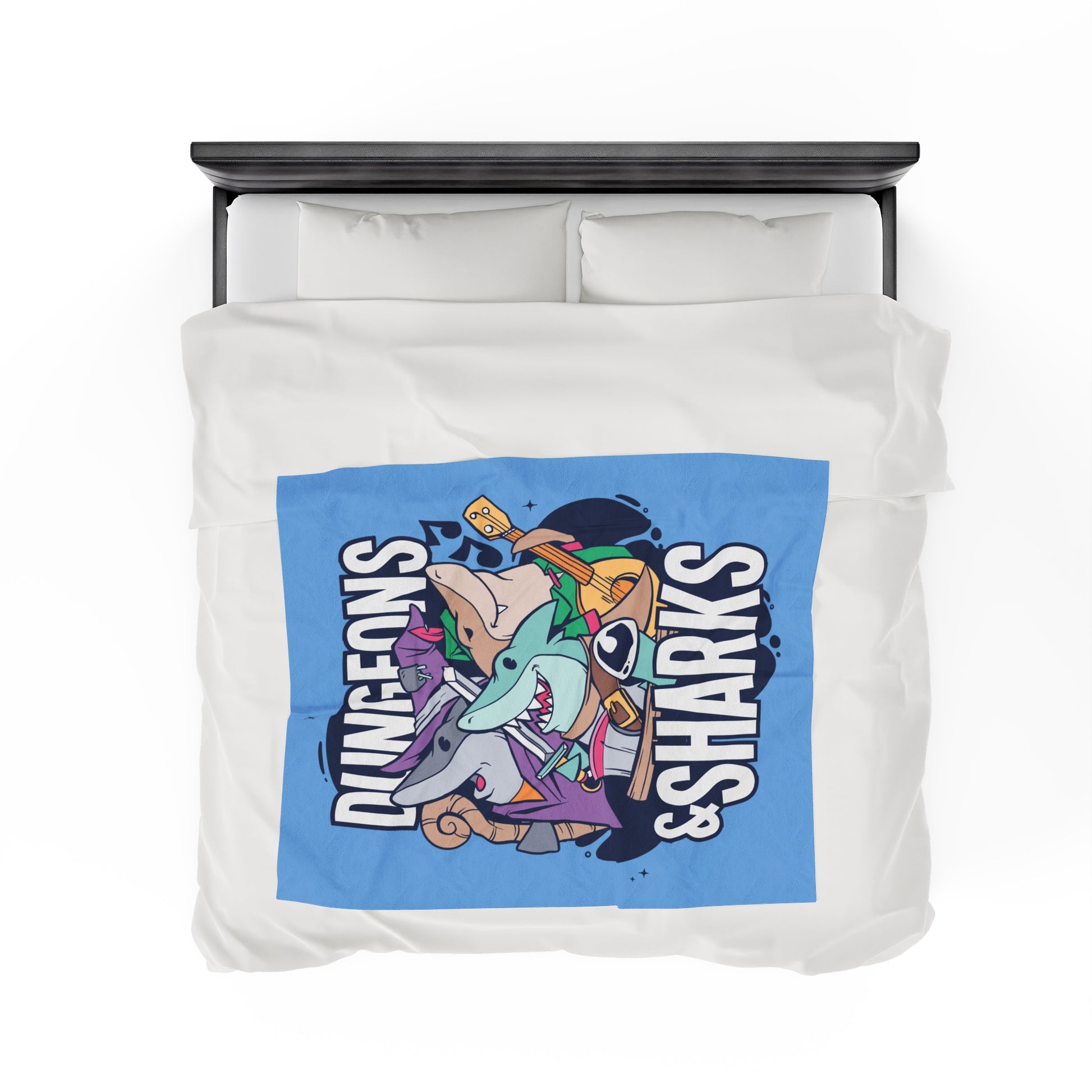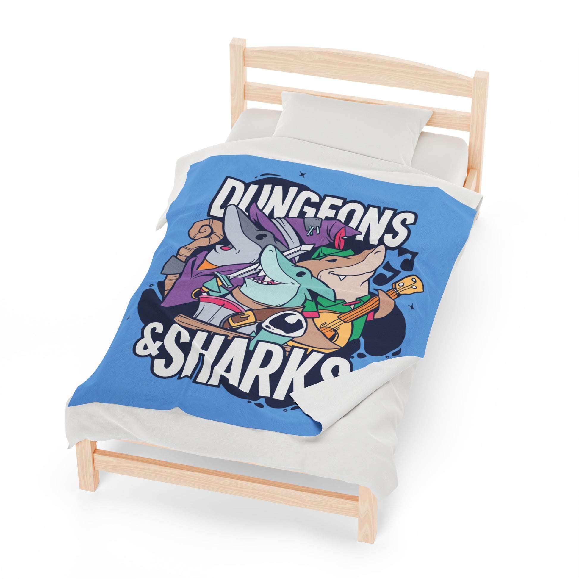 Dungeons and Sharks Velveteen Plush Throw Blanket | Funny Shark Lover Gift | Nerdy Parody Blanket | Fantasy Roleplaying Cozy Ocean Decor