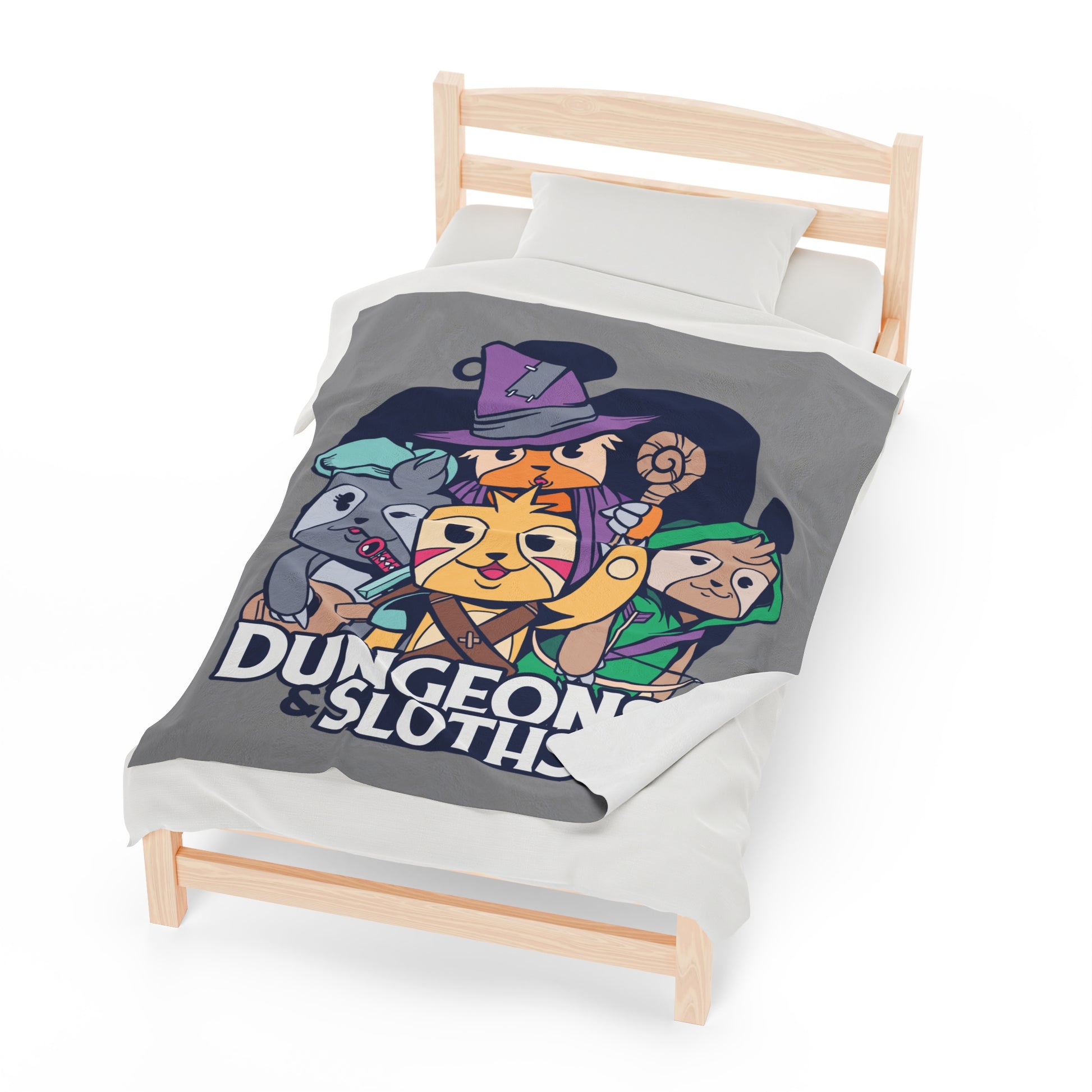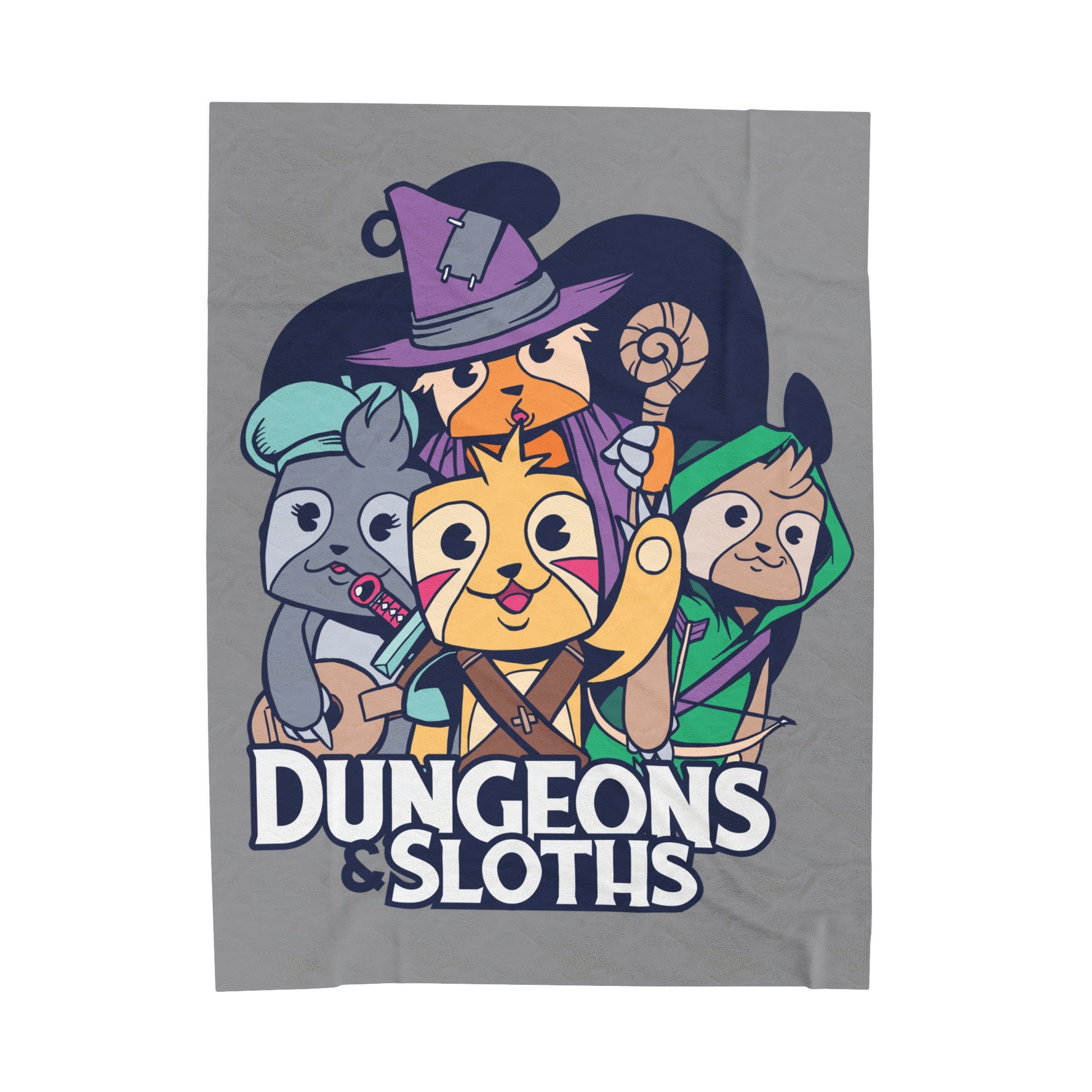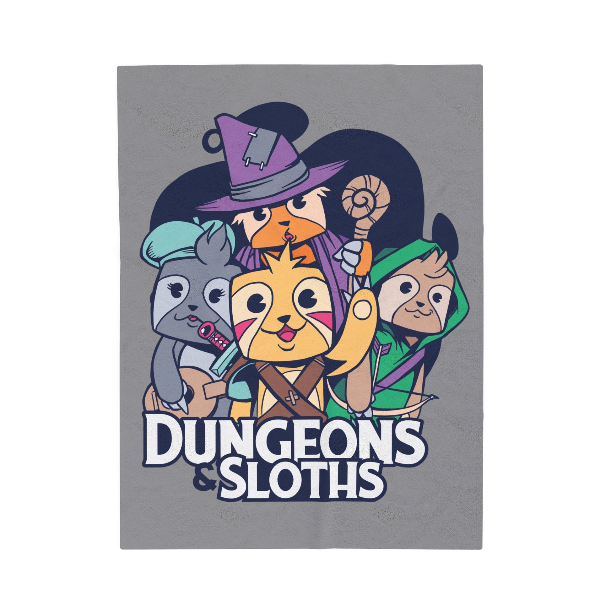 Dungeons and Sloths Velveteen Plush Throw Blanket | Funny Sloth Lover Gift | Nerdy Parody Blanket | Fantasy Roleplaying Cozy Lazy Decor