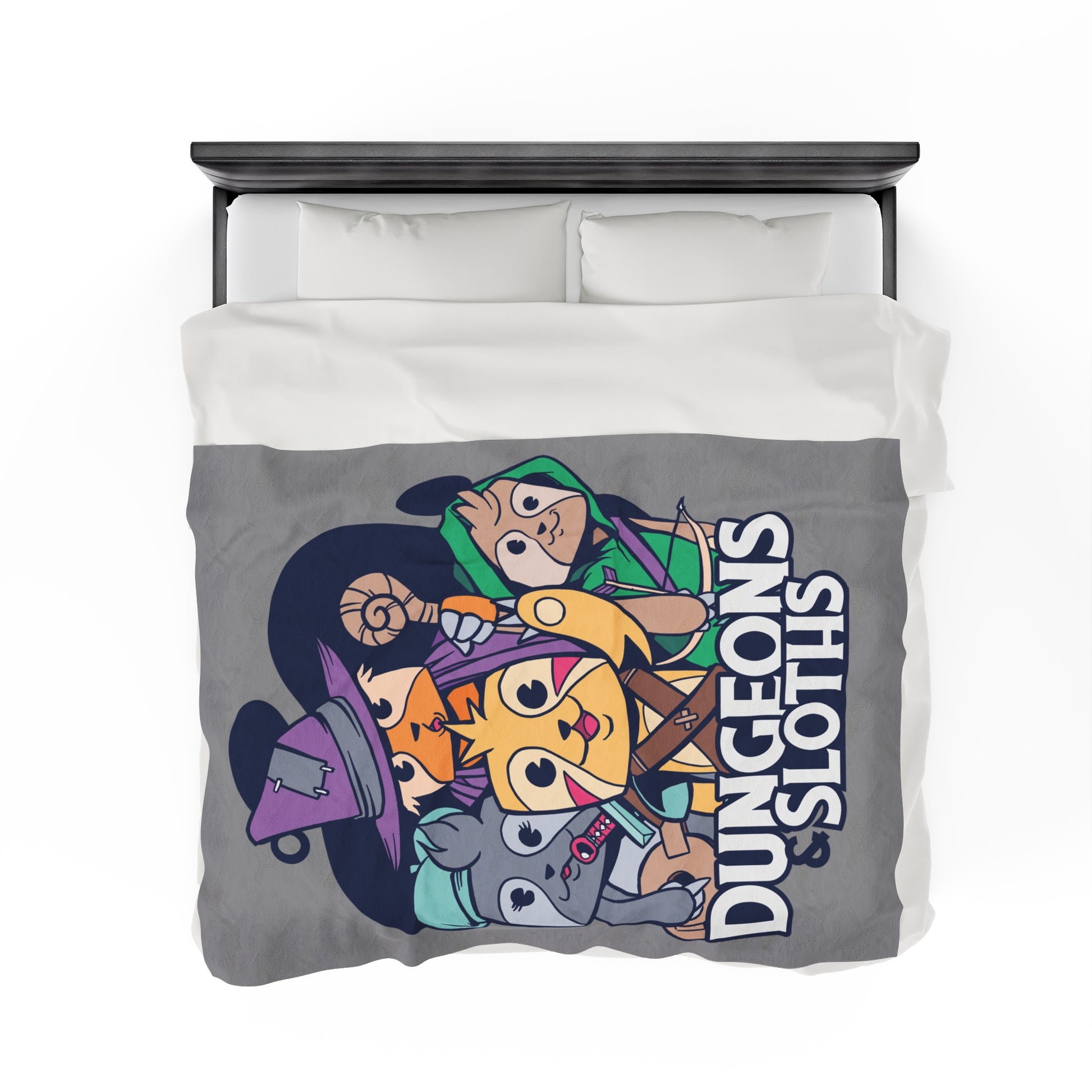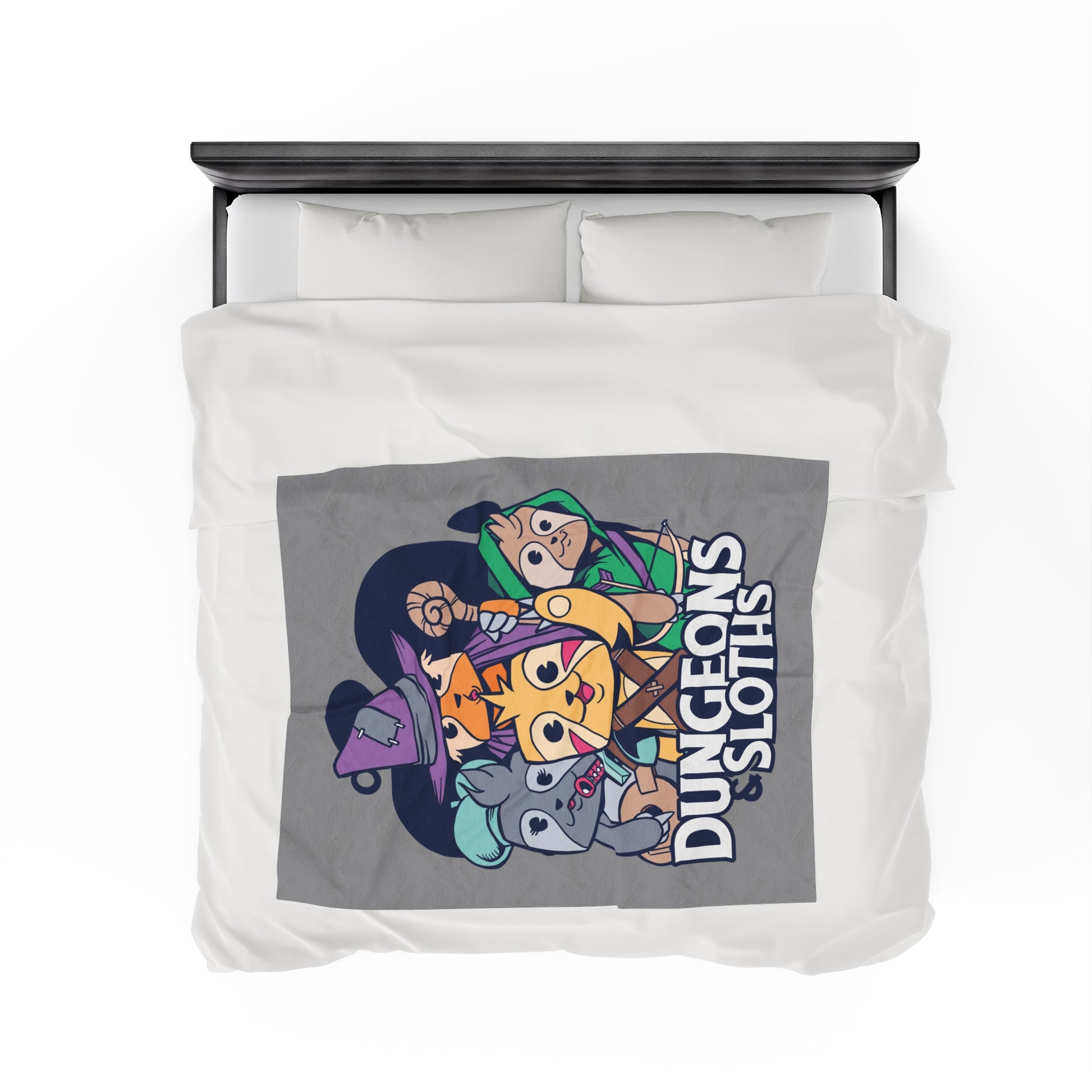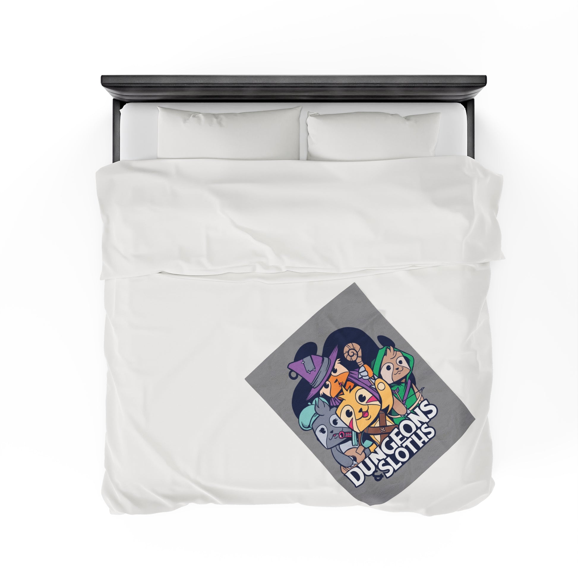 Dungeons and Sloths Velveteen Plush Throw Blanket | Funny Sloth Lover Gift | Nerdy Parody Blanket | Fantasy Roleplaying Cozy Lazy Decor