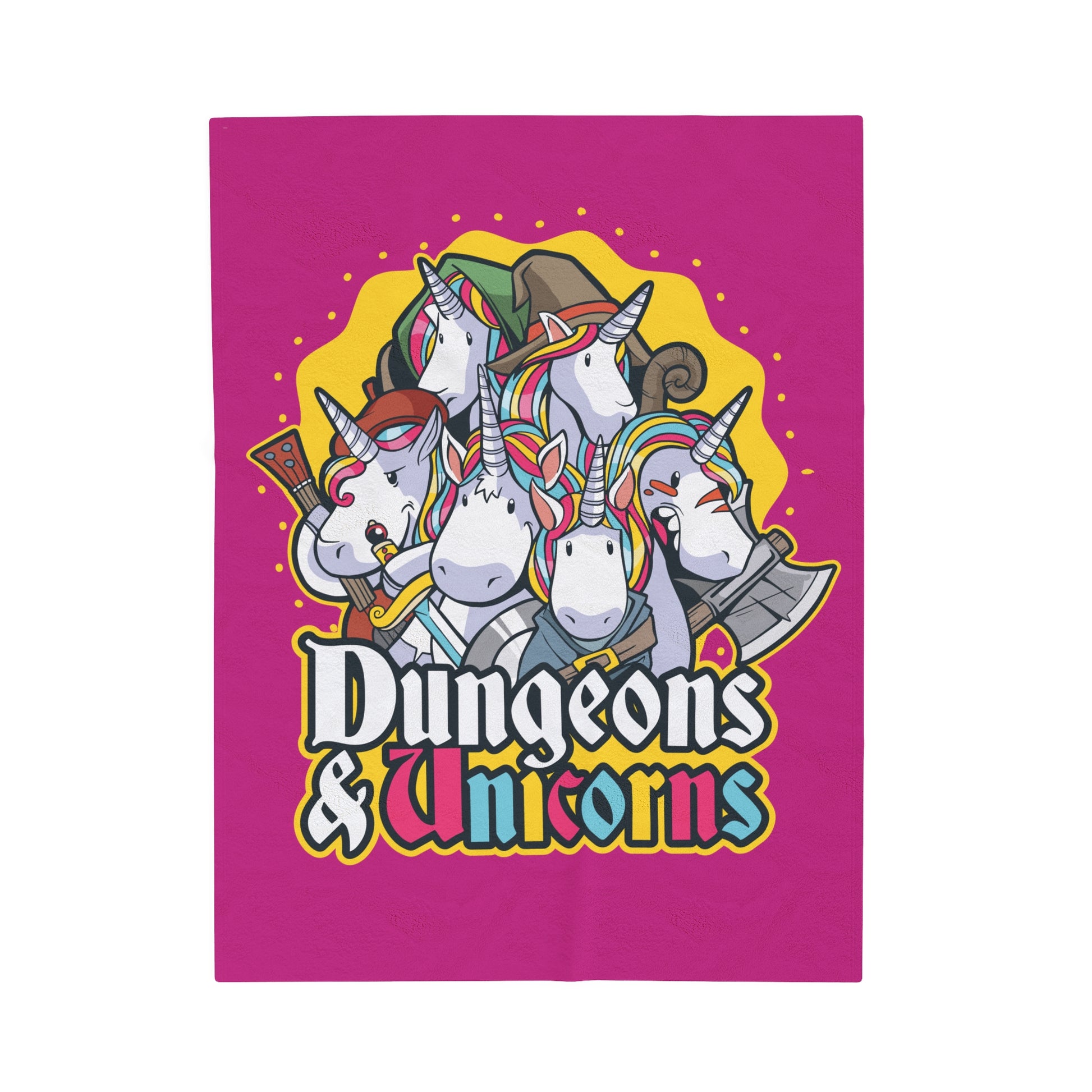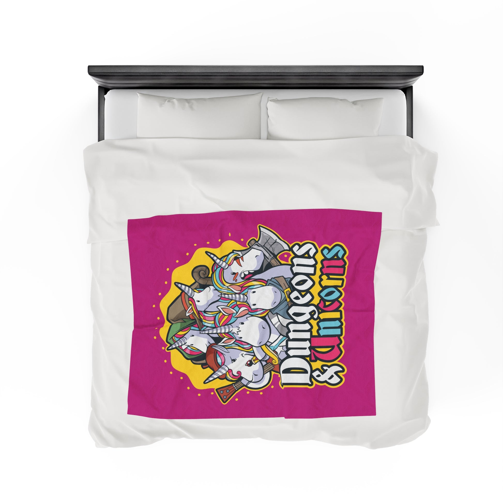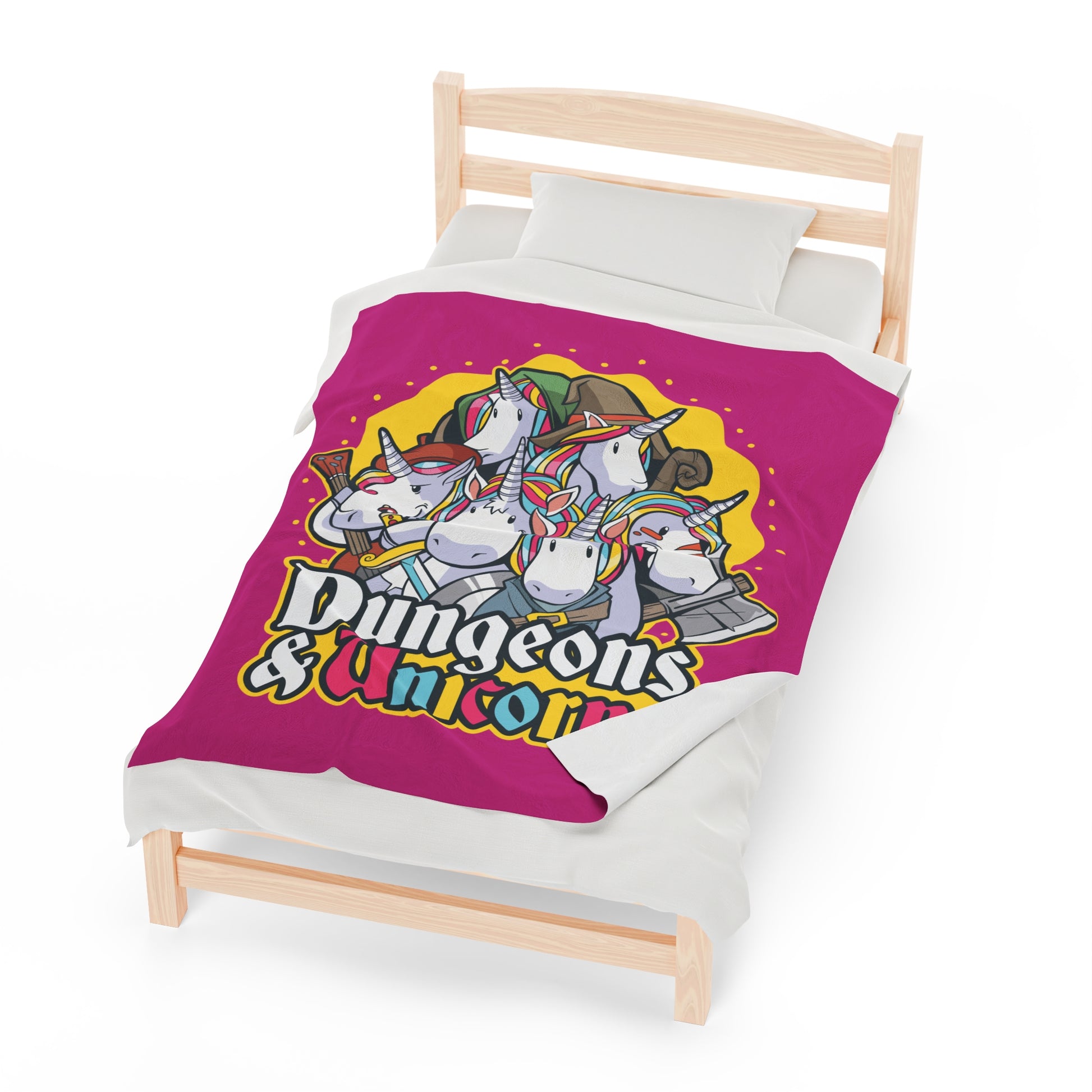 Dungeons and Unicorns Velveteen Plush Throw Blanket | Funny Unicorn Lover Gift | Nerdy Parody Blanket Fantasy Roleplaying Cozy Magical Decor