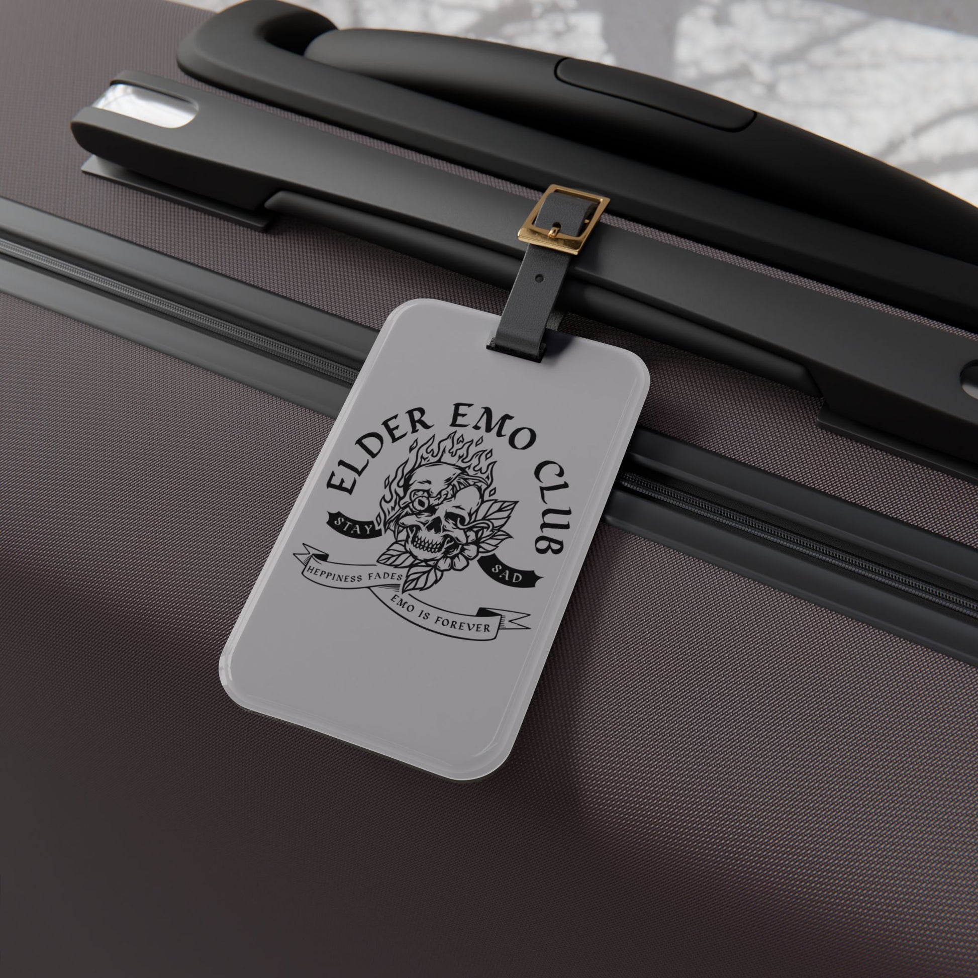 Elder Emo Club Luggage Tag | Emo Culture Travel Accessory | Happiness Fades Baggage ID | Gothic Punk Travel Accessory Not Just a Phase