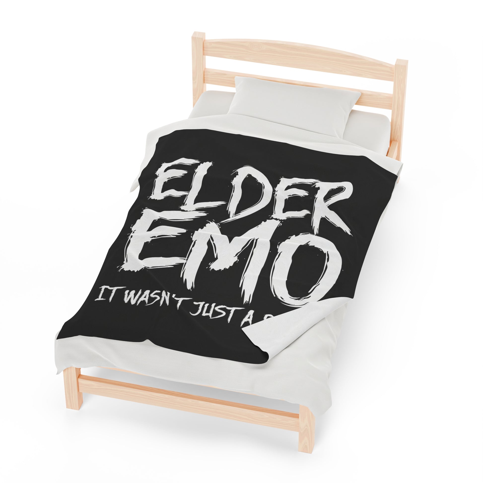 Elder Emo Not Just A Phase Velveteen Plush Throw Blanket White Dark Aesthetic Gift for Goths & Punks | Emo Decor Nostalgic Alternative Decor