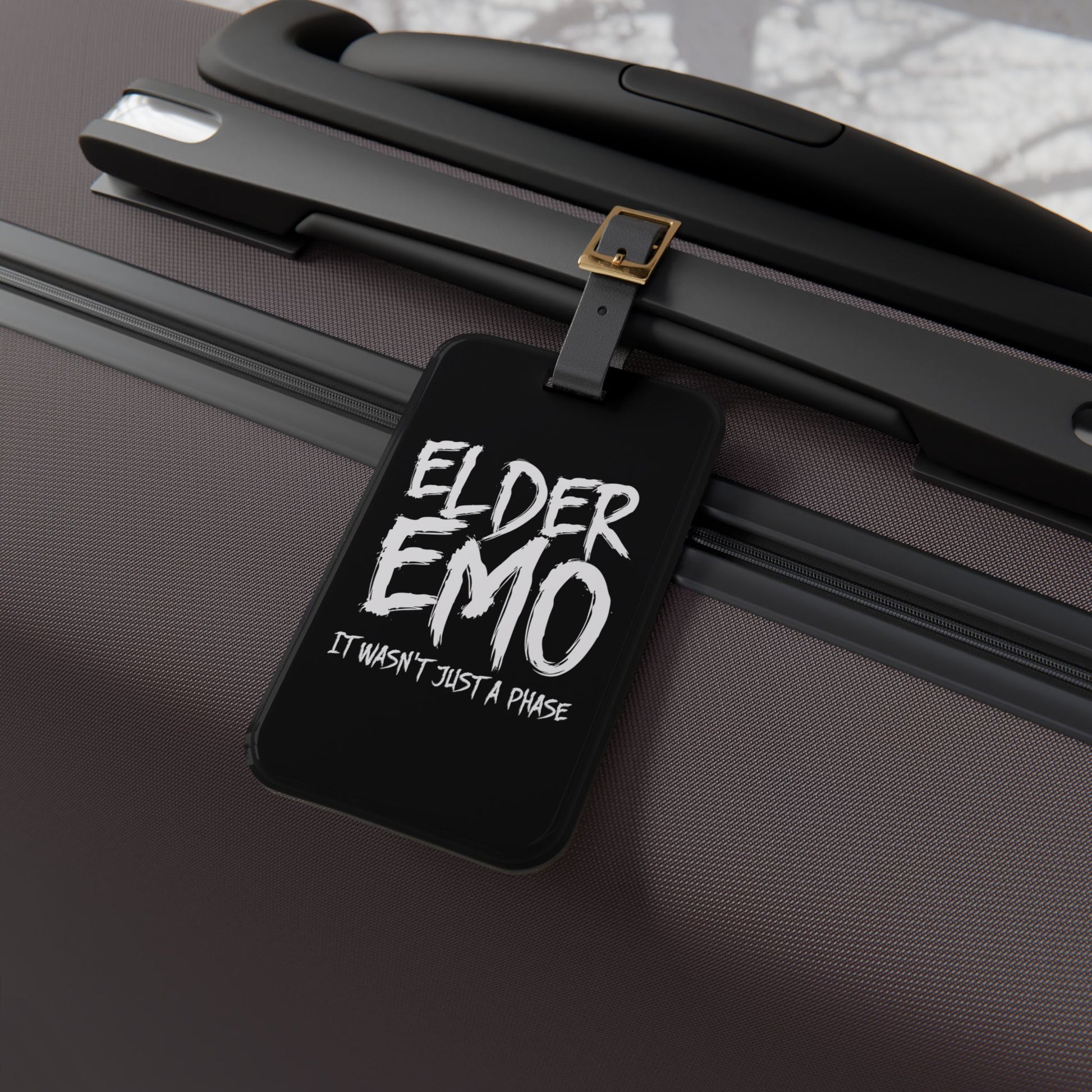 Elder Emo Pride Luggage Tag | Dark Aesthetic Travel Accessory Awesome Gift Goth Punk Fans Baggage ID Not Just a Phase Emo GIft Black Tag
