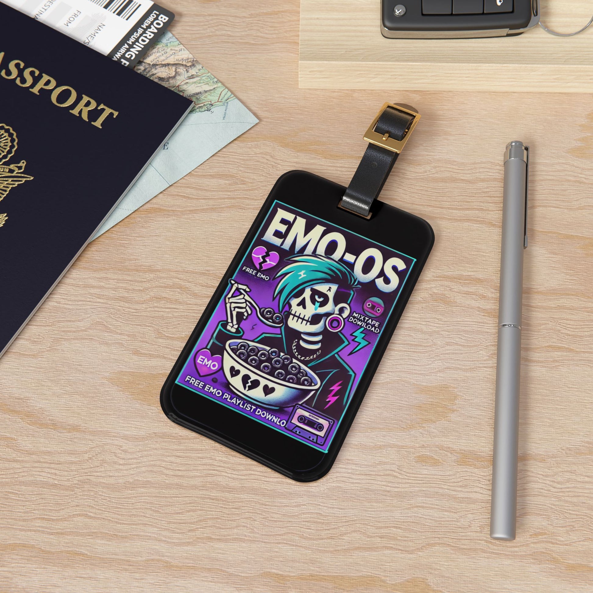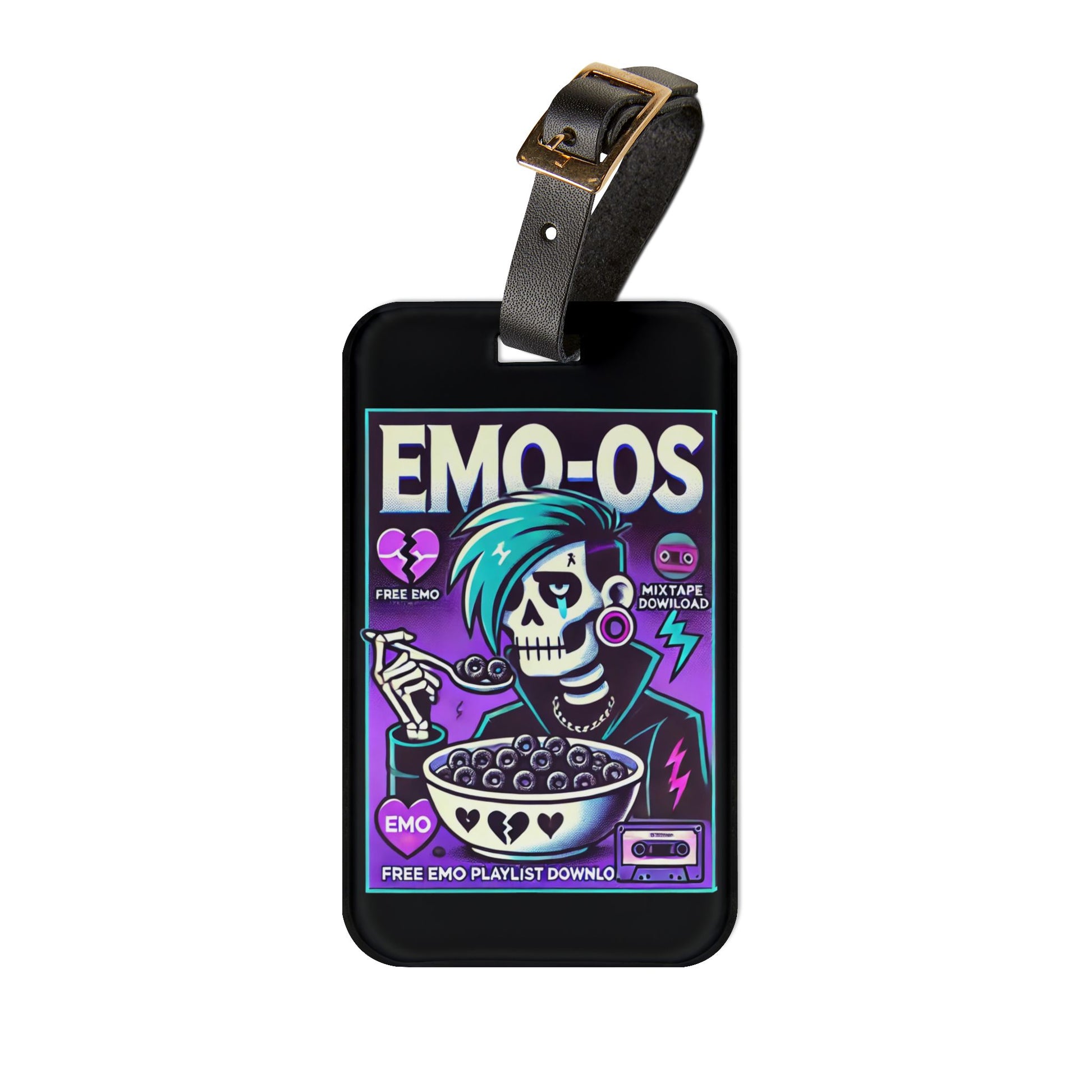 Emo Os Cereal Luggage Tag | Funny Elder Emo Baggage ID | Goth Cereal Lover Travel Accessory | Cute Alternative Style Gift for Emo Fans
