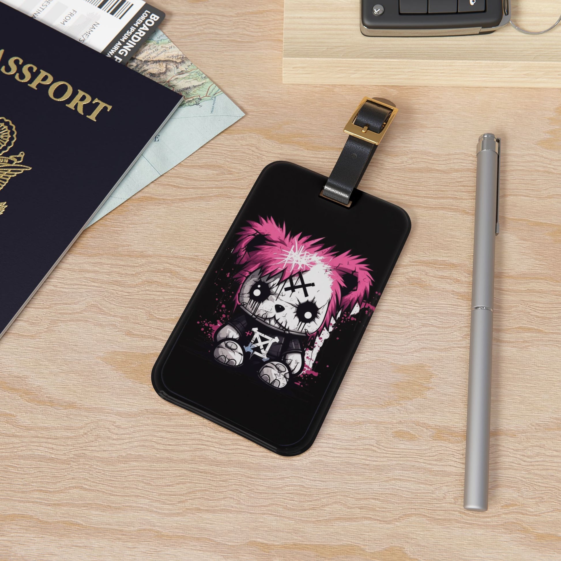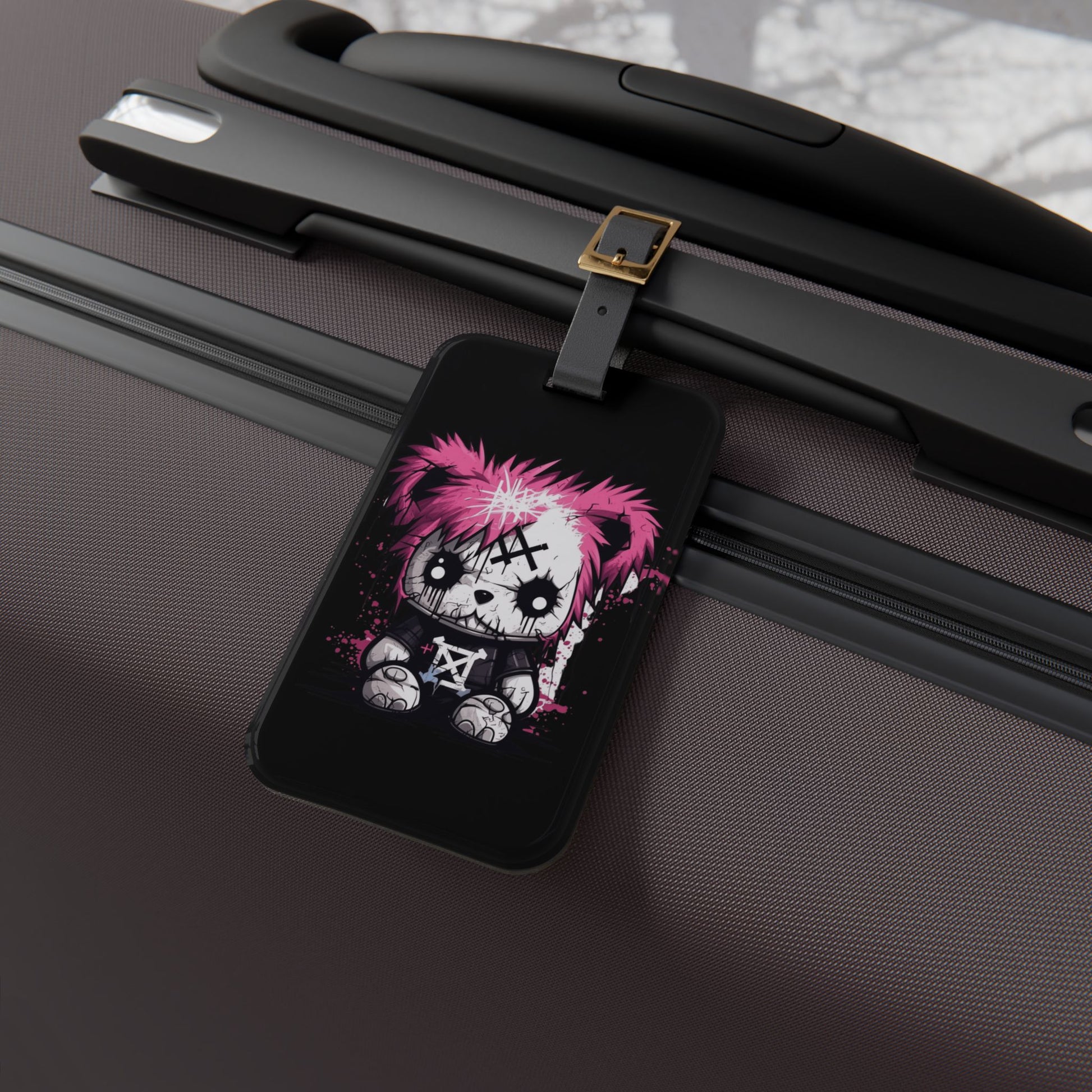 Emo Pink Hair Punk Scene Bear Luggage Tag Edgy Alternative Travel Accessory Goth Bear Baggage ID Perfect Punk Fashion Enthusiasts Elder Emos