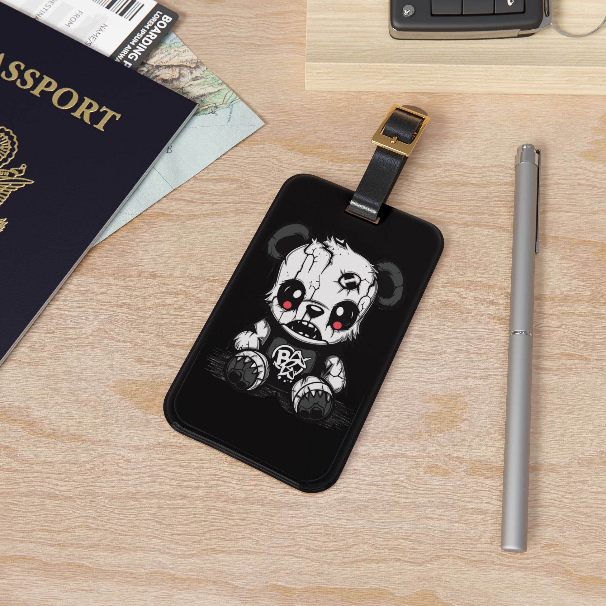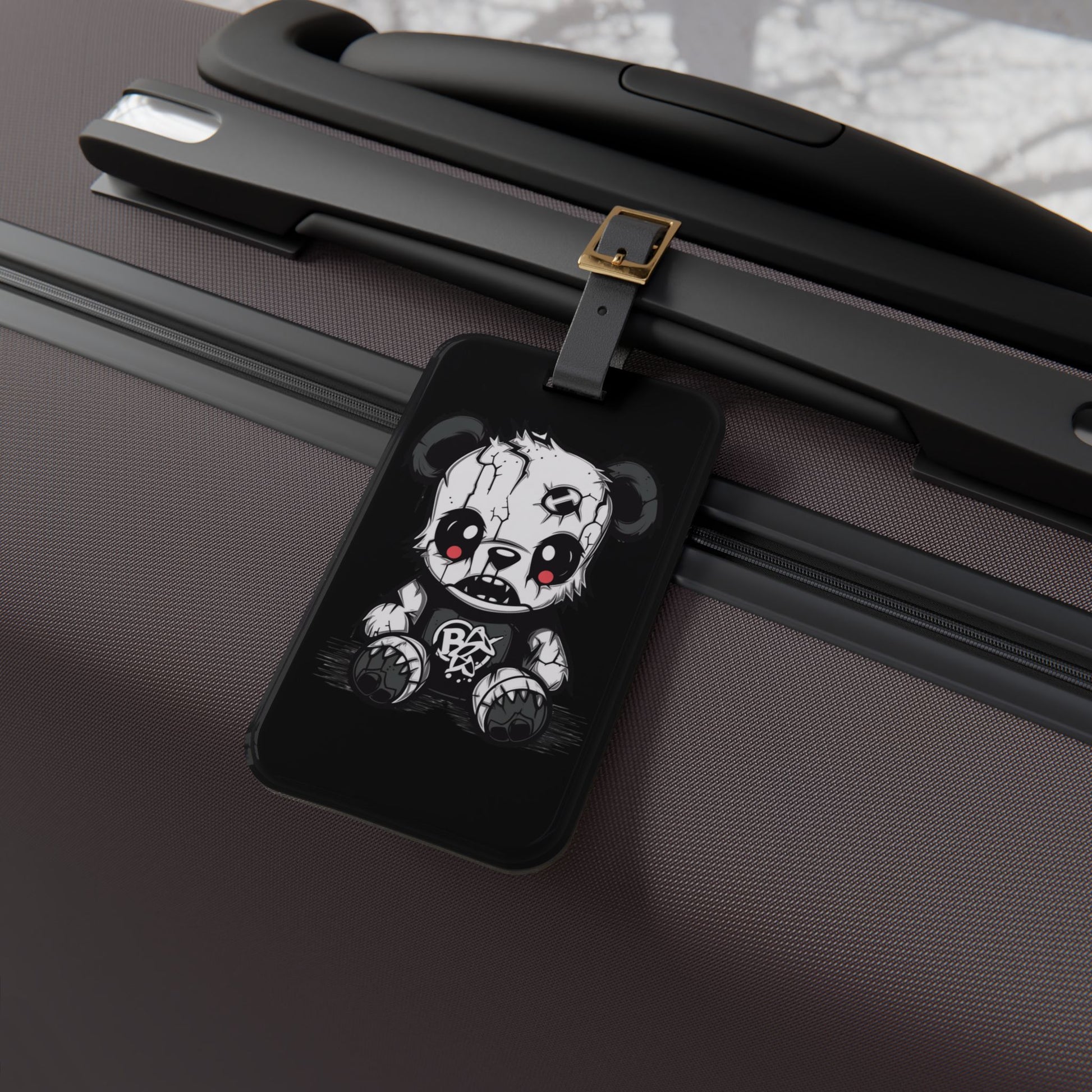 Emo Punk Black White Death Bear Luggage Tag | Edgy Gothic Travel Accessory | Baggage ID Alternative Fashion Lovers | Perfect Elder Emo Style