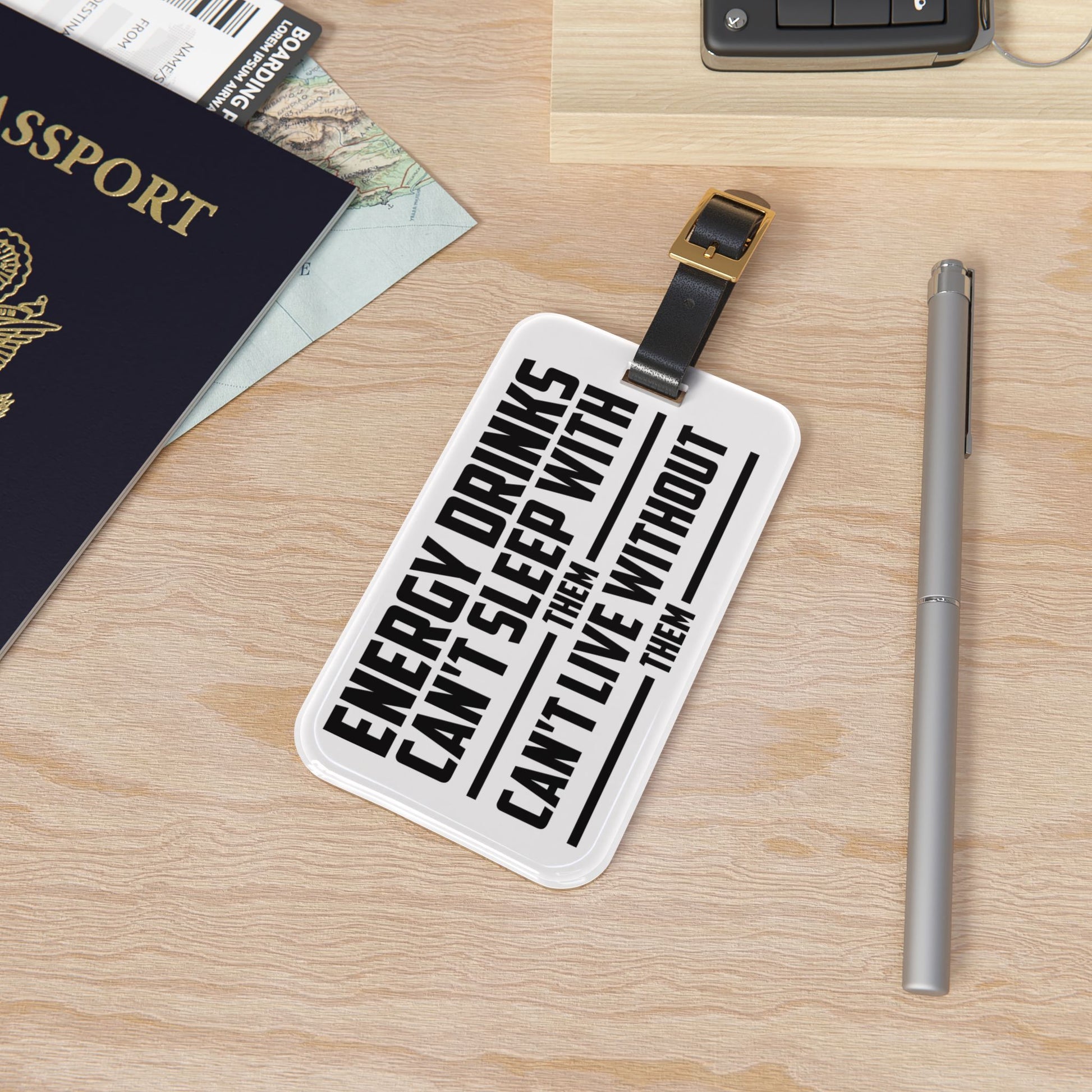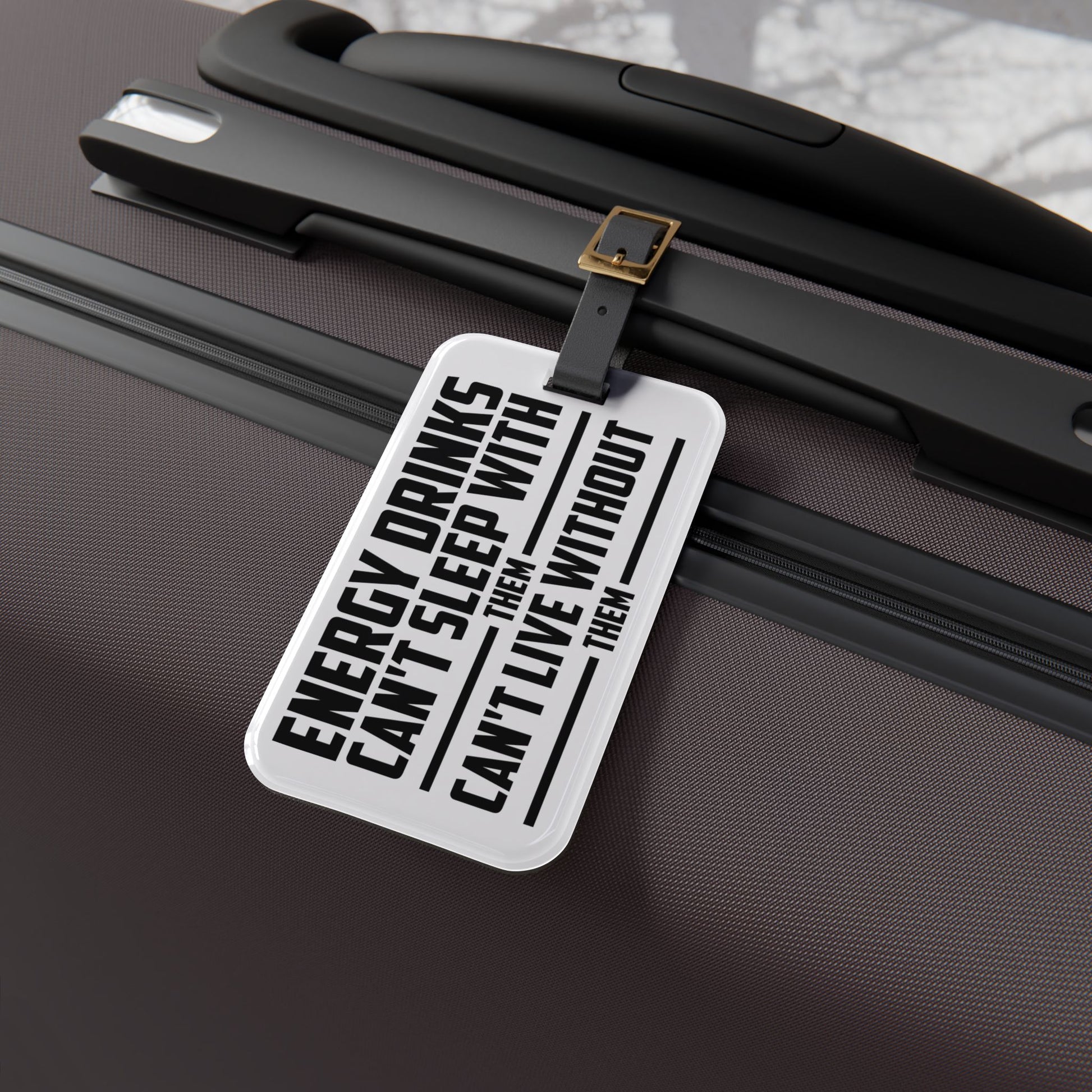 Energy Drinks Cant Sleep With Them Luggage Tag | Funny Drink Humor Baggage ID Blue Collar Style Travel Accessory Hilarious Quotes Travelers