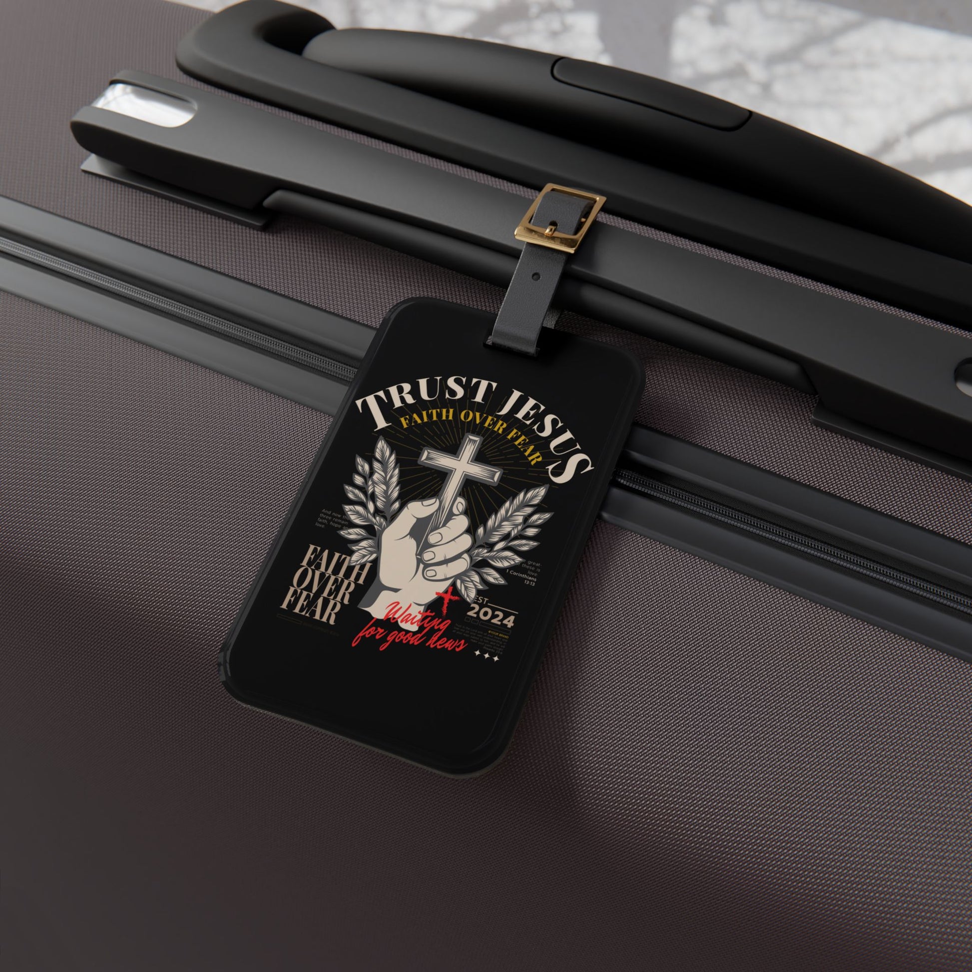 Faith Over Fear Trust Jesus Luggage Tag | Faith-Based Christian Baggage ID | Streetwear Jesus Art Travel Accessory | Unique Christian Gifts