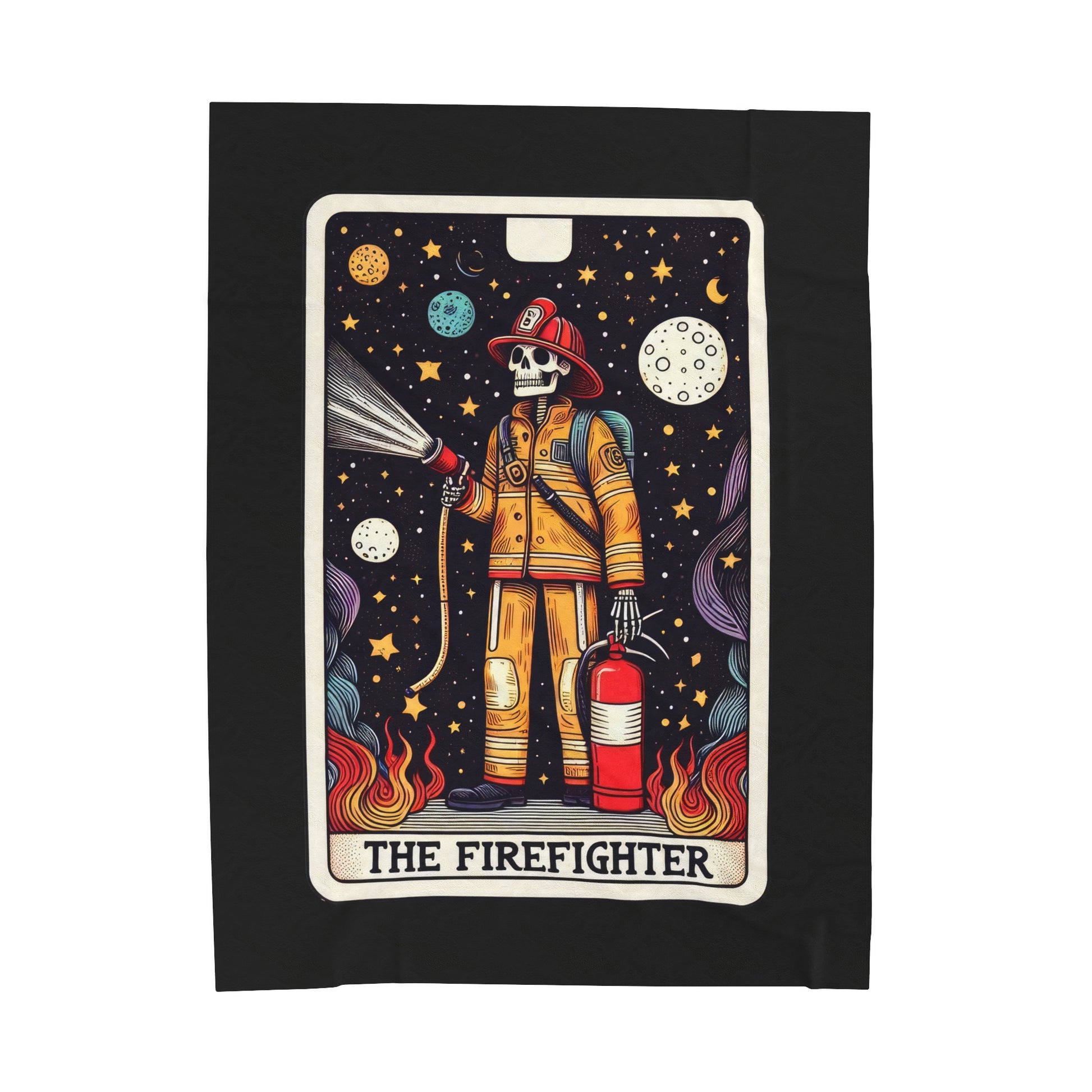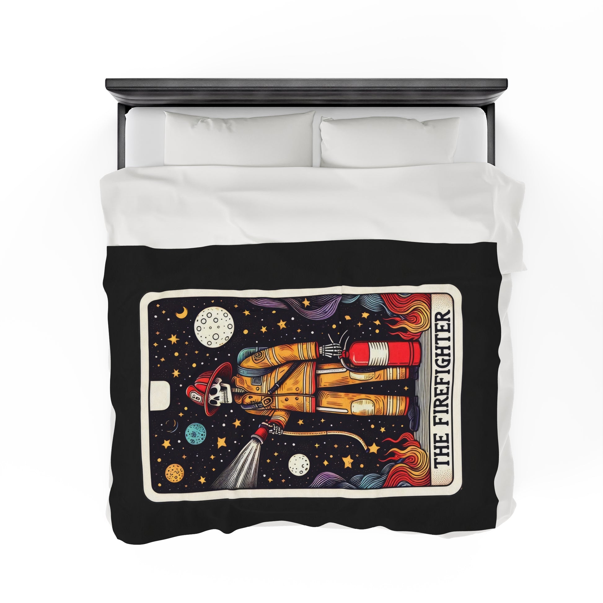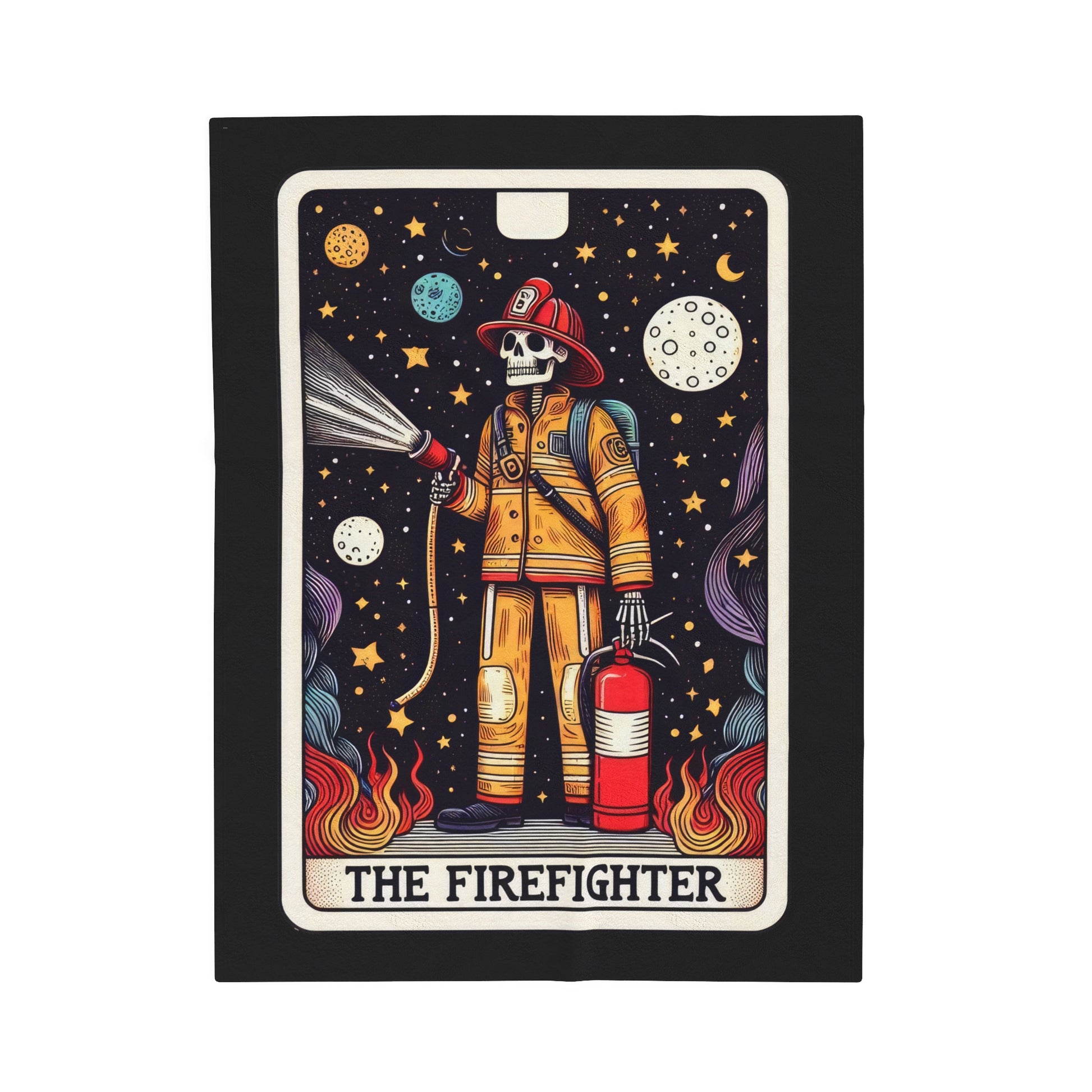 Firefighter Tarot Card Velveteen Plush Throw Blanket | Heroic Firefighter Gift Cozy Blanket Everyday Heroes Tarot-Inspired Firefighter Decor