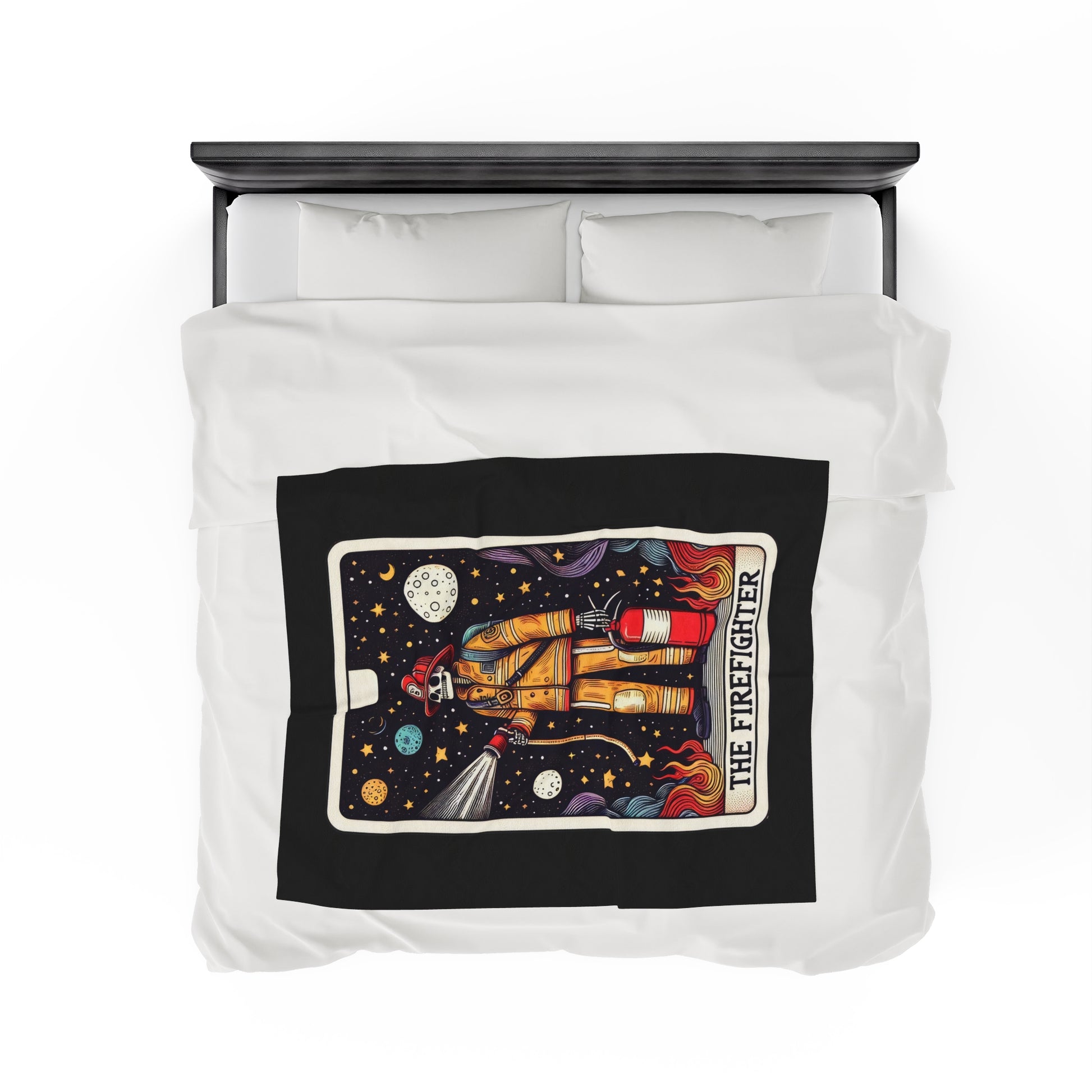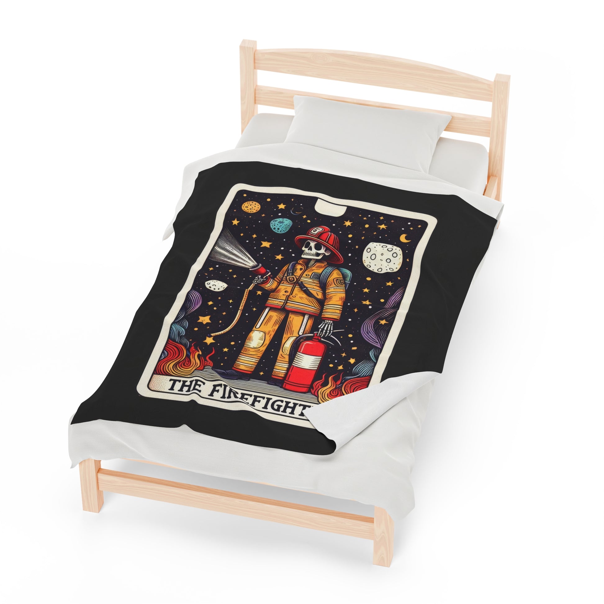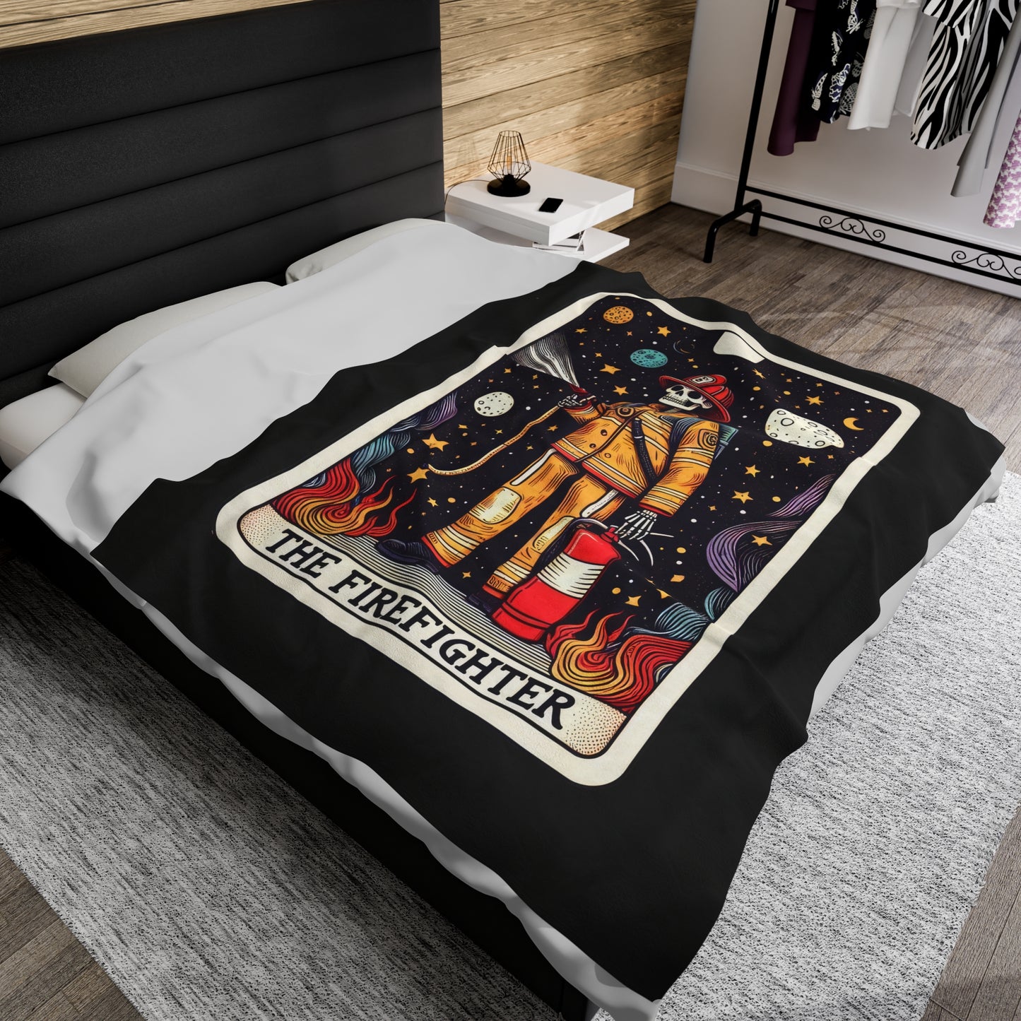 Firefighter Tarot Card Velveteen Plush Throw Blanket | Heroic Firefighter Gift Cozy Blanket Everyday Heroes Tarot-Inspired Firefighter Decor