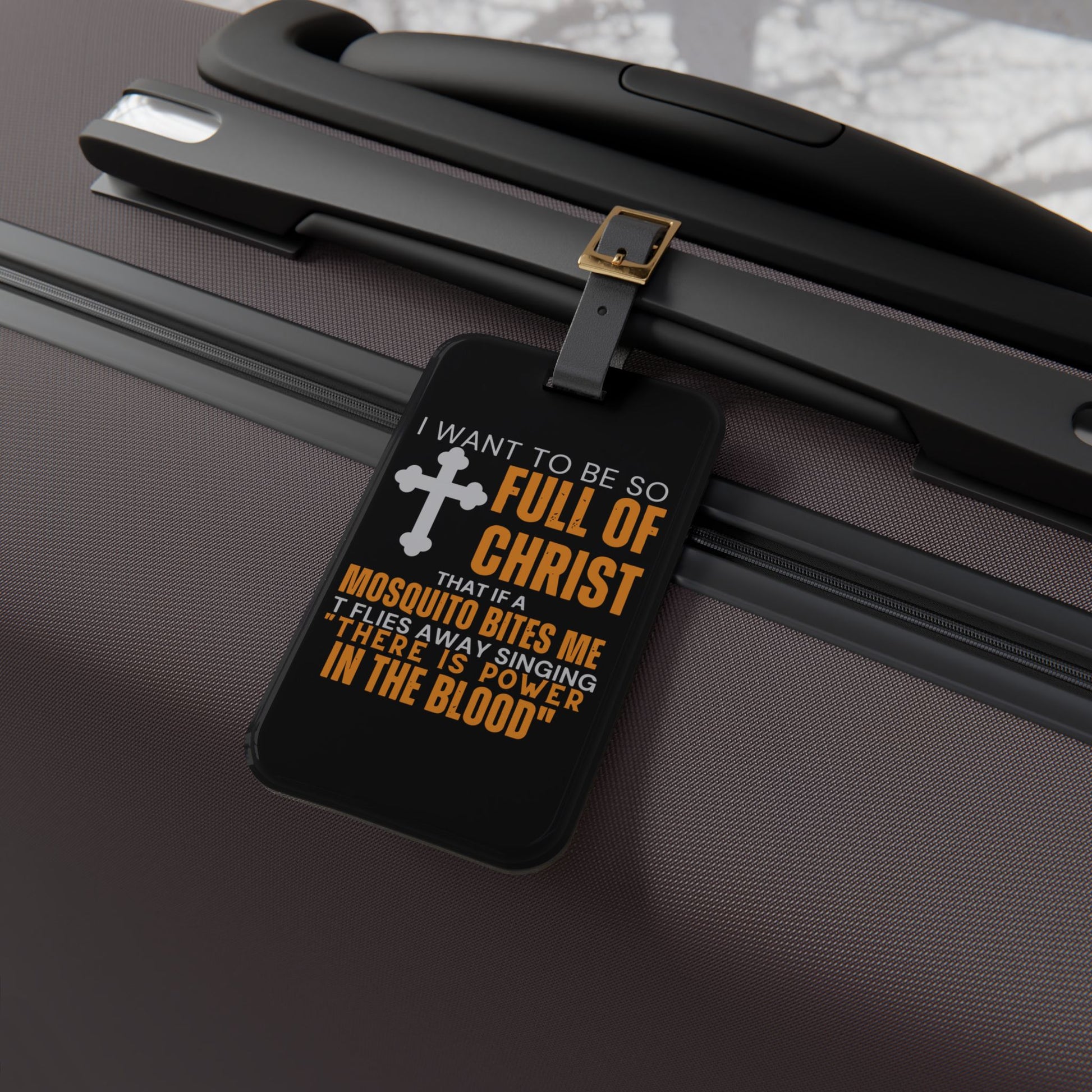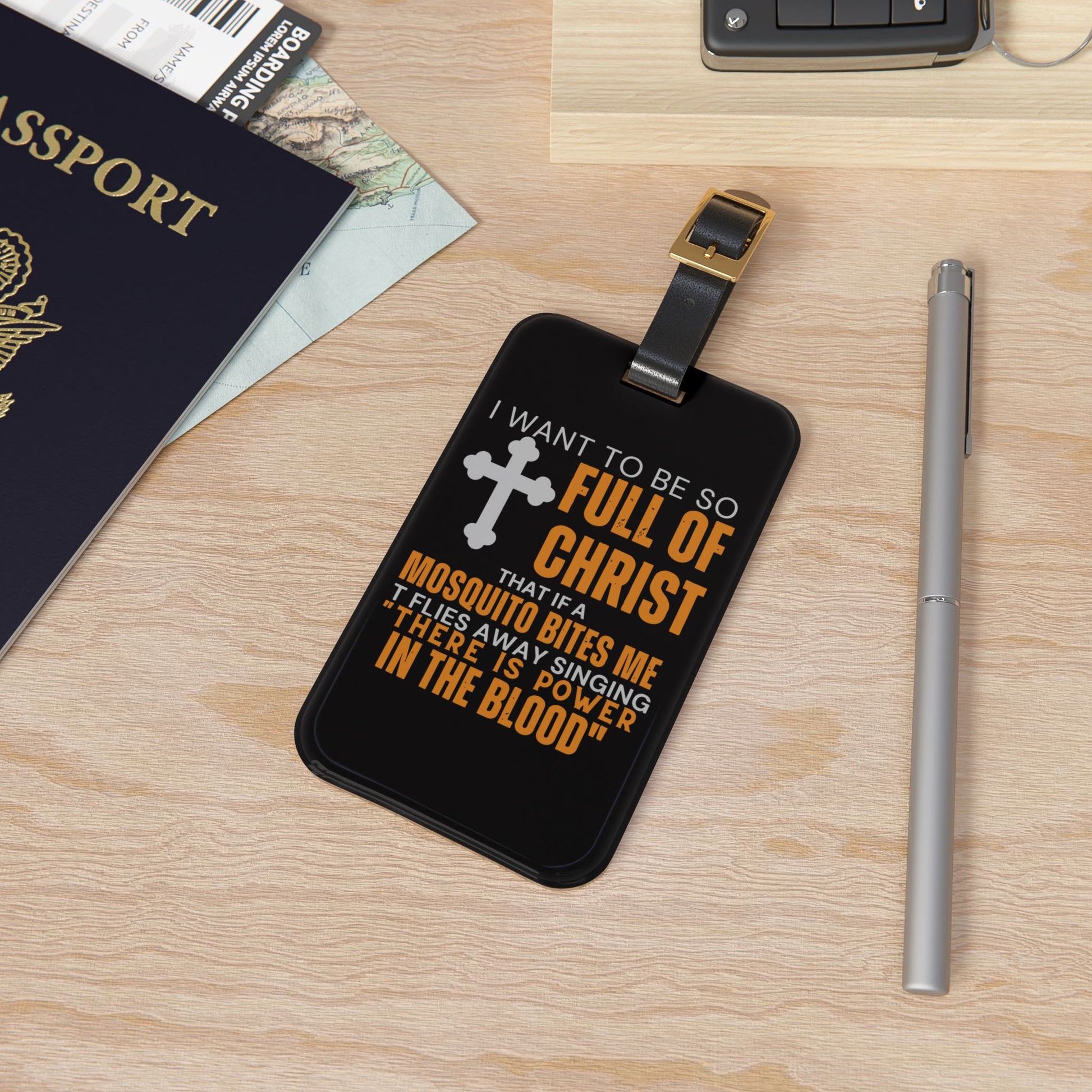 Full of Christ Luggage Tag | Funny Christian Travel Accessory | Jesus Humor Baggage ID Power in Jesus Blood Faith Based Jokes Christian GIft