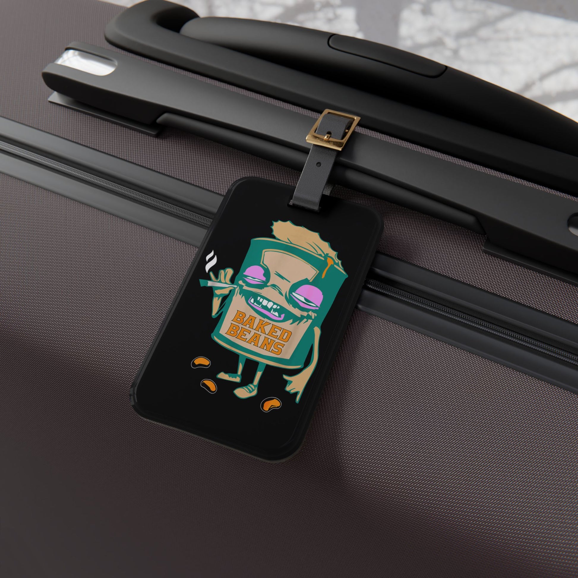 Funny Baked Beans Luggage Tag | Cannabis Humor Baggage ID | Stoner Travel Accessory | Stoner Food Jokes Adult Jokes Funny Puns Stoner Gift