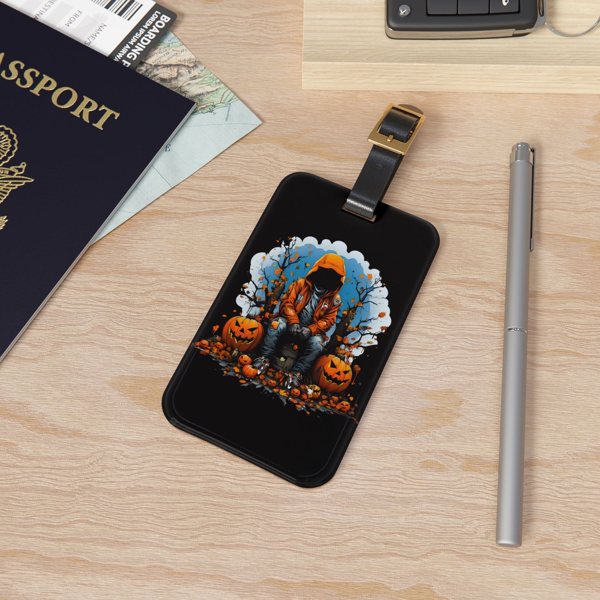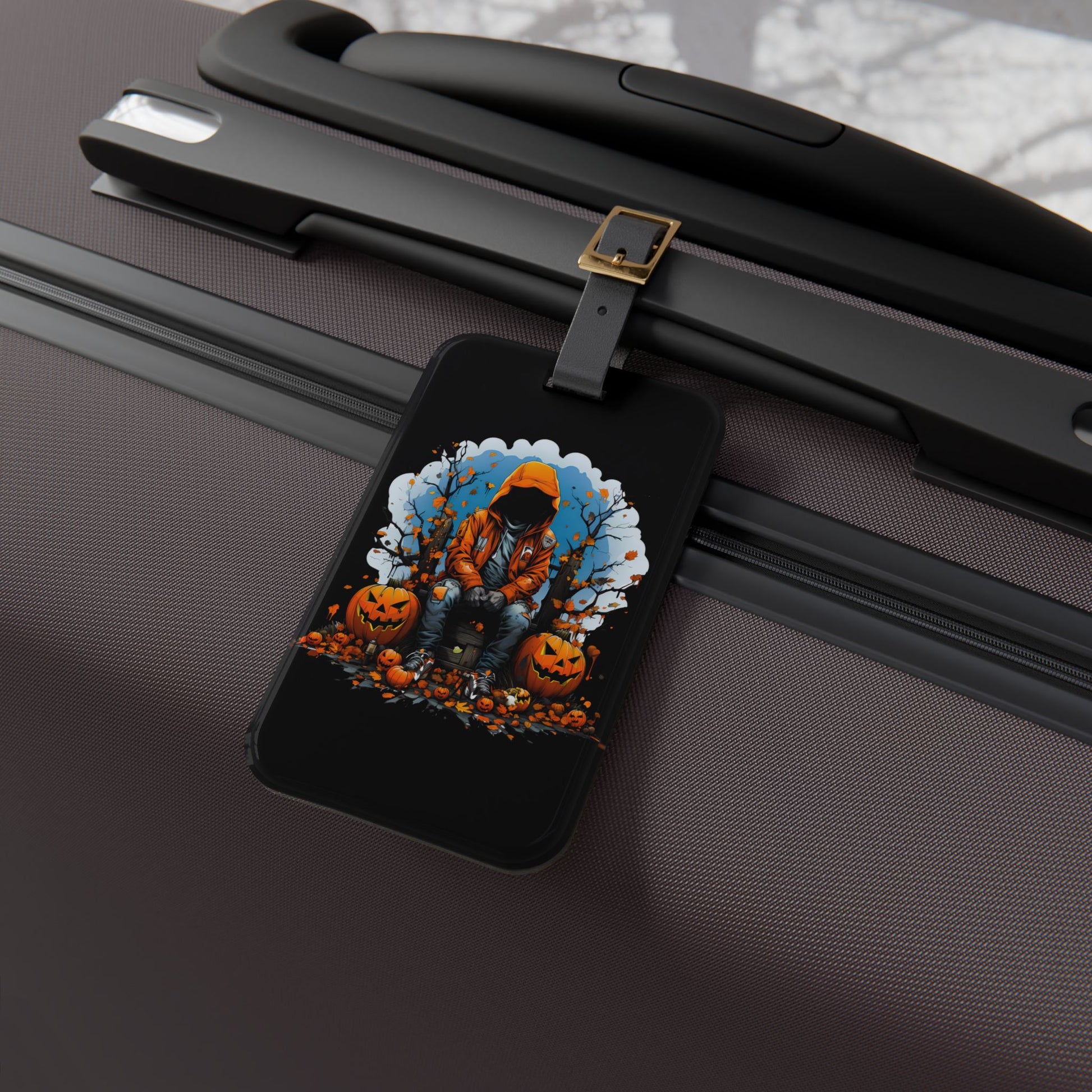 Gangster Pumpkin Sitting Down Luggage Tag | Hip Hop Jack O Lantern Halloween Baggage ID | Urban Culture Pumpkin Travel Accessory Bad Batch