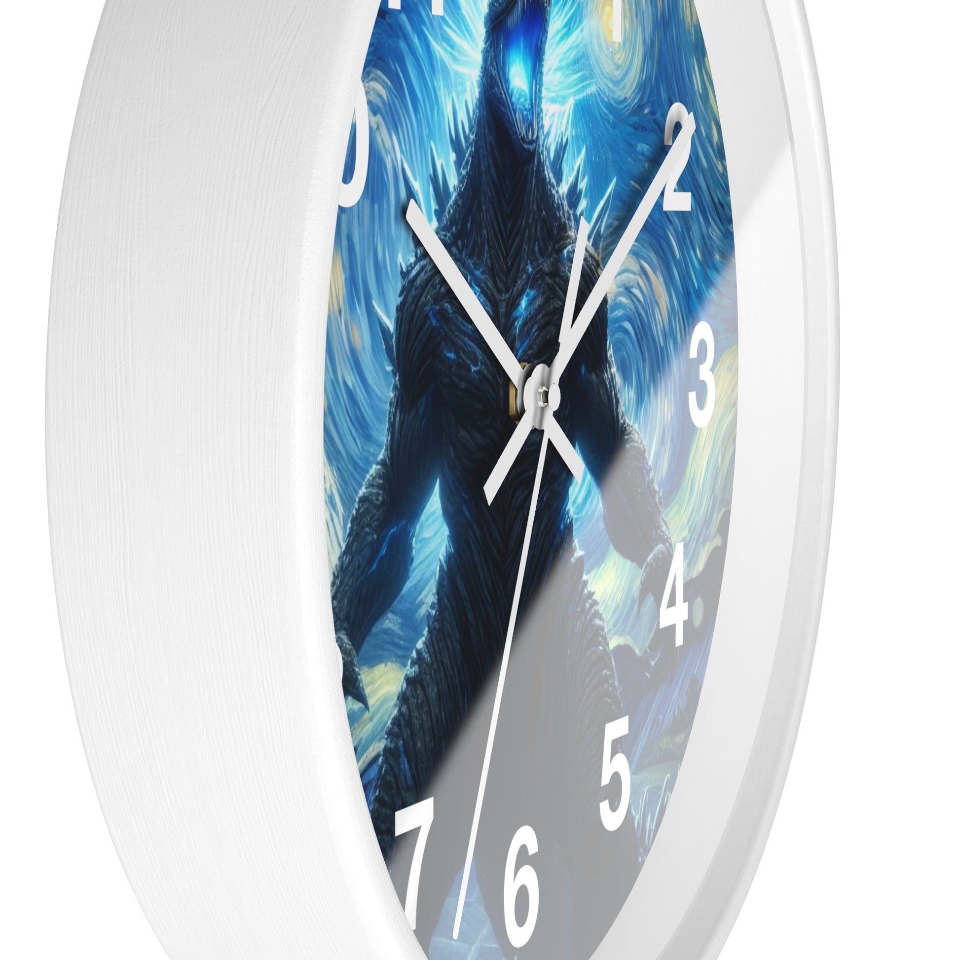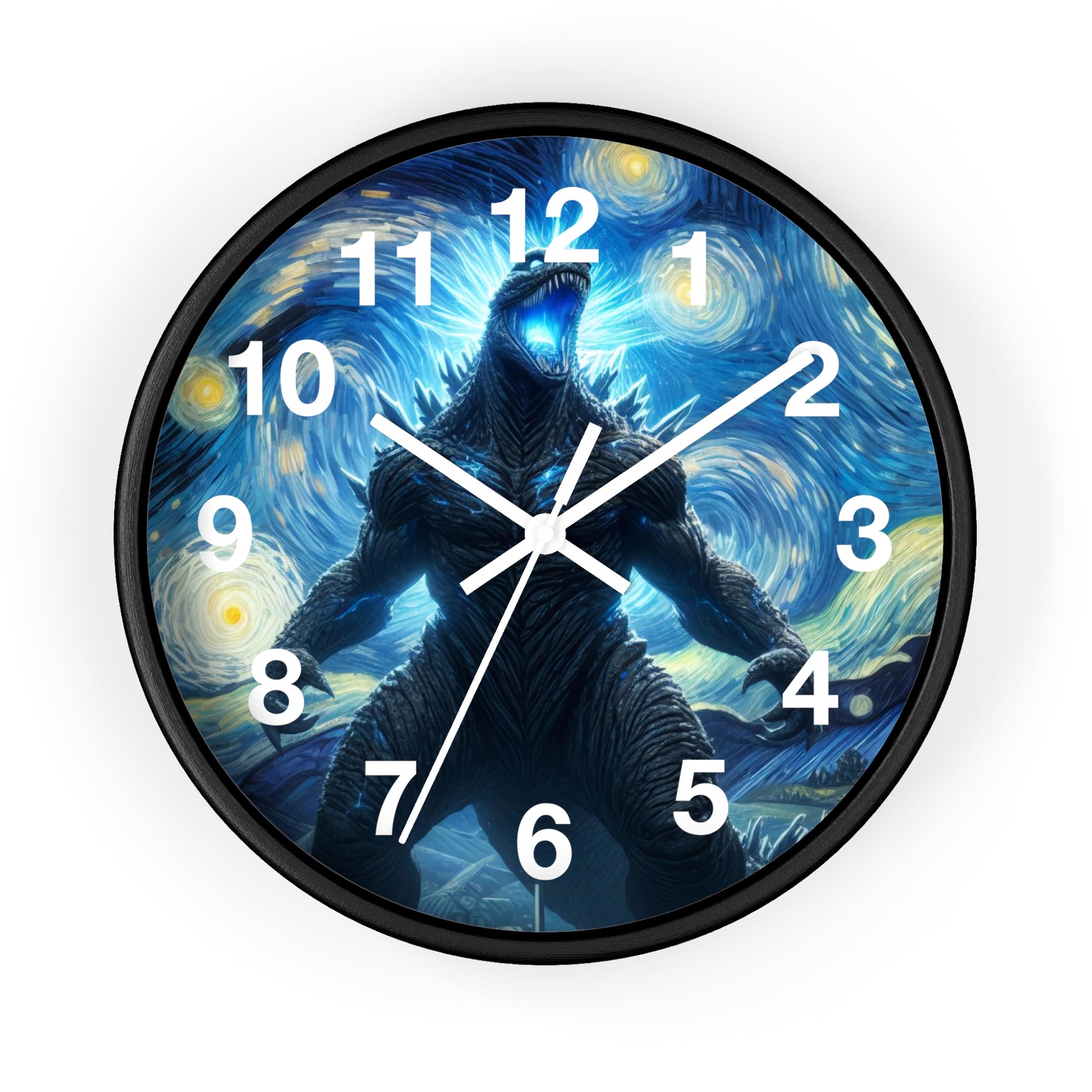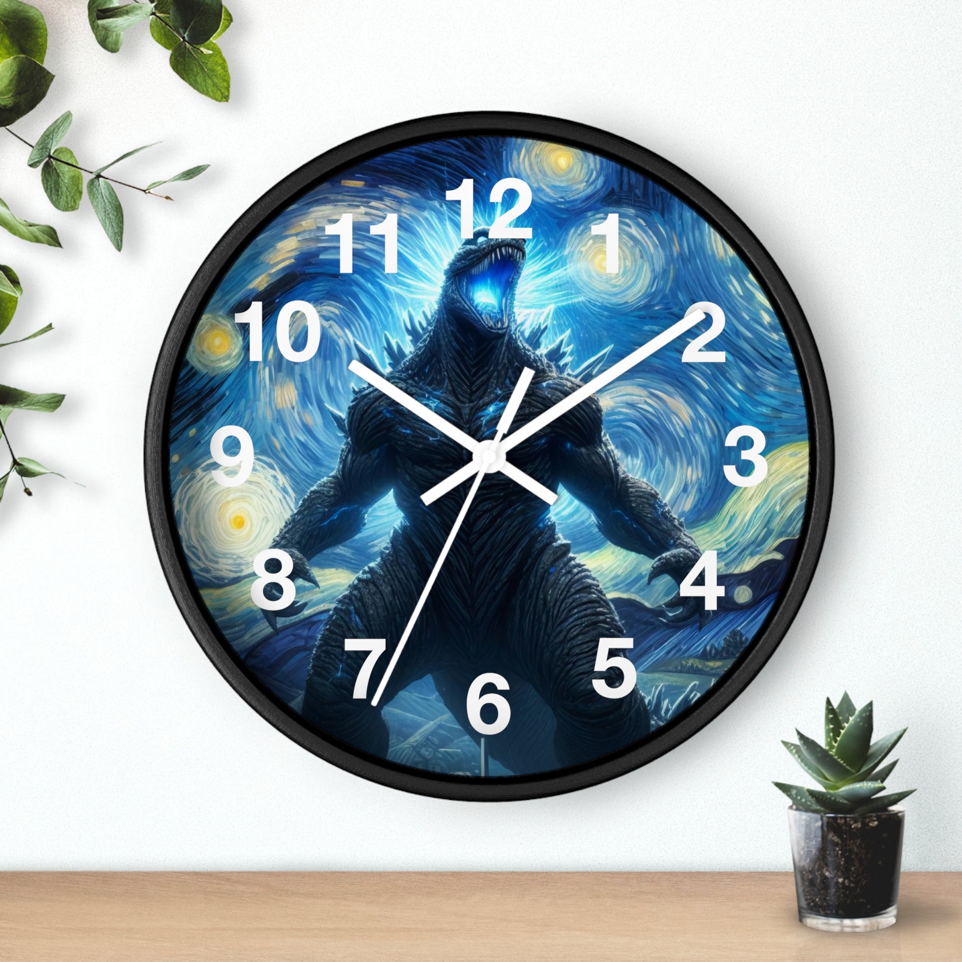 Giant Dinosaur Lizard Night Sky Wall Clock | Battery Operated | Kaiju-Inspired Starry Night Art Perfect Gift Dinosaur Anime-Style Wall Decor