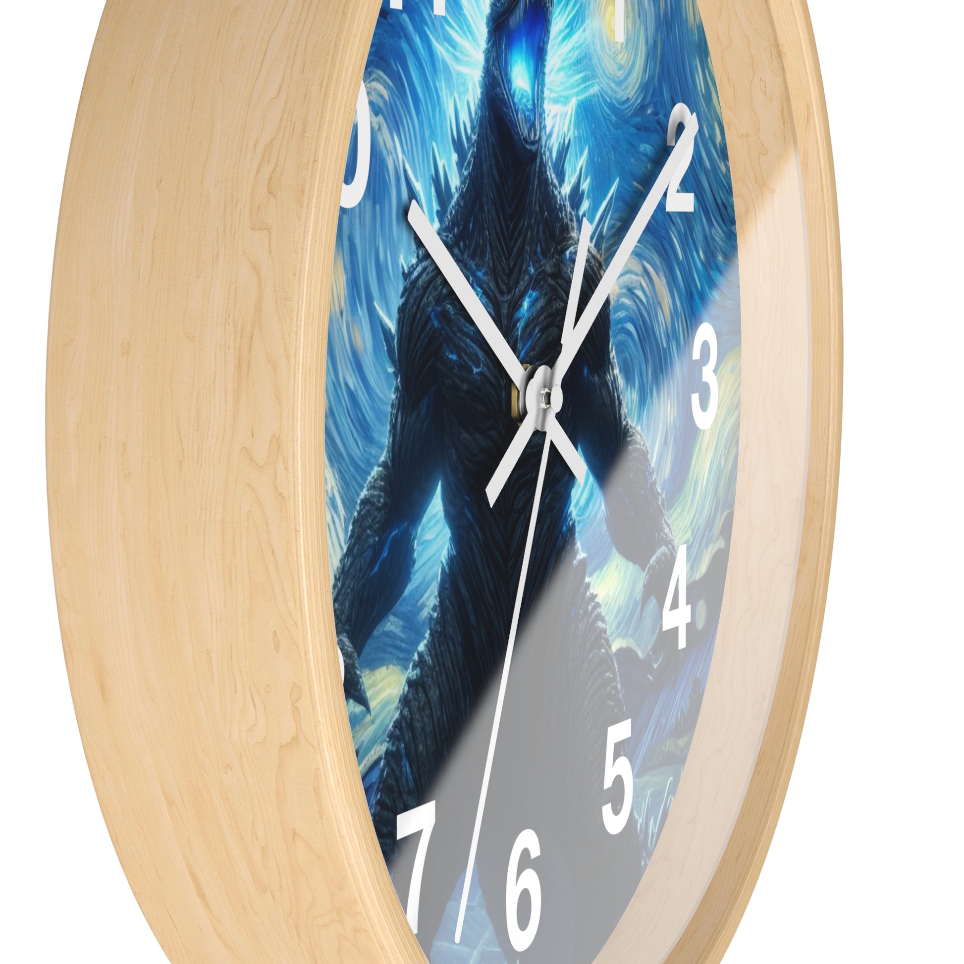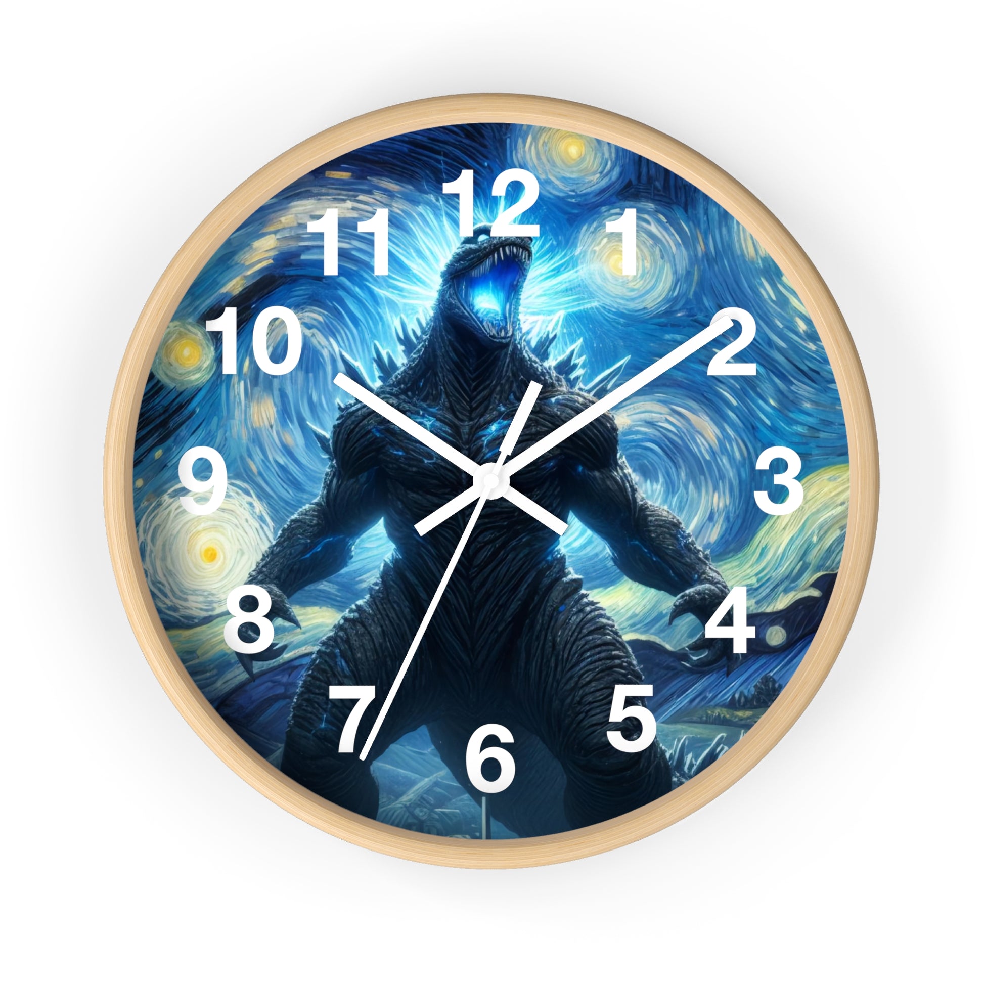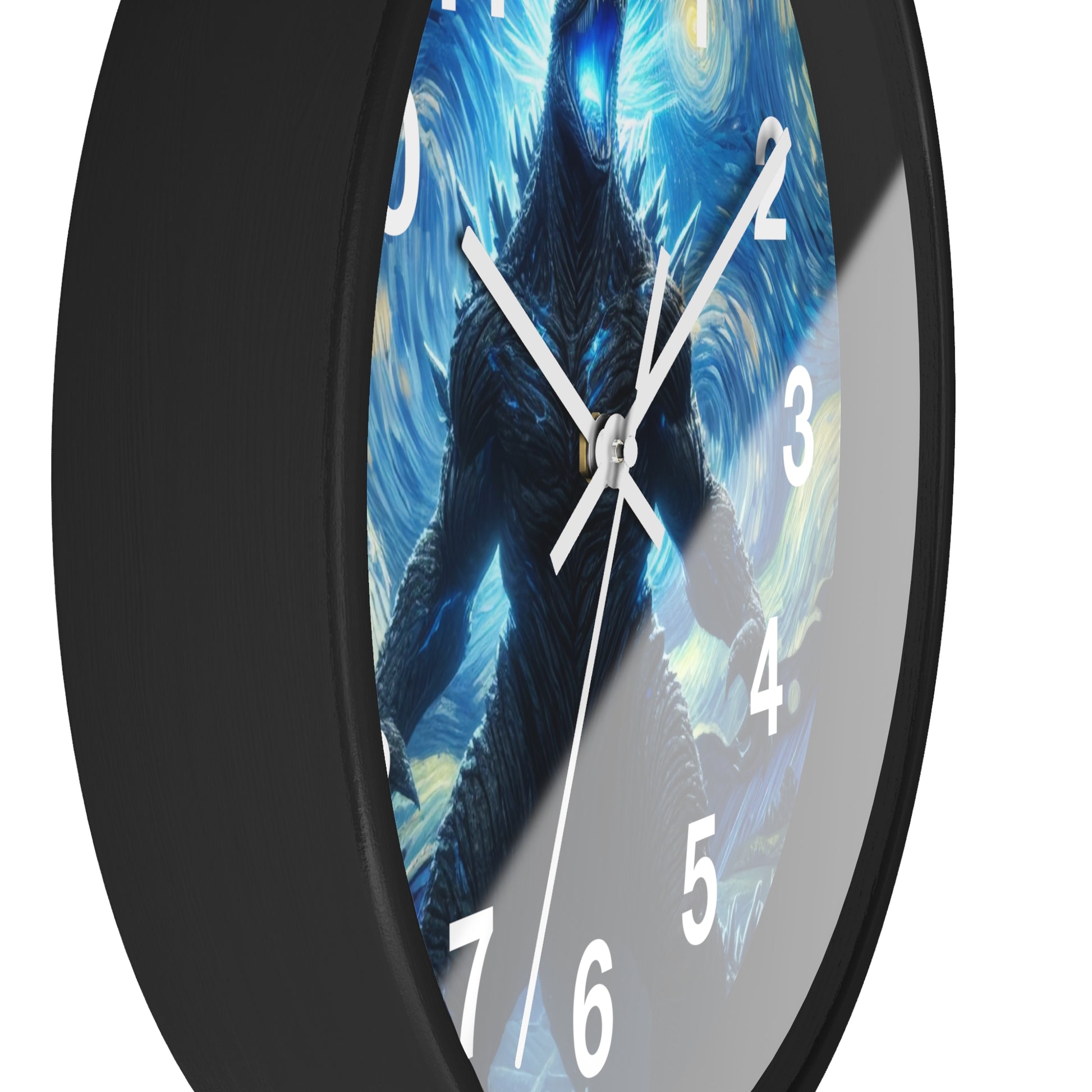 Giant Dinosaur Lizard Night Sky Wall Clock | Battery Operated | Kaiju-Inspired Starry Night Art Perfect Gift Dinosaur Anime-Style Wall Decor