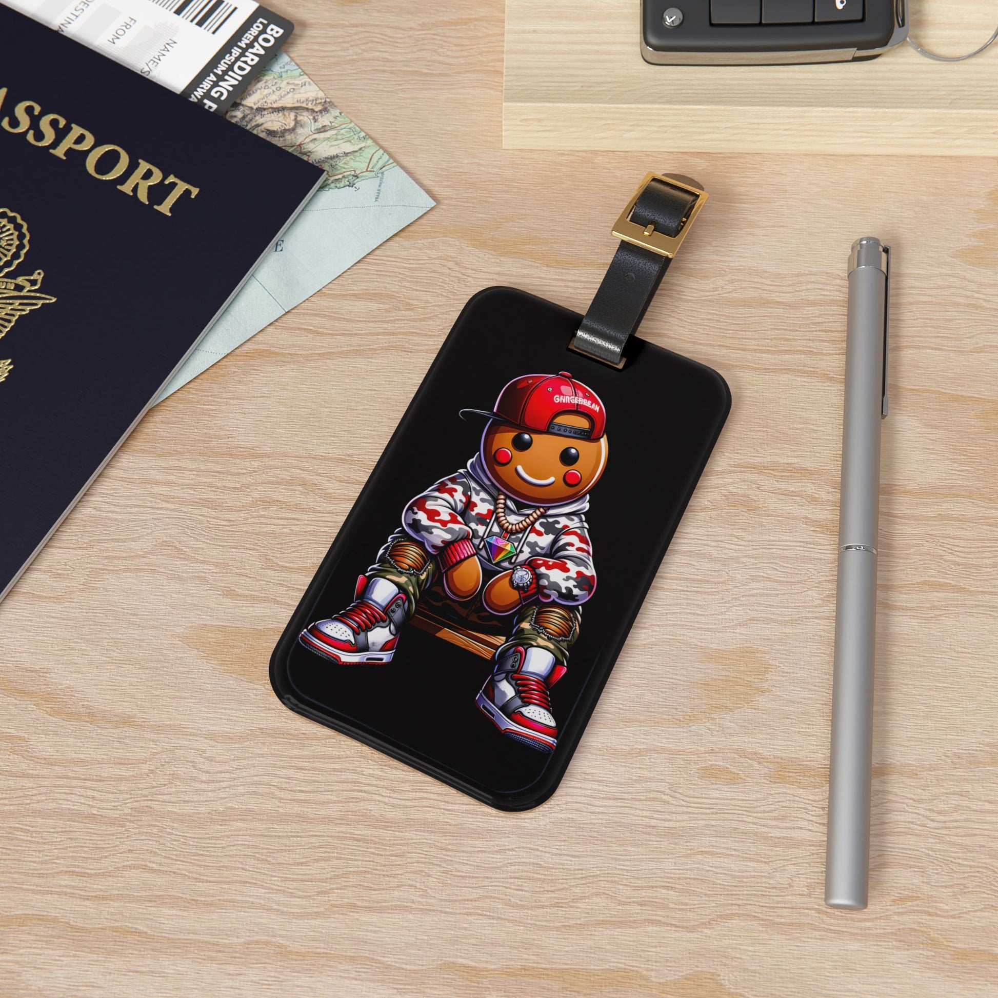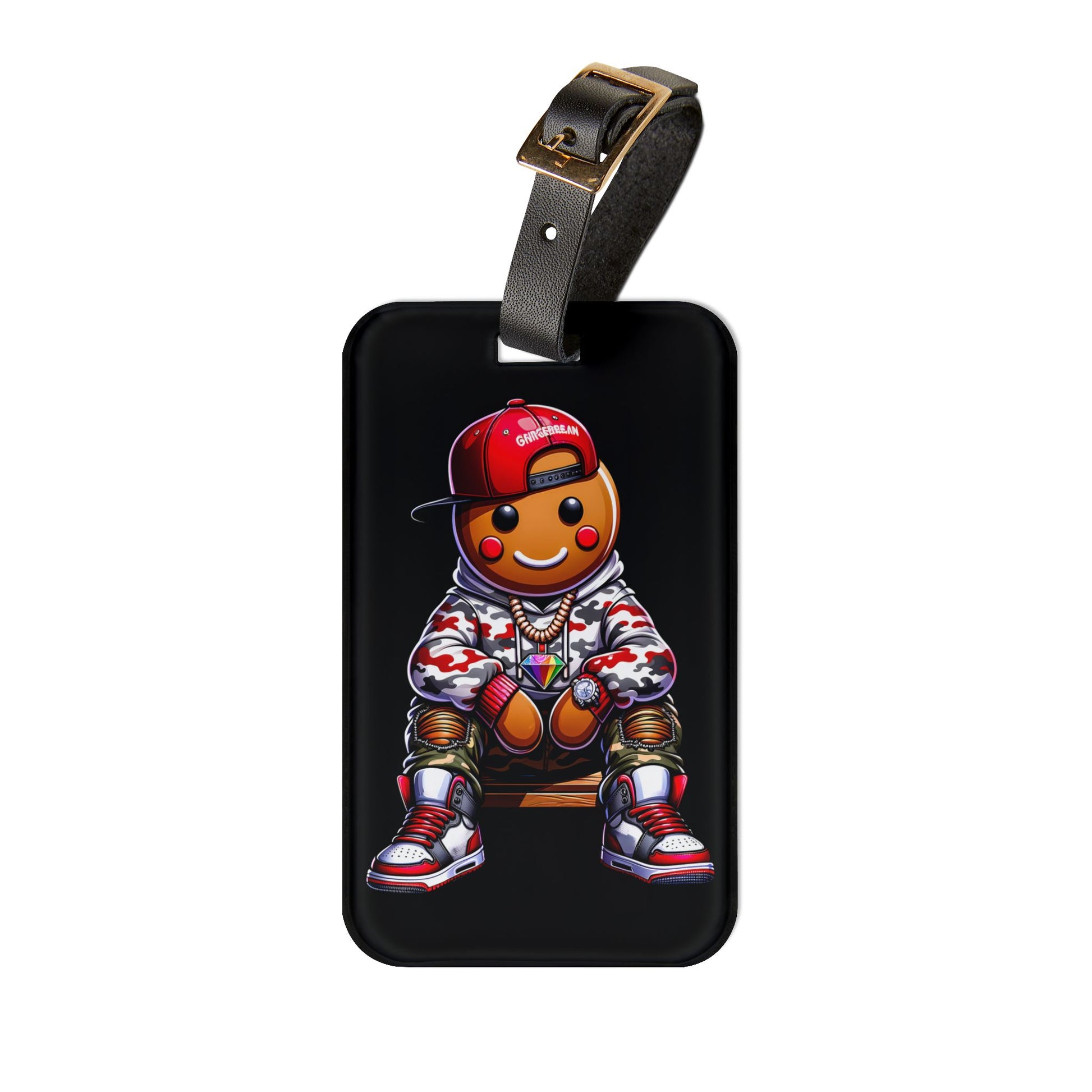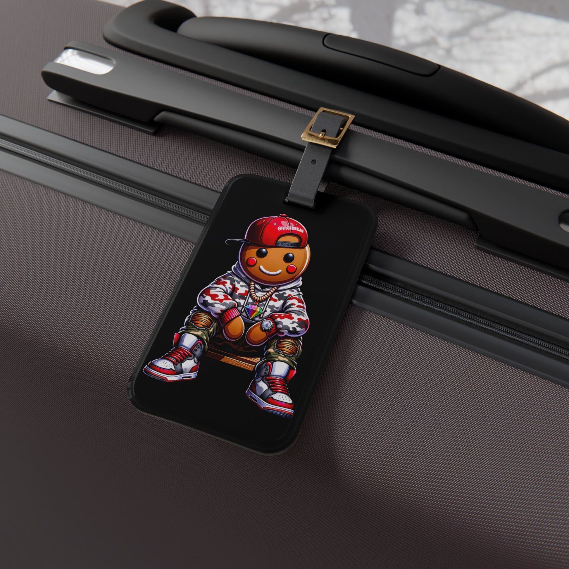 Gingerbread Man Gangster Luggage Tag | Urban Style Streetwear Gingerbread Hip Hop Christmas Baggage ID | Festive Travel Gingerbread Lovers