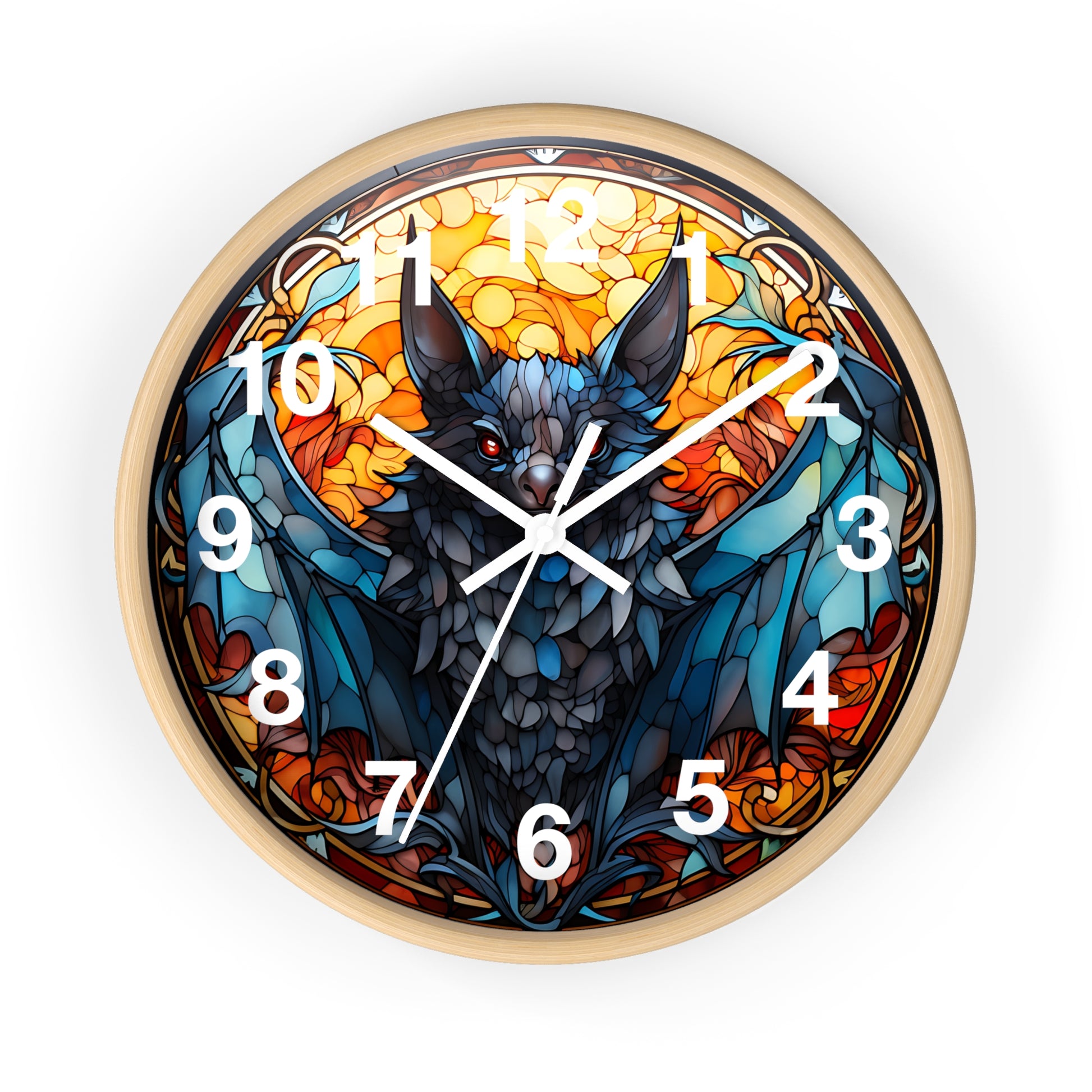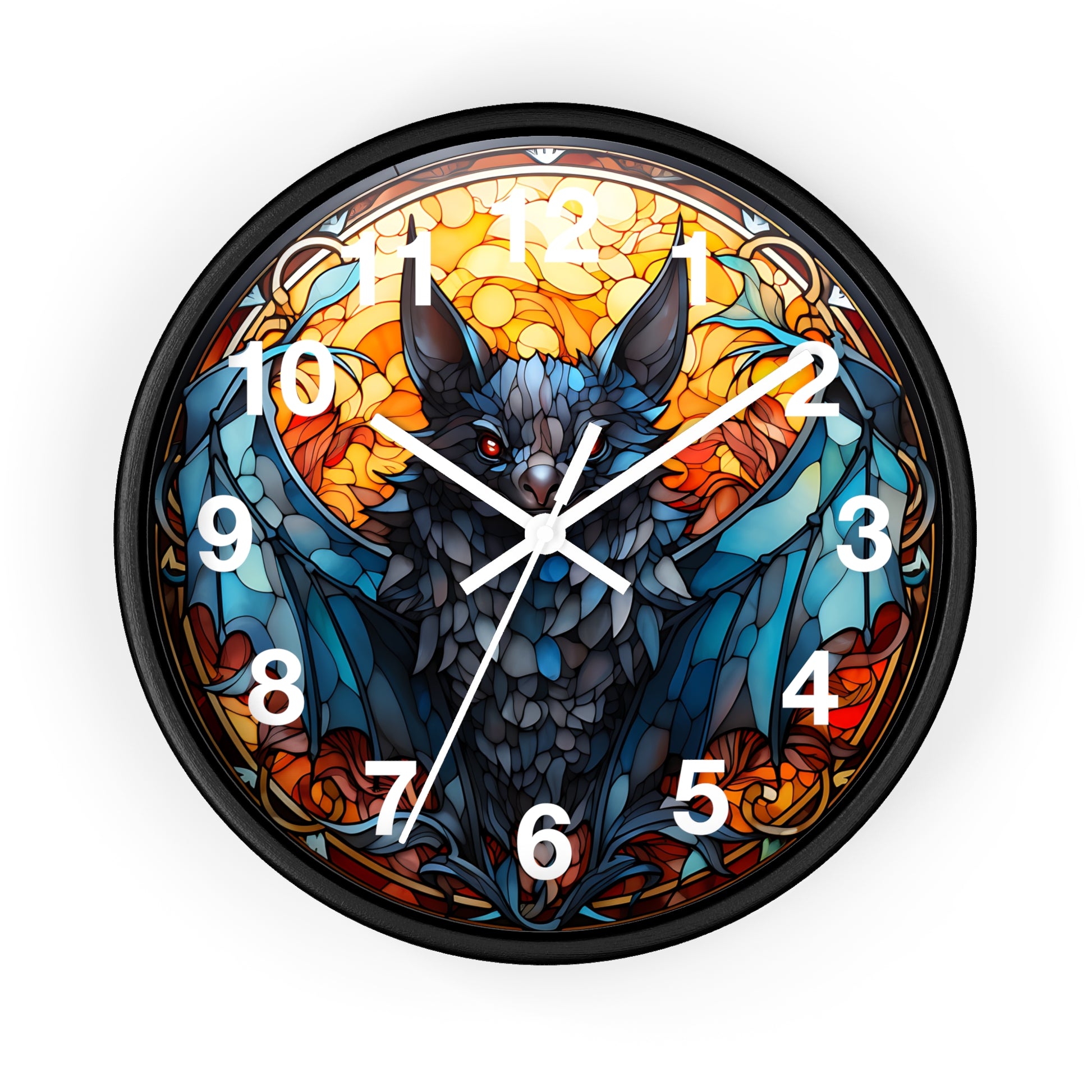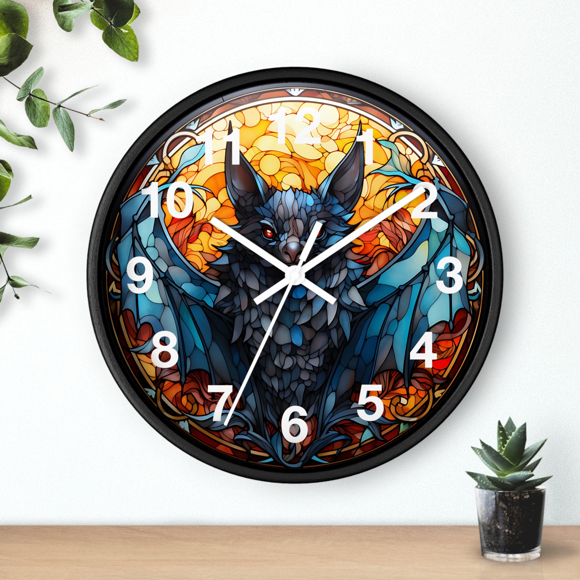 Halloween Bat Stained Glass Wall Clock | Battery Operated | Spooky Decor for Halloween | Perfect Gift for Bat Lovers | Unique Gothic Accent
