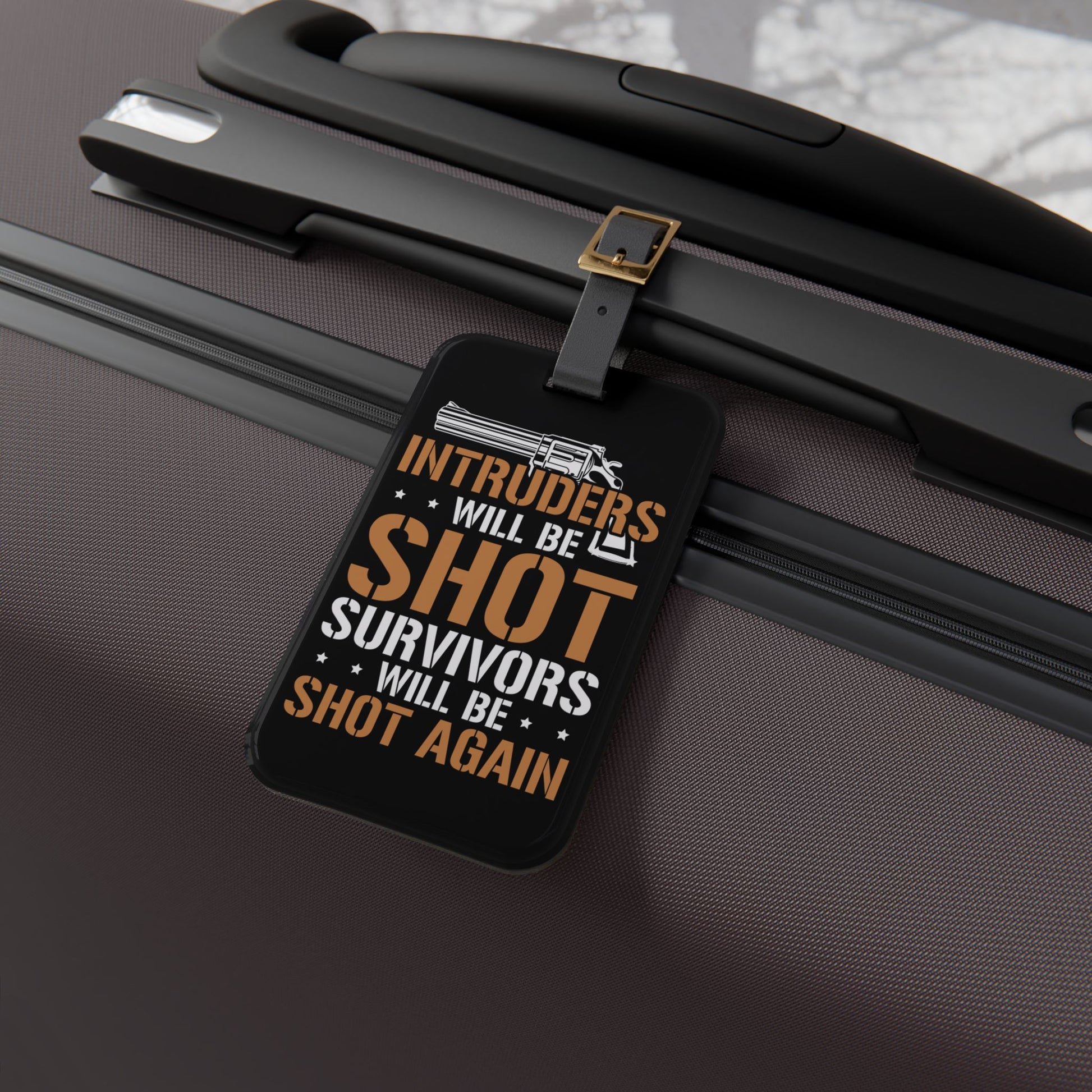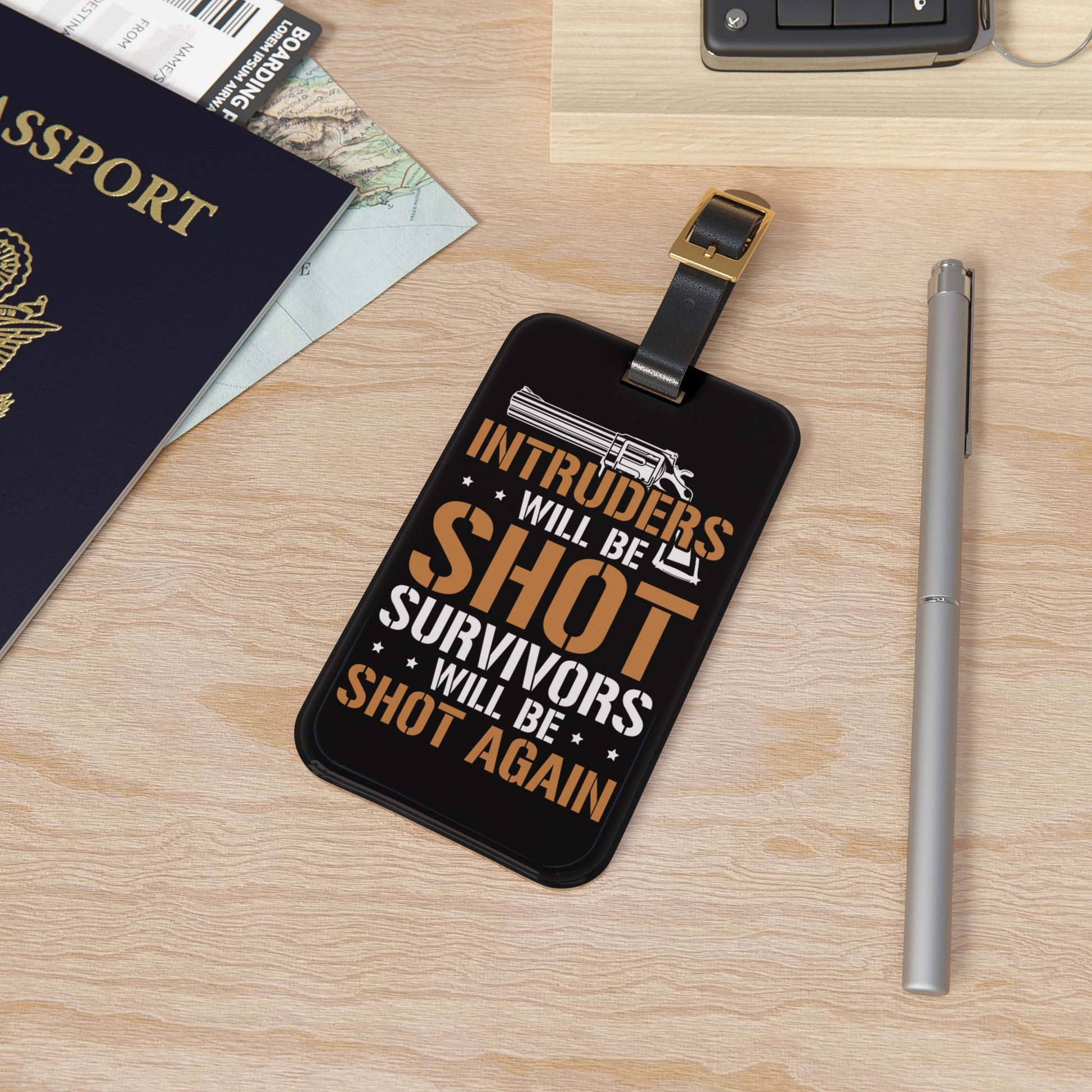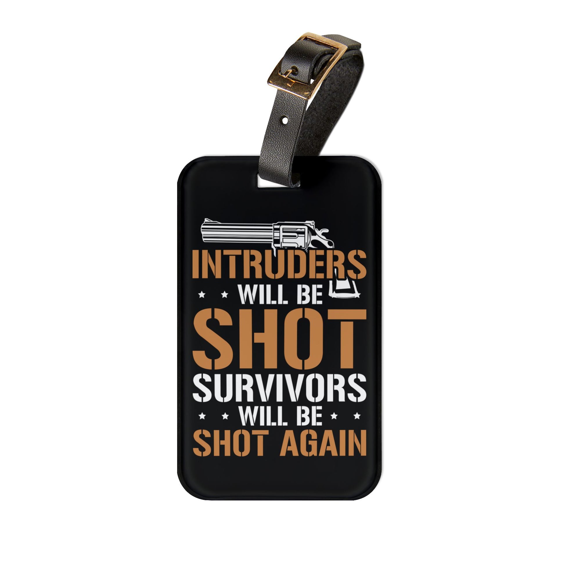 Intruders Will Be Shot Luggage Tag | Funny Warning Baggage ID | Gun Supporter Travel Accessory | Patriotic 2nd Amendment Gift Patriot Gift