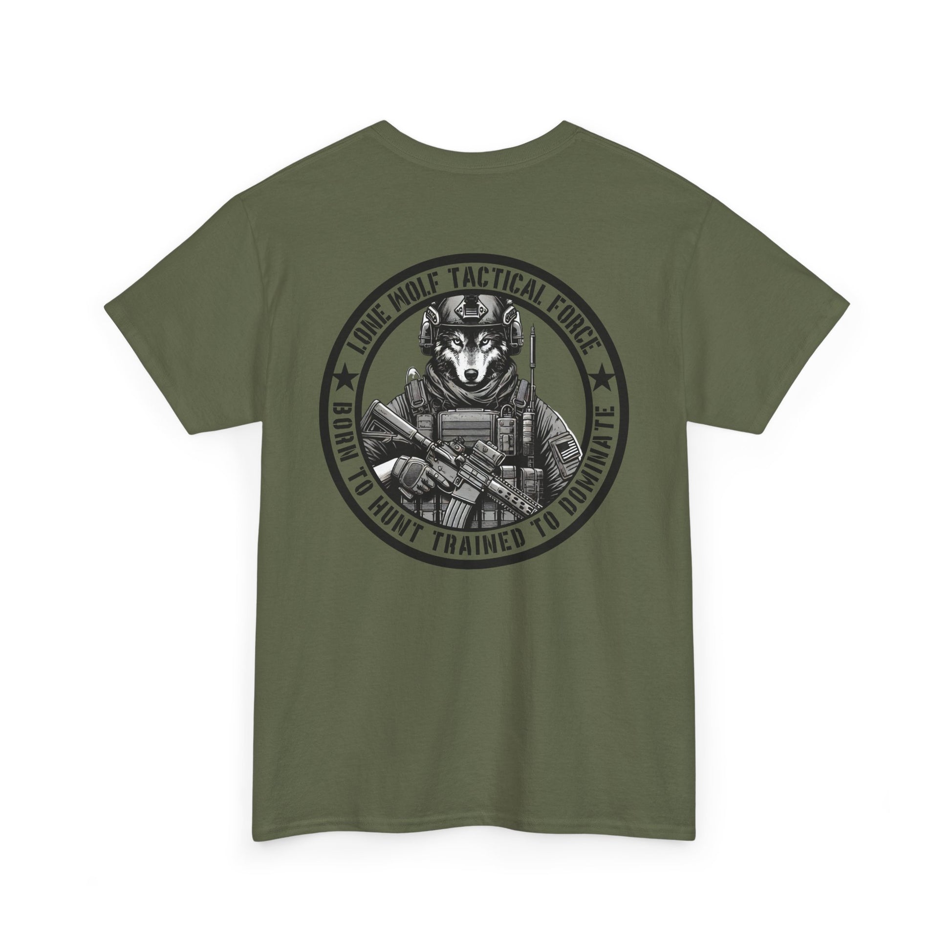 Lone Wolf Tactical Force Shirt | Funny Wolf Military-Inspired Tee | Patriotic Born to Hunt Graphic Wolf Lovers and Tactical Fans Wolf Gift
