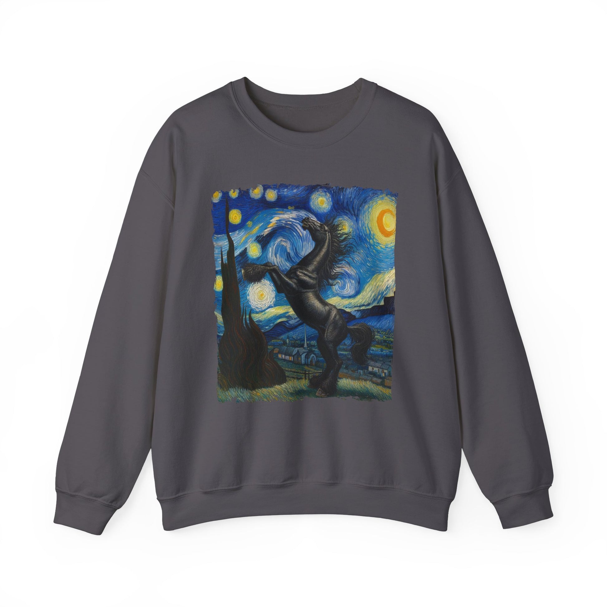 Majestic Black Horse Night Sky Crewneck Sweater | Starry Night-Inspired Equine Art | Perfect Gift Horse Lover Sweatshirt Horse Humor Apparel