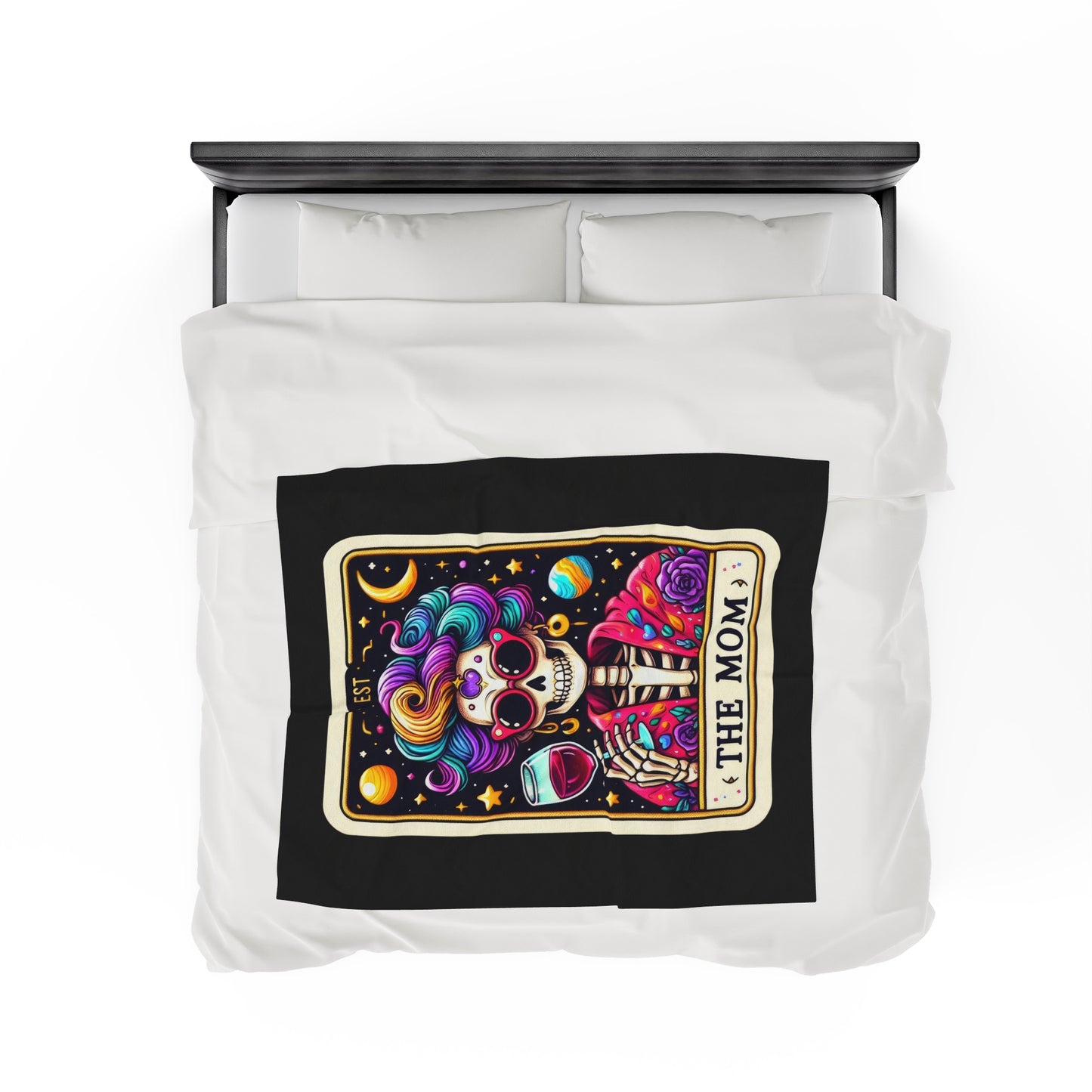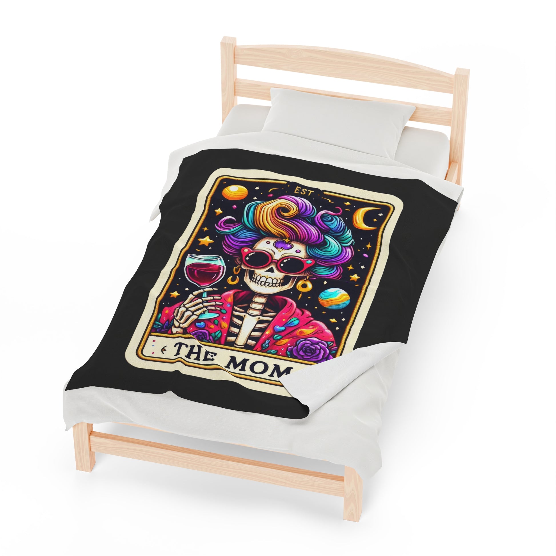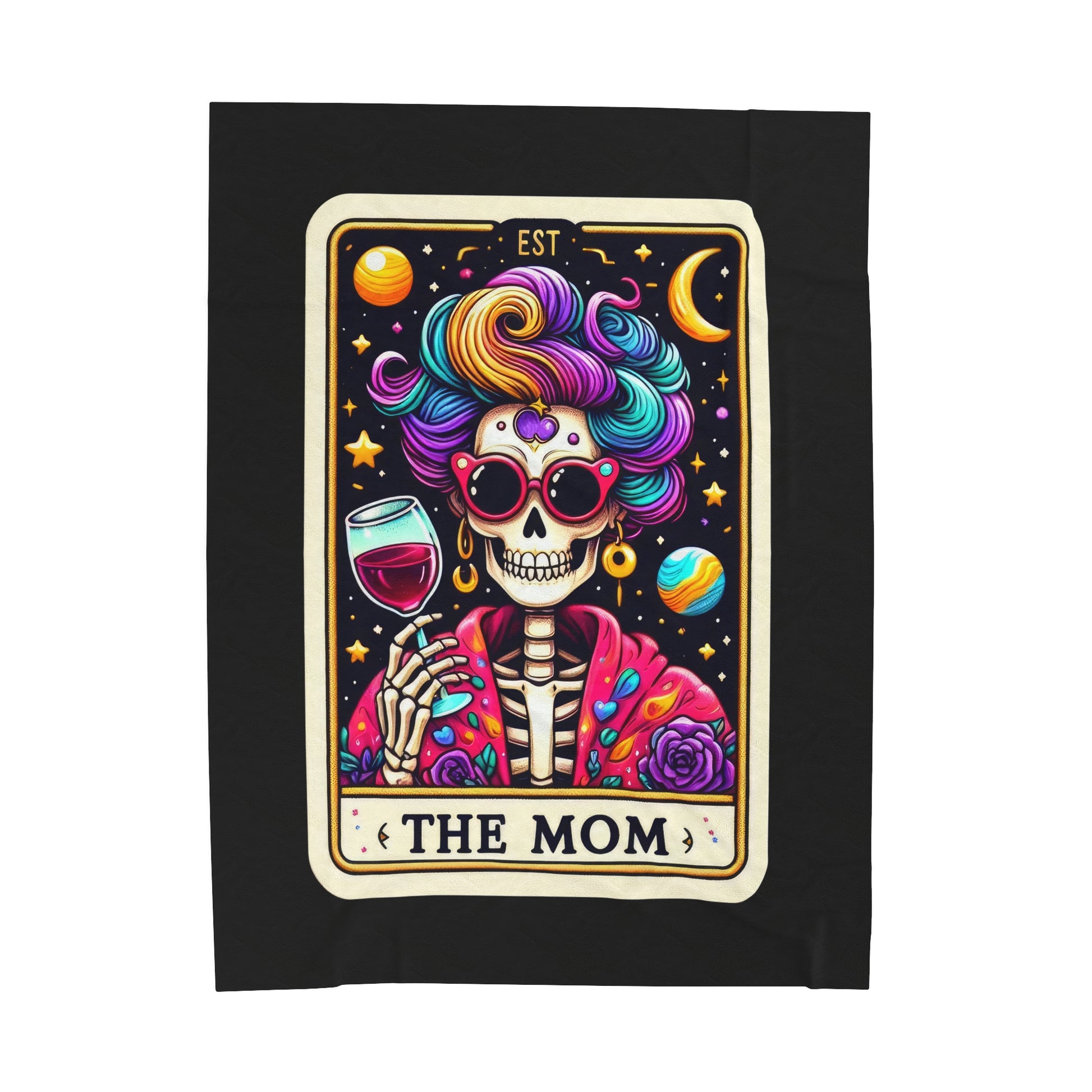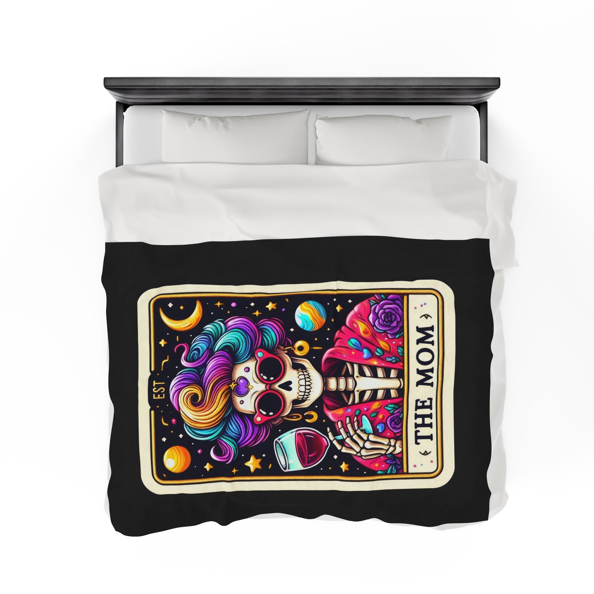 Mom Tarot Card Velveteen Plush Throw Blanket | Gift for Moms | Tarot-Inspired Mother's Day Blanket | Cozy Skeleton Blanket for Super Moms